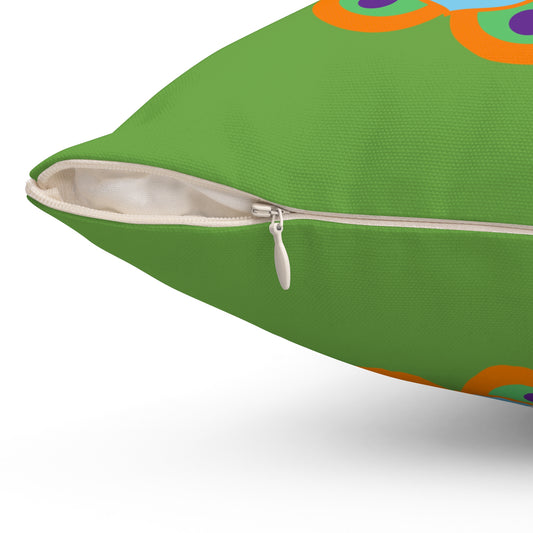 Cojín decorativo de color verde prado floreciente: elegancia floral desde arriba