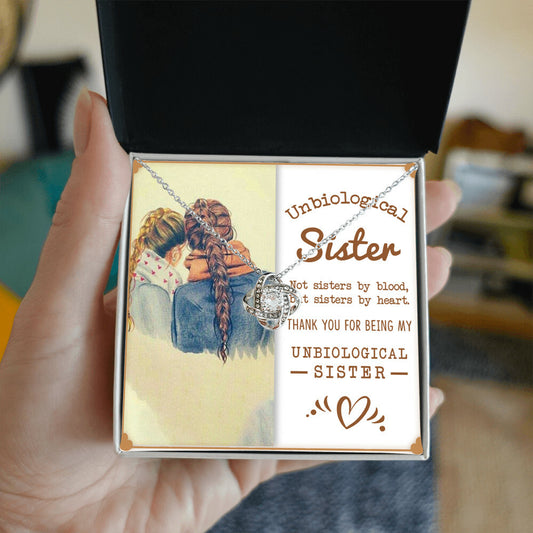 Collar con lazo de corazón para una hermana no biológica | Una celebración de la amistad | Sisters By Heart - Collar con nudo de amor
