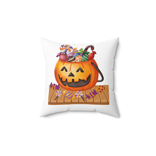 Almohada decorativa de Halloween con forma de linterna de Jack-O-Lantern y caramelos, decoración de habitación de Halloween, almohada decorativa espeluznante, almohada decorativa de 18 x 18