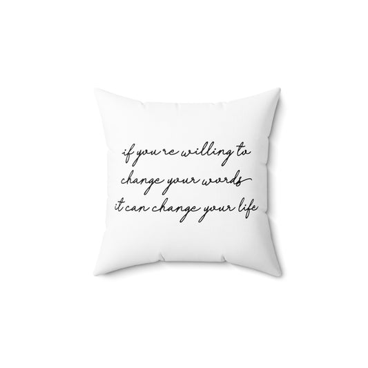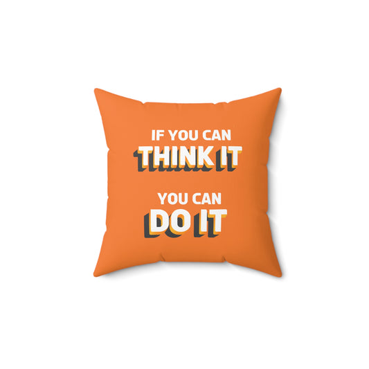 Cojín amarillo motivacional con frase impresa «Deja de pensar y empieza a actuar»
