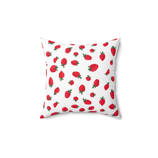 Cojín con estampado de fresas, decoración de habitación, cojín de diseño cuadrado rojo y blanco