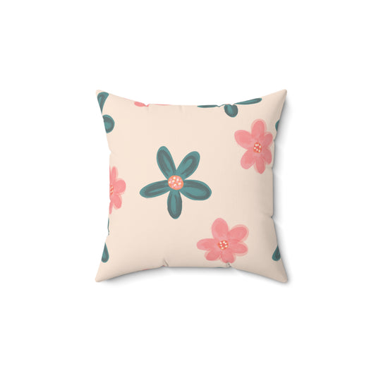 Almohada de diseño floral de color melocotón con flores grandes, almohada decorativa para sala de estar, almohada elegante con toques de color, almohada decorativa, 14 x 14 pulgadas