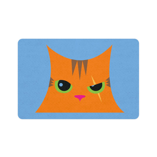 Alfombrilla para comida para mascotas con cara de gato perfecta sobre azul