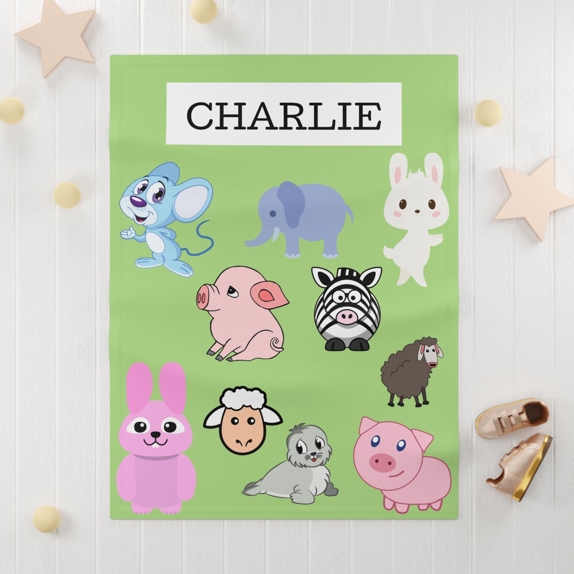 ¡Preséntale a tu pequeño un mundo de comodidad con nuestra manta de bebé de vellón suave Animal Kingdom ! Esta manta de 30” x 40” presenta una encantadora variedad de animales coloridos sobre un relajante fondo verde. Confeccionada con vellón 100 % poliéster, ofrece una suavidad y calidez perfectas para acurrucarse. La impresión de un solo lado garantiza un diseño vibrante, mientras que la tela prefabricada proporciona una durabilidad duradera. Ideal para recién nacidos y niños pequeños, esta manta es fácil de cuidar: solo un lavado con agua fría y secado en secadora mantendrá su apariencia fresca. Perfecta para la decoración de la habitación del bebé o como un regalo considerado, ¡es una encantadora adición a la colección de abrazos de cualquier bebé!