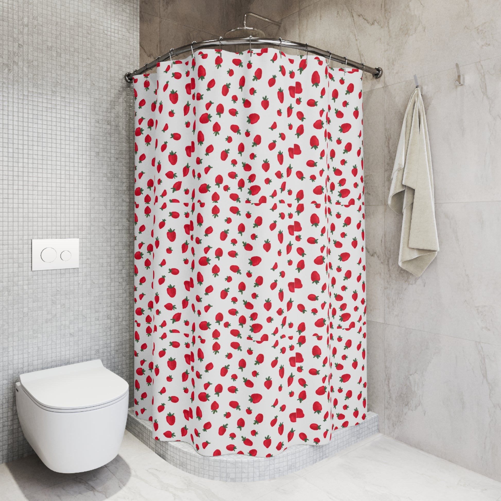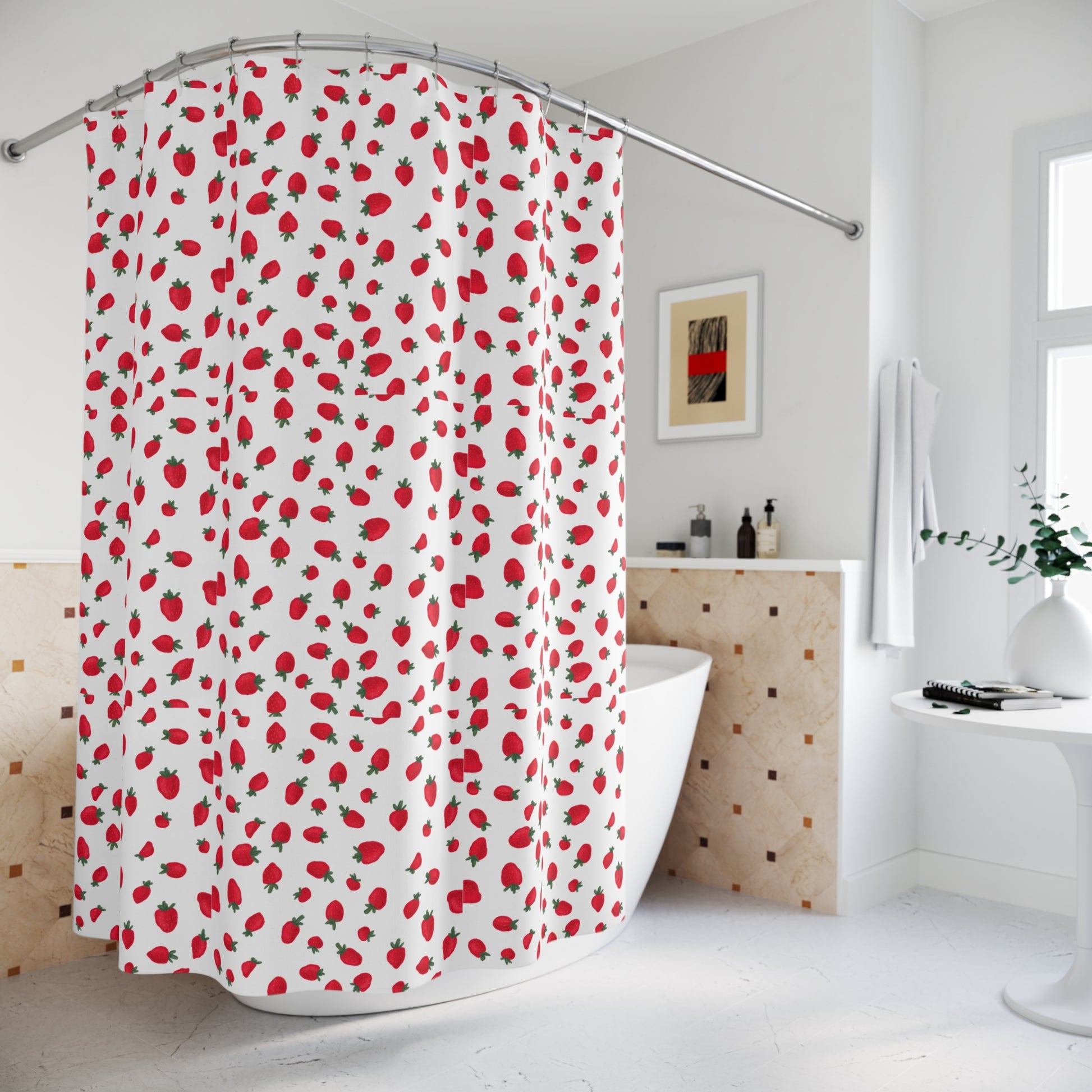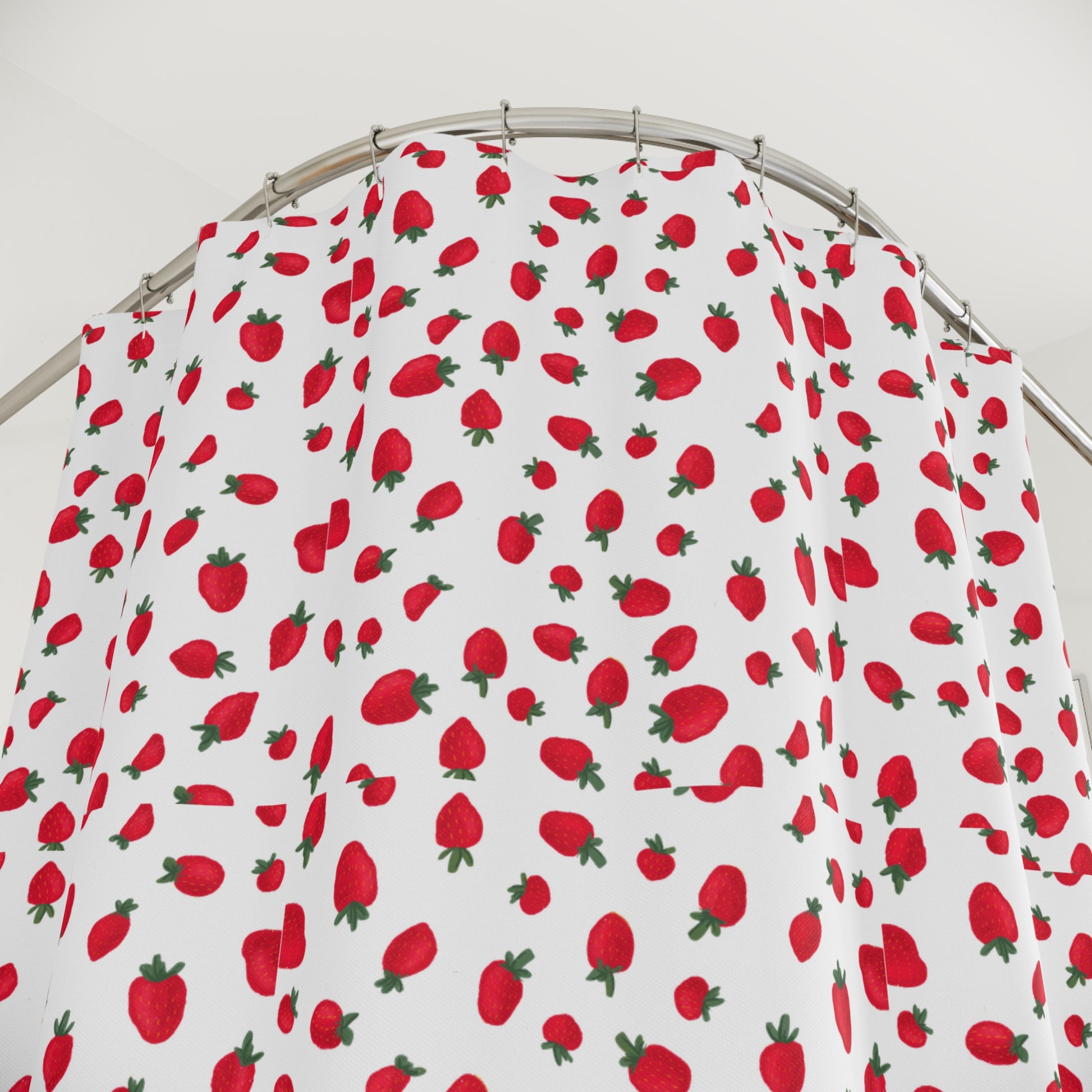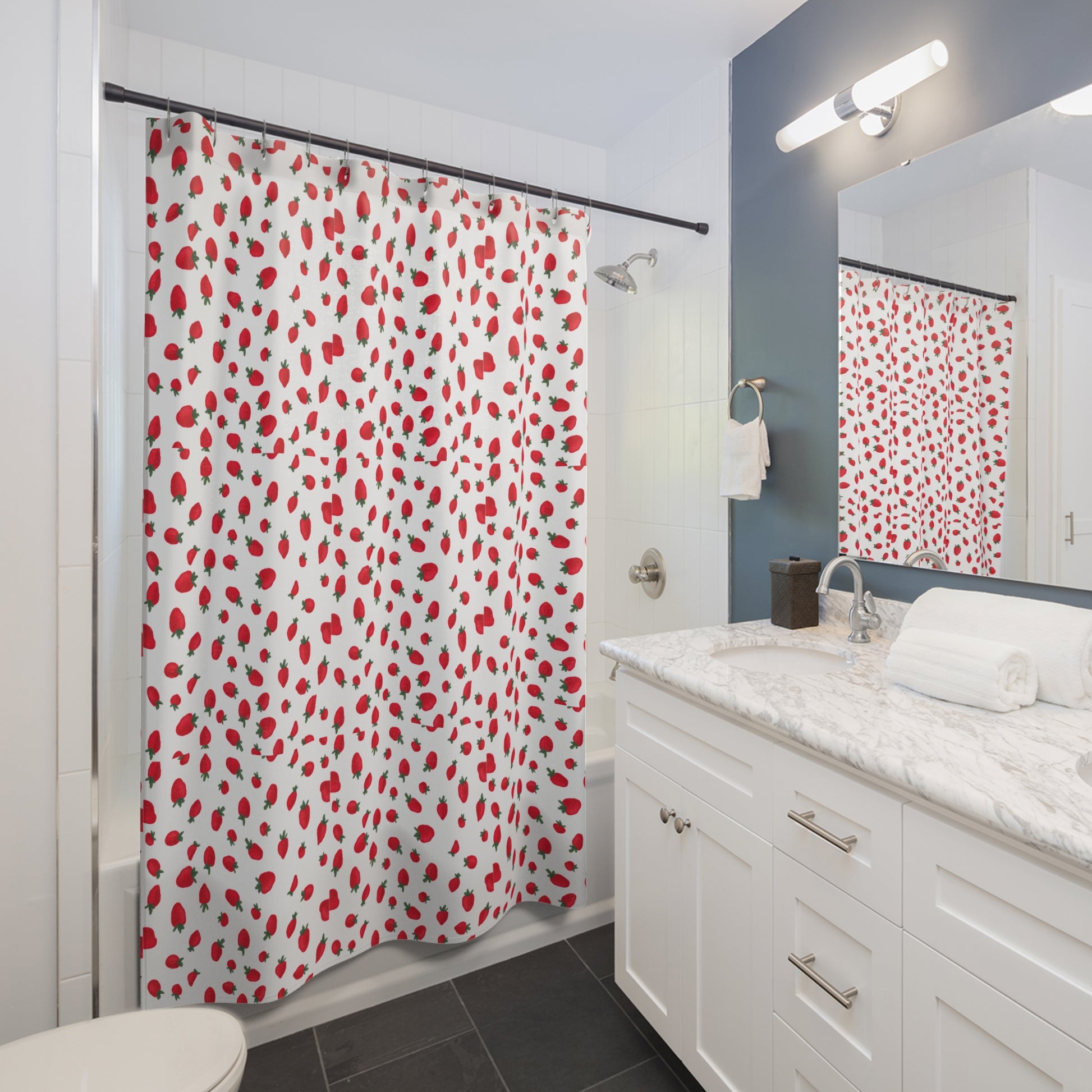Presentamos nuestra cortina de ducha blanca “Berry Bliss”, el lienzo perfecto para darle estilo a la decoración de tu baño. Realza tu espacio con su encantador diseño de fresas.