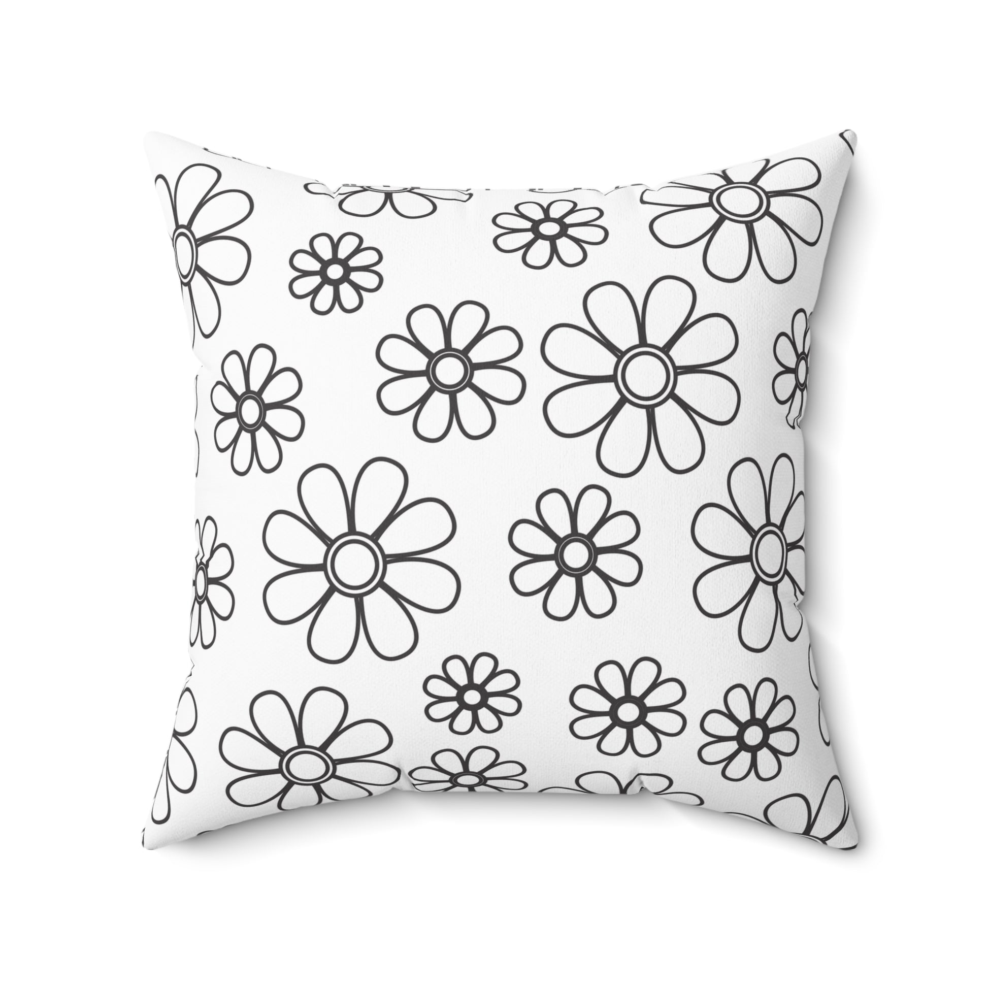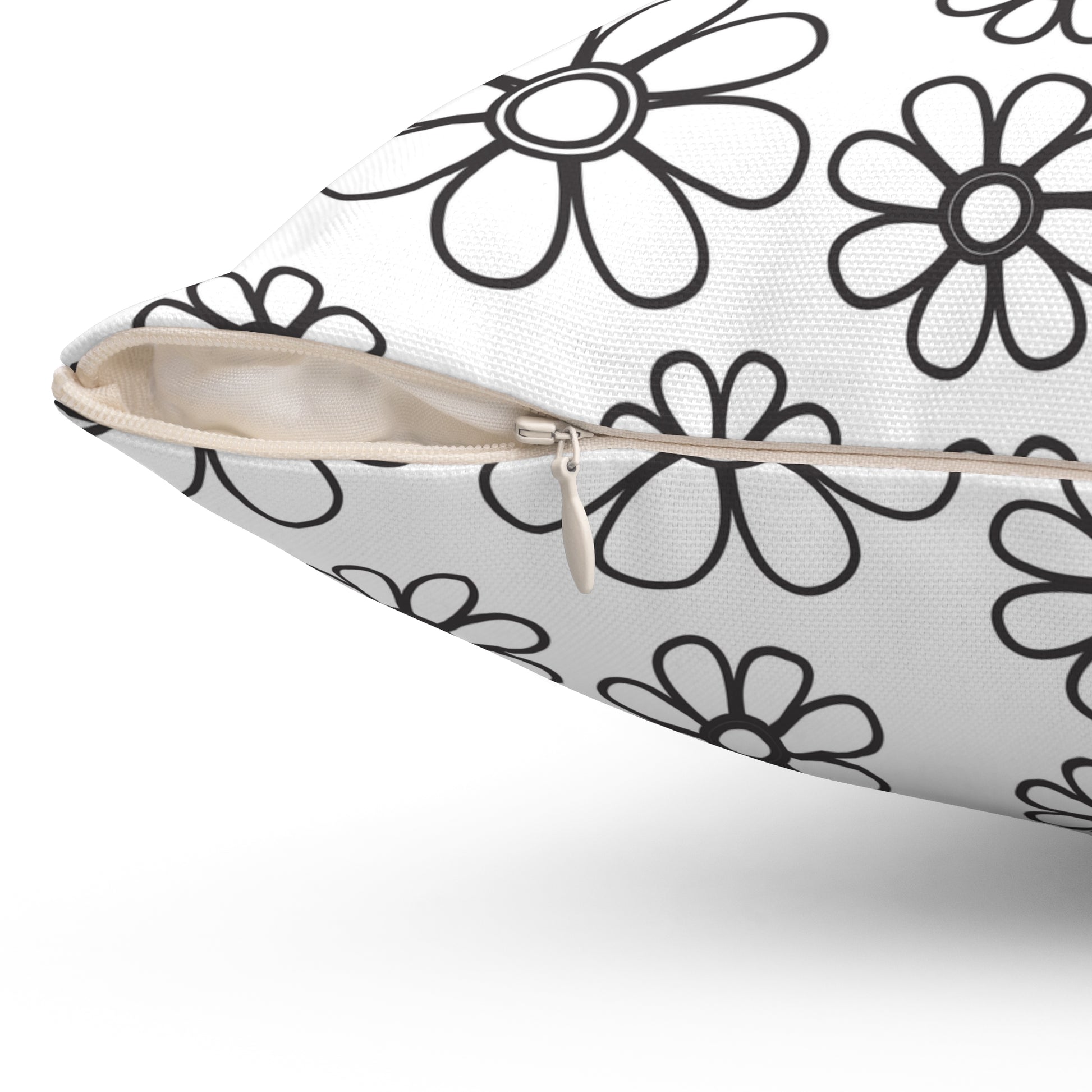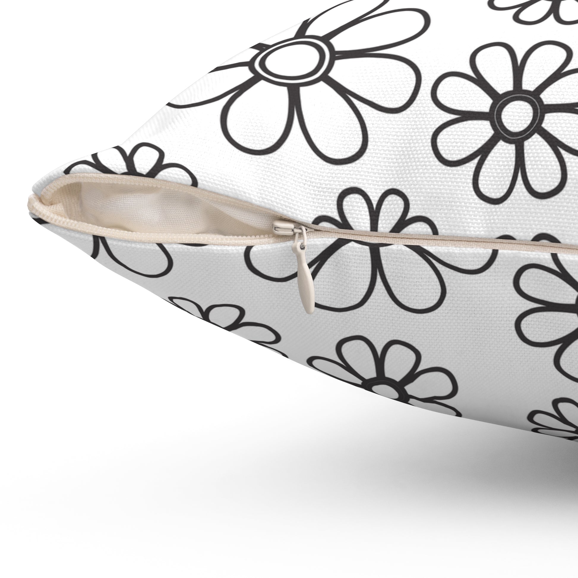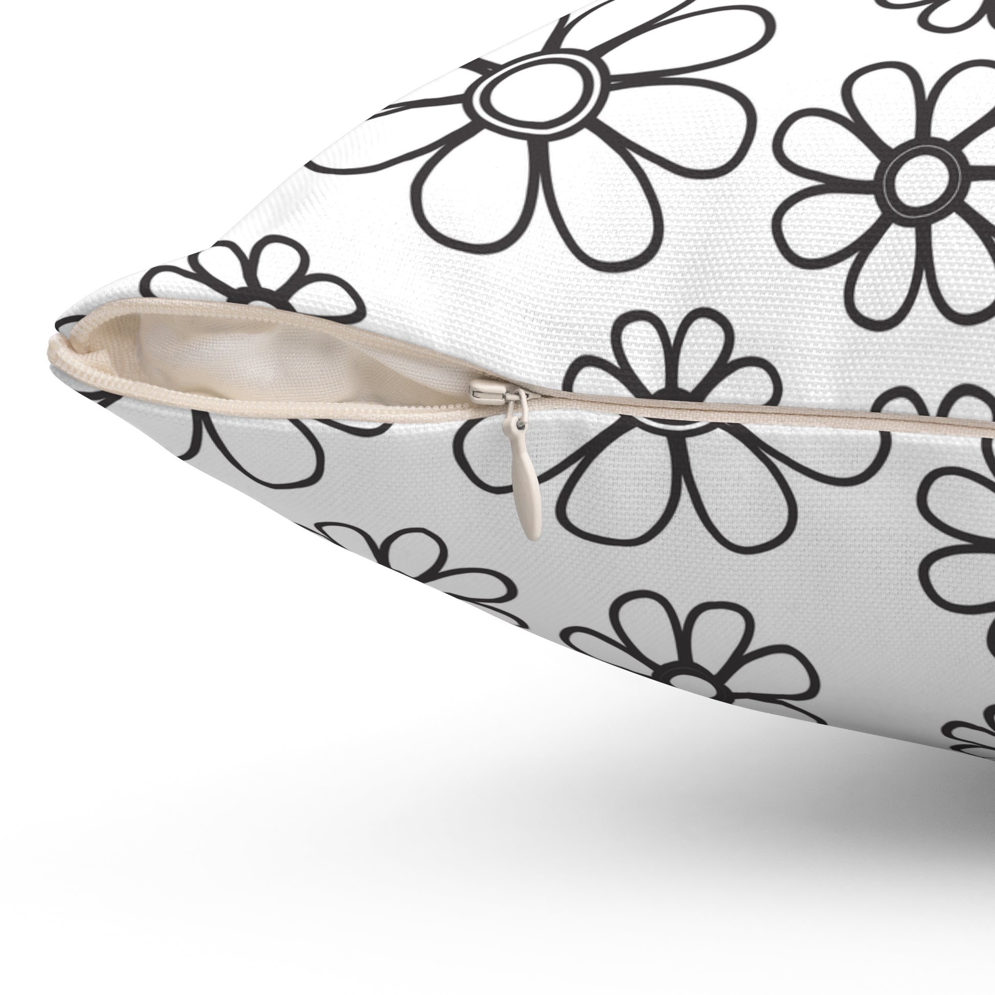 Almohada decorativa con diseño de flores en blanco y negro, almohada decorativa para sala de estar, almohada de diseño de 16 x 16 pulgadas, almohada con diseño floral de contorno negro, ideas para regalos