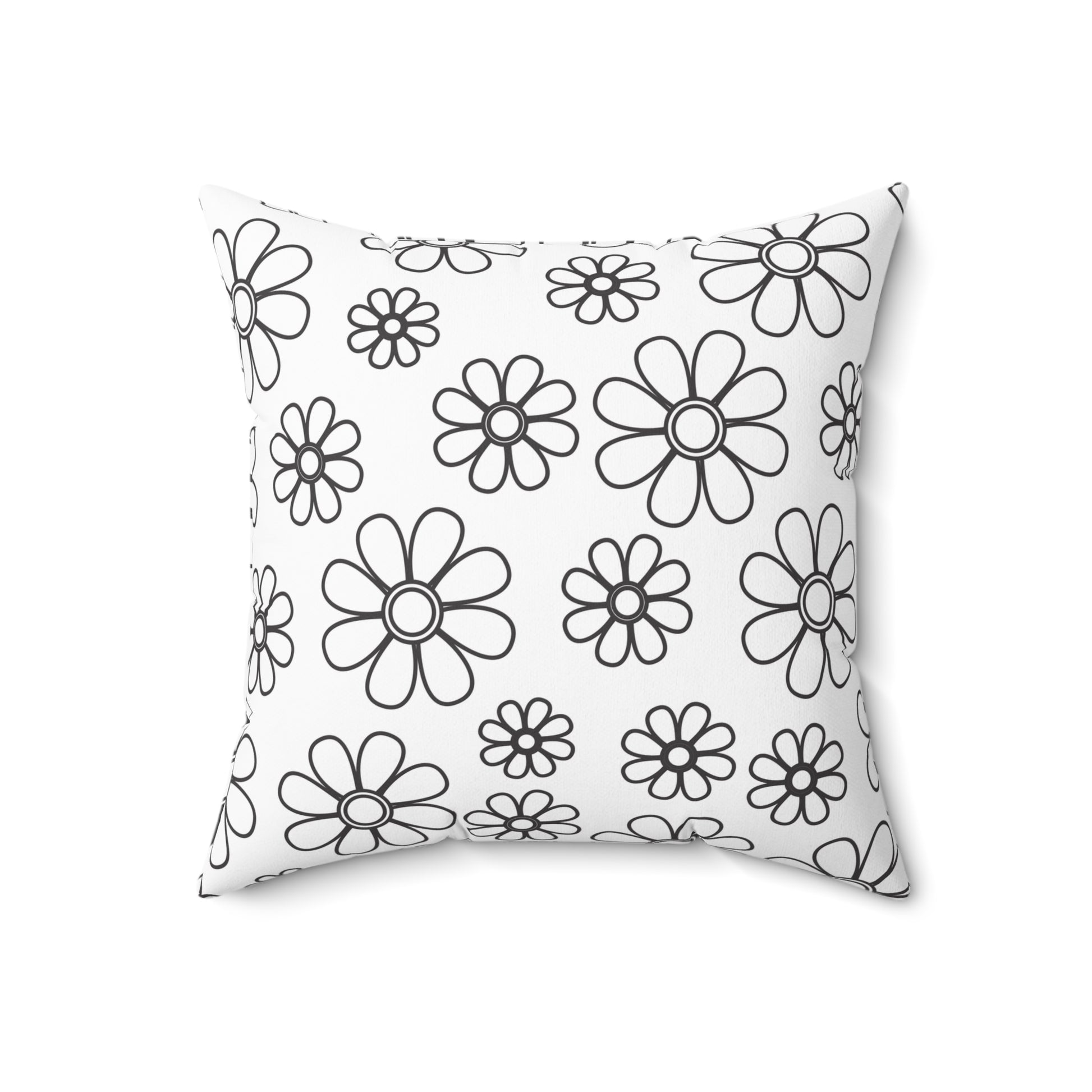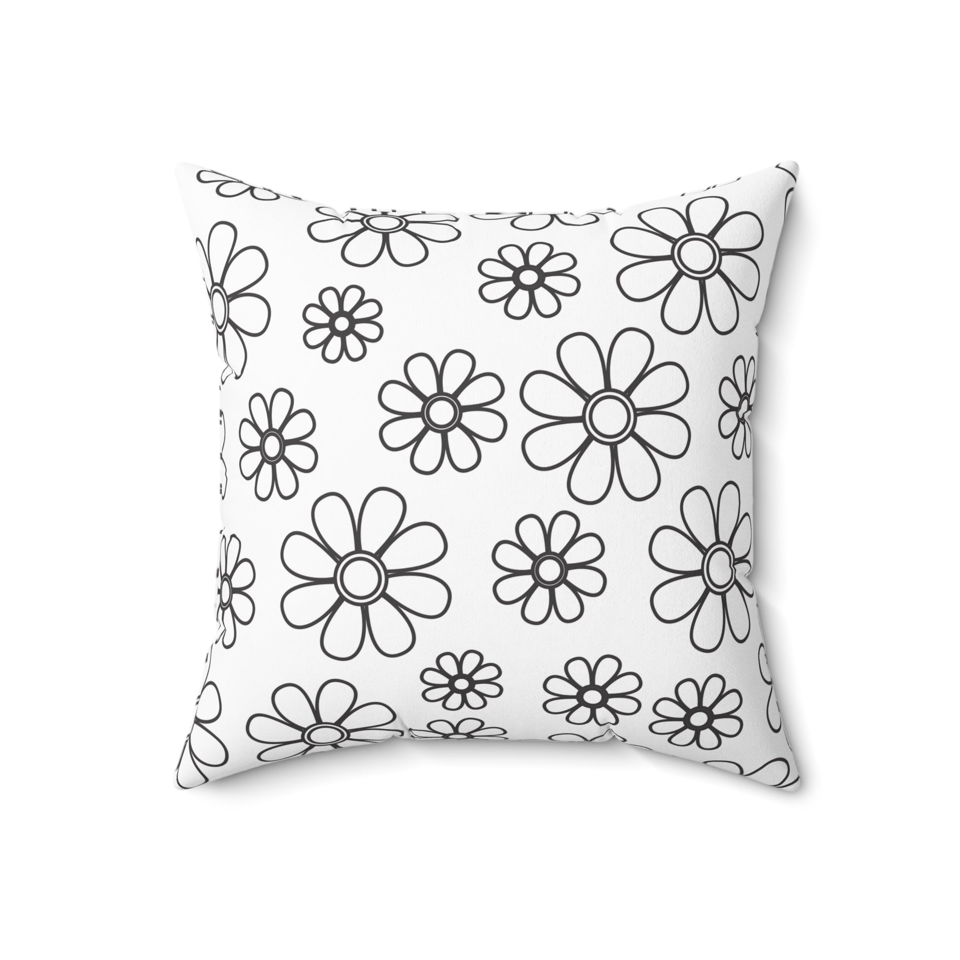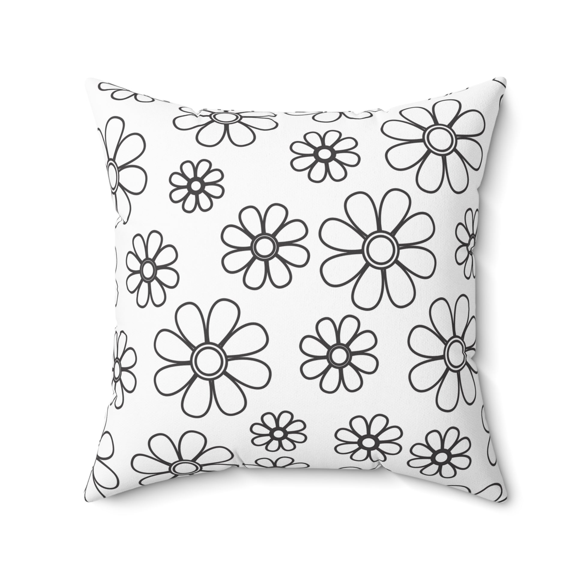 Almohada decorativa con diseño de flores en blanco y negro, almohada decorativa para sala de estar, almohada de diseño de 16 x 16 pulgadas, almohada con diseño floral de contorno negro, ideas para regalos