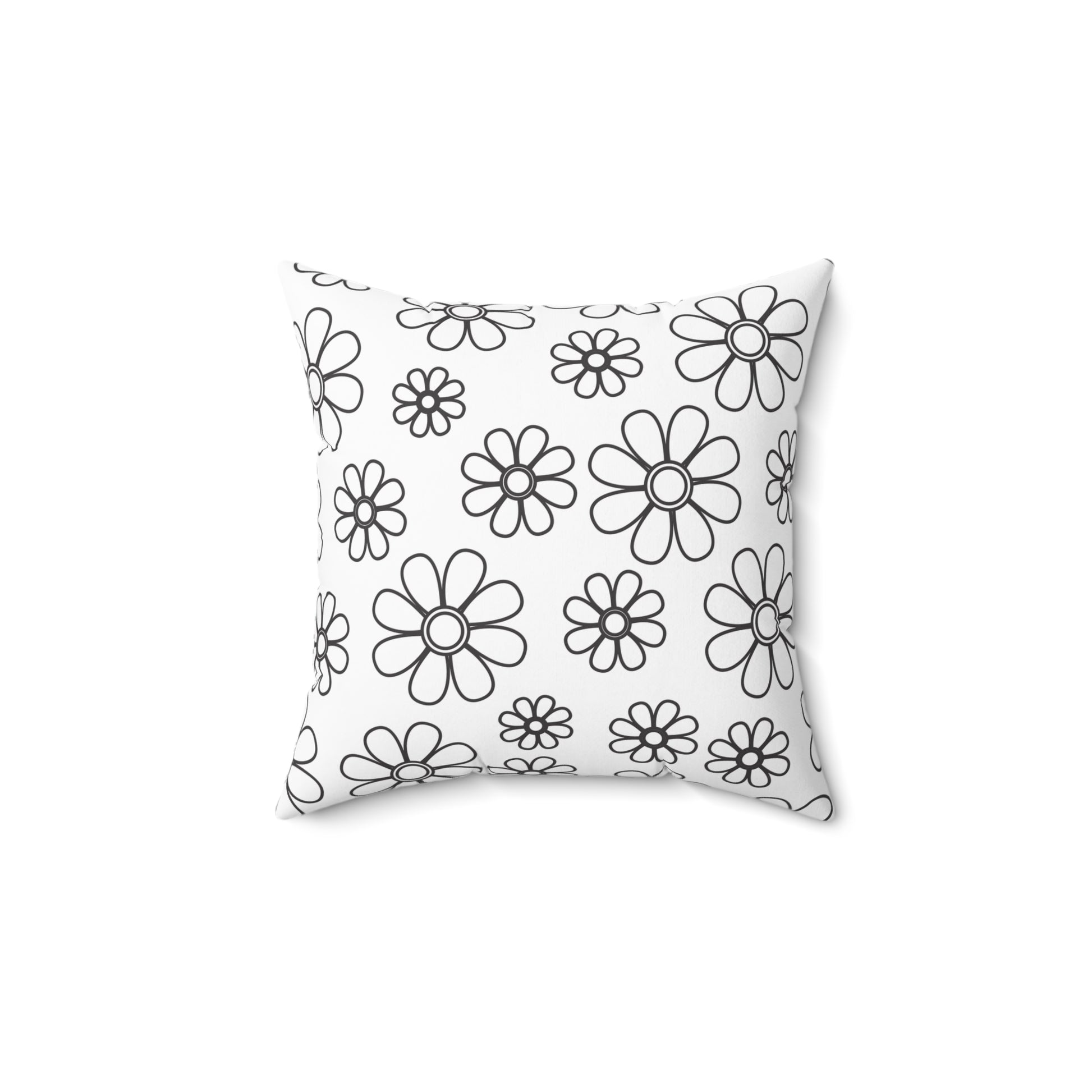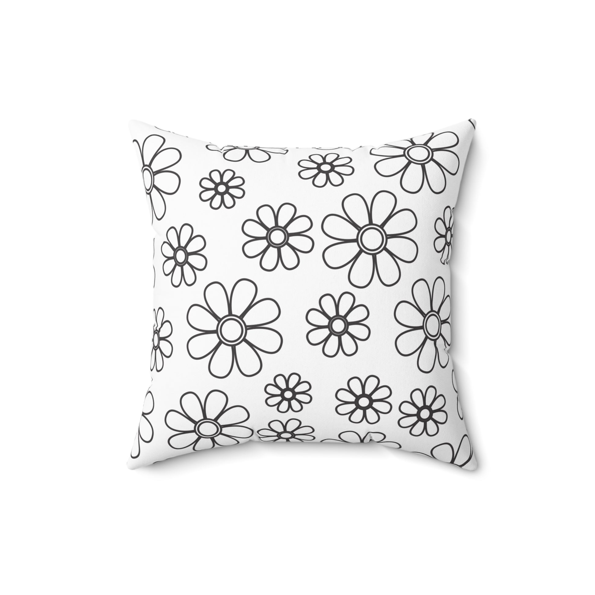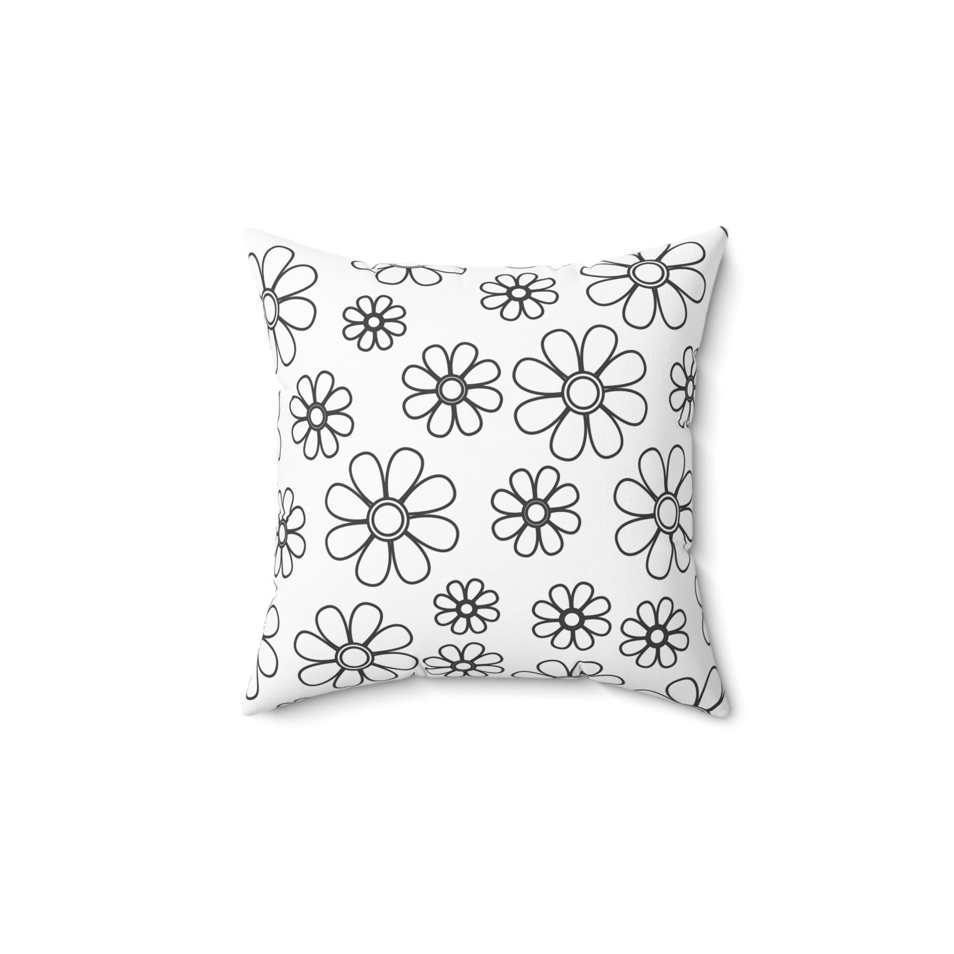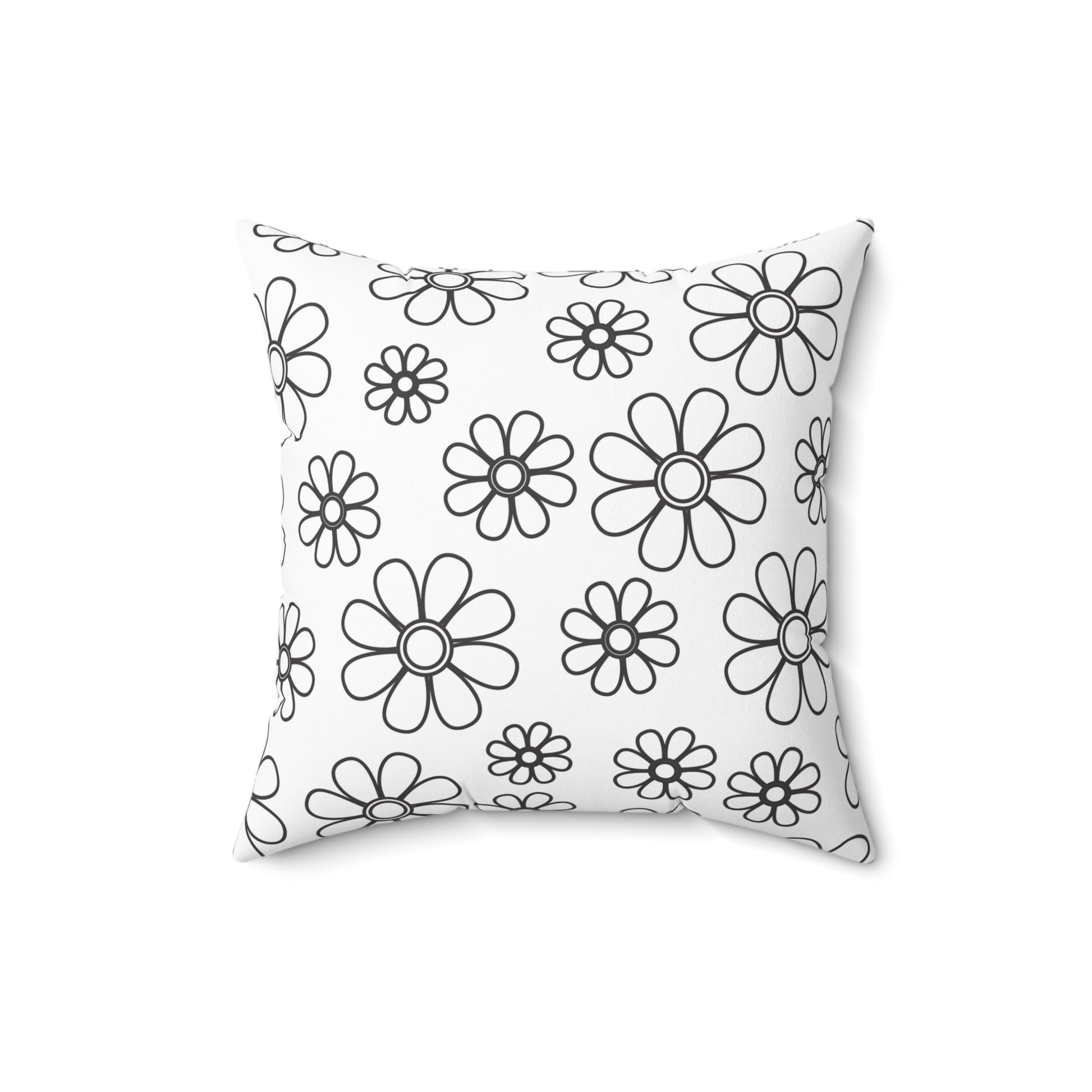 Almohada decorativa con diseño de flores en blanco y negro, almohada decorativa para sala de estar, almohada de diseño de 16 x 16 pulgadas, almohada con diseño floral de contorno negro, ideas para regalos