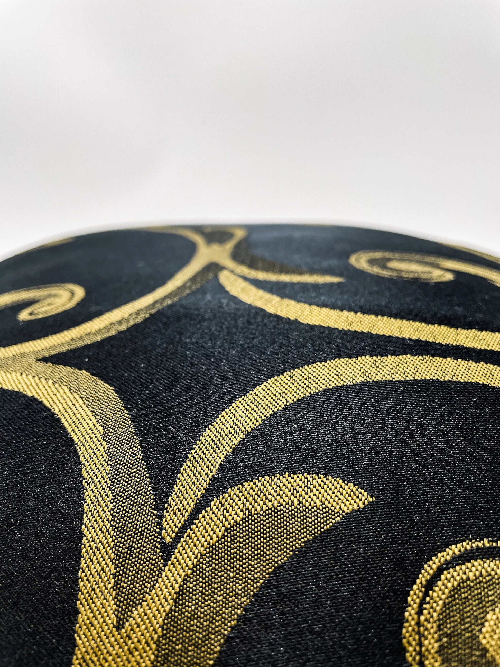 • Luxurious satin fabric with a black and moss green swirl pattern