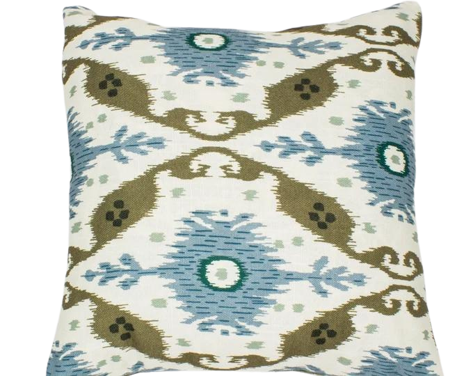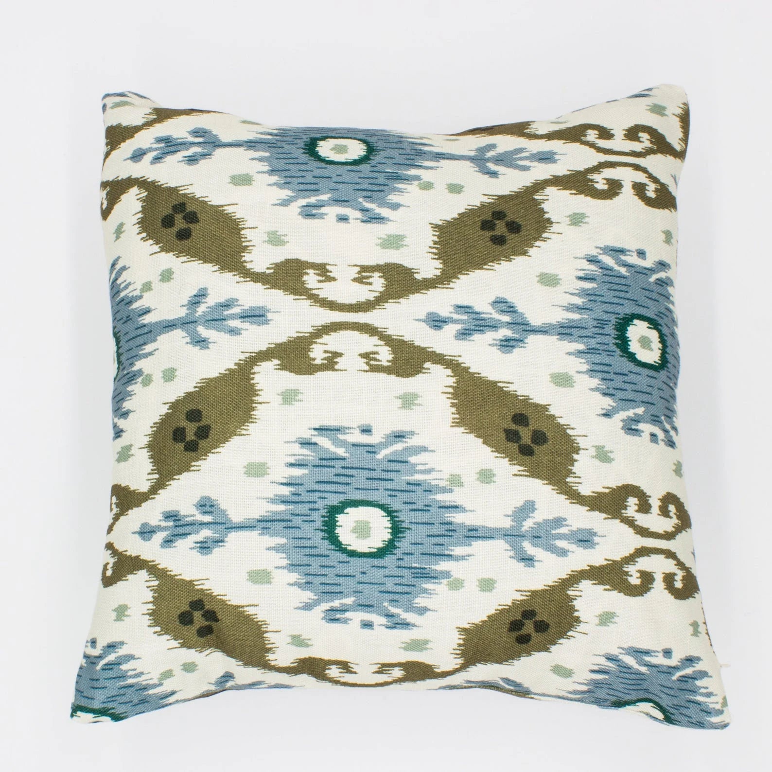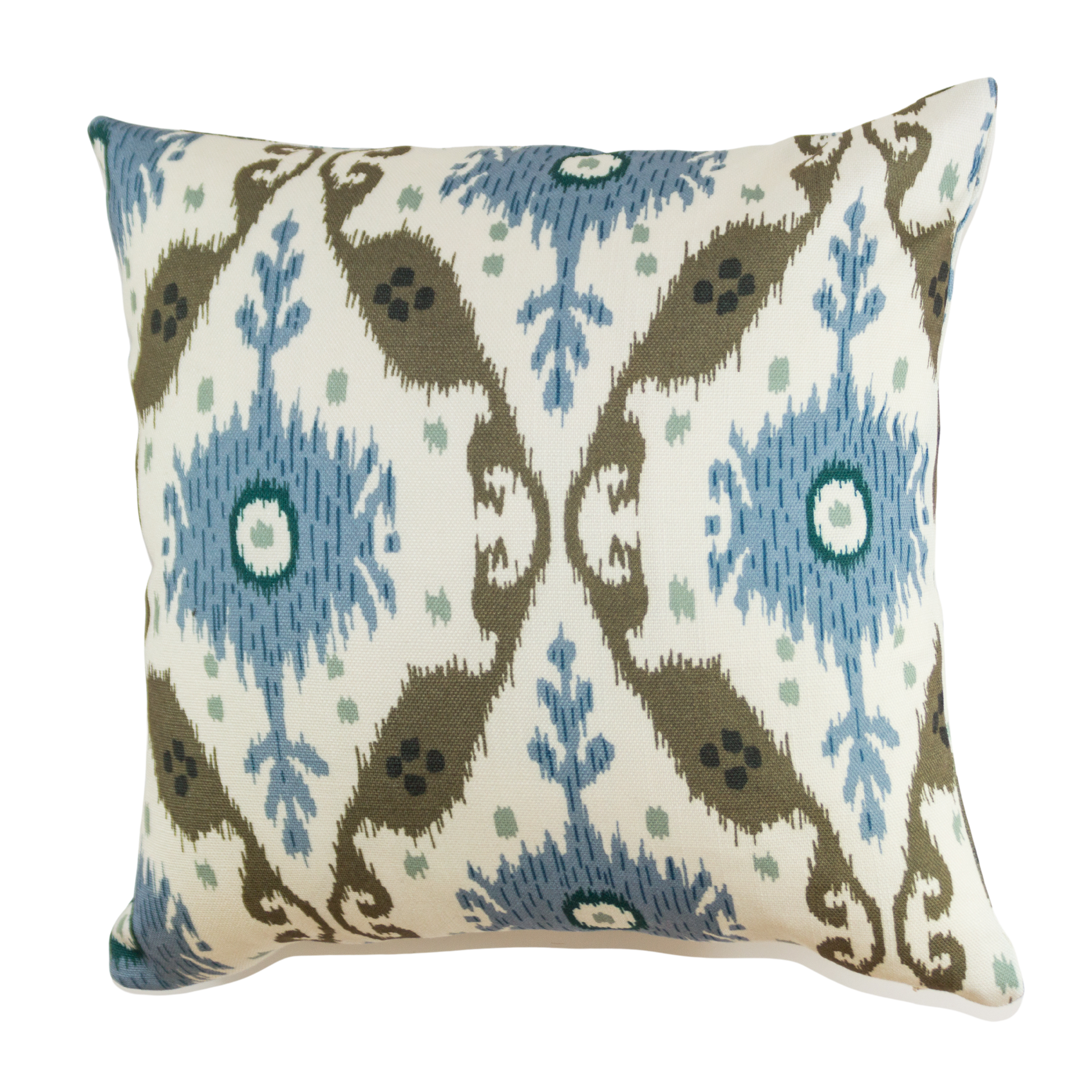 Blue and Beige Abstract 16x16 Bohemian Throw Pillow Cover - Decorative Accent Cushion for Sofa, Couch, and Bed