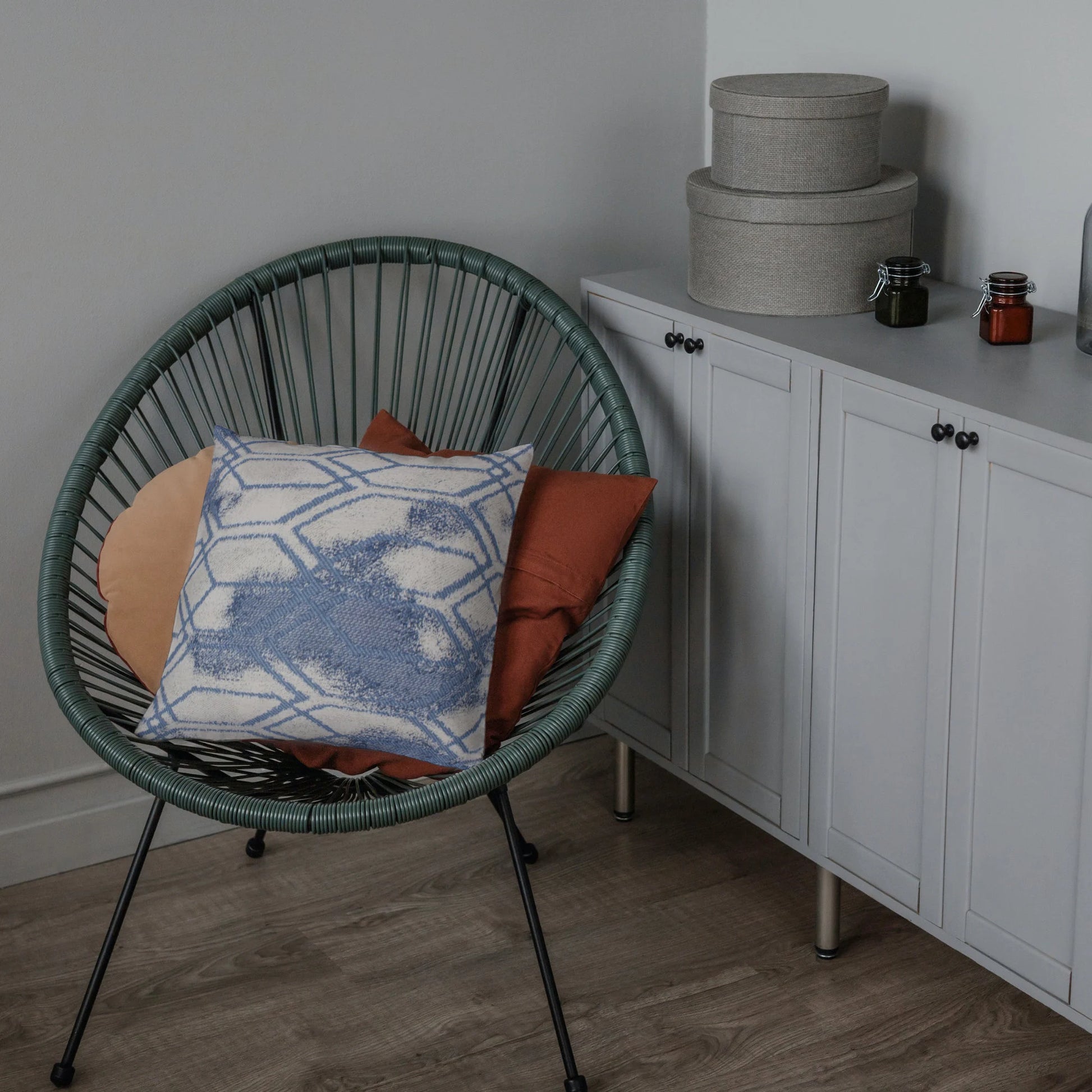 Create a cozy and stylish atmosphere in your home with this unique blue and cream patterned pillow cover. Shop now and elevate your decor with this contemporary accent piece!