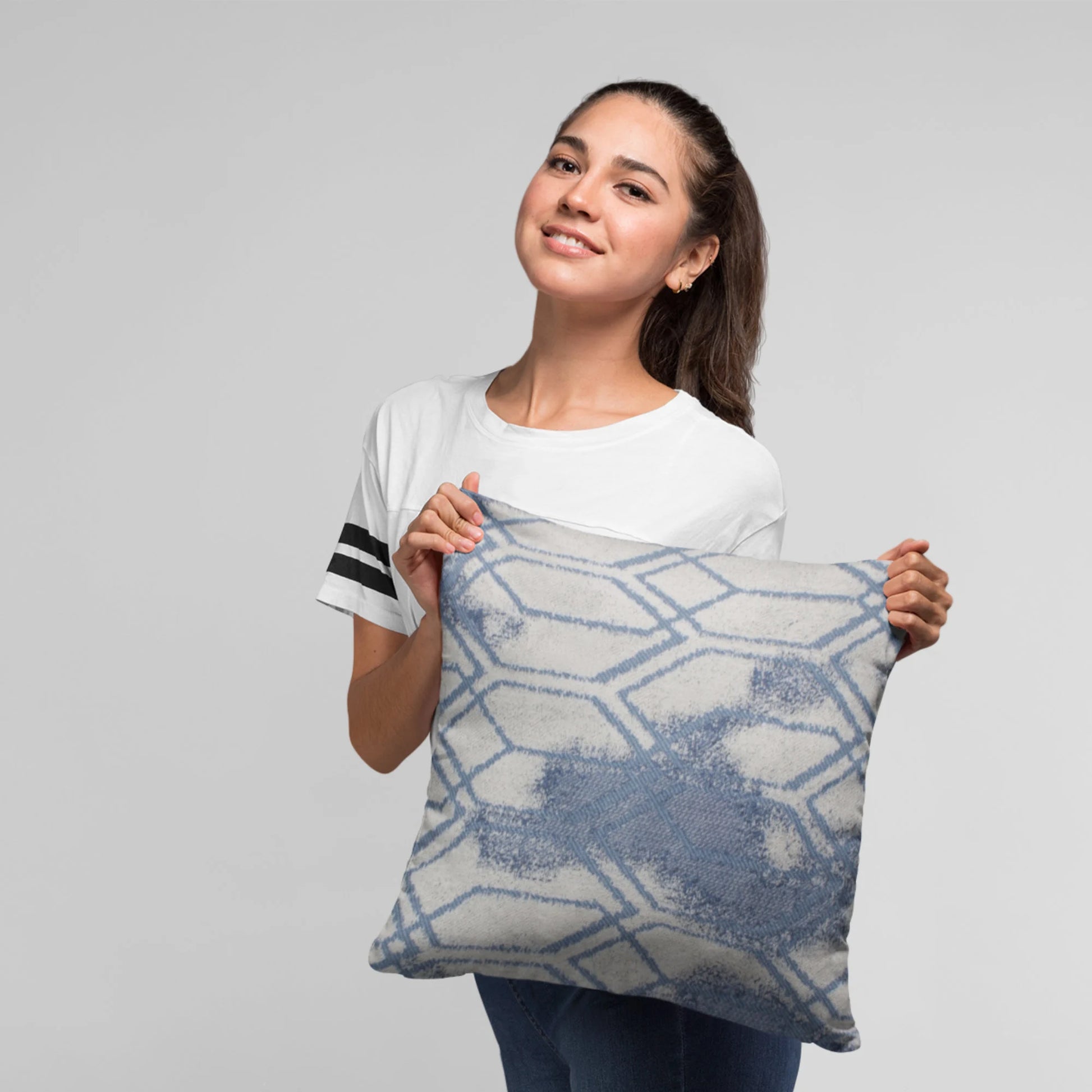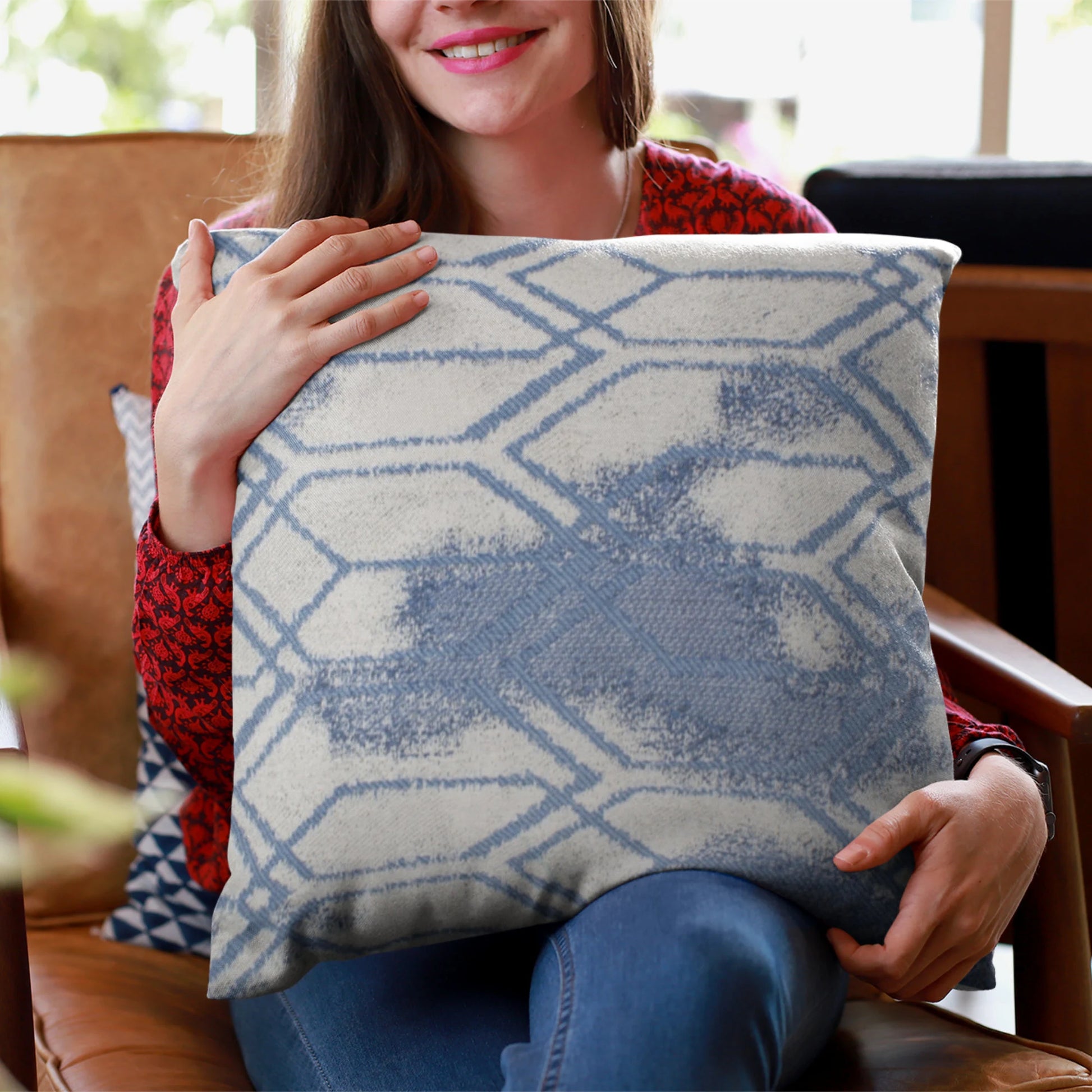 Blue and Cream 16x16 Heavy Throw Pillow Cover - Unique Modern Accent for Living Room, Office, or Bedroom Decor