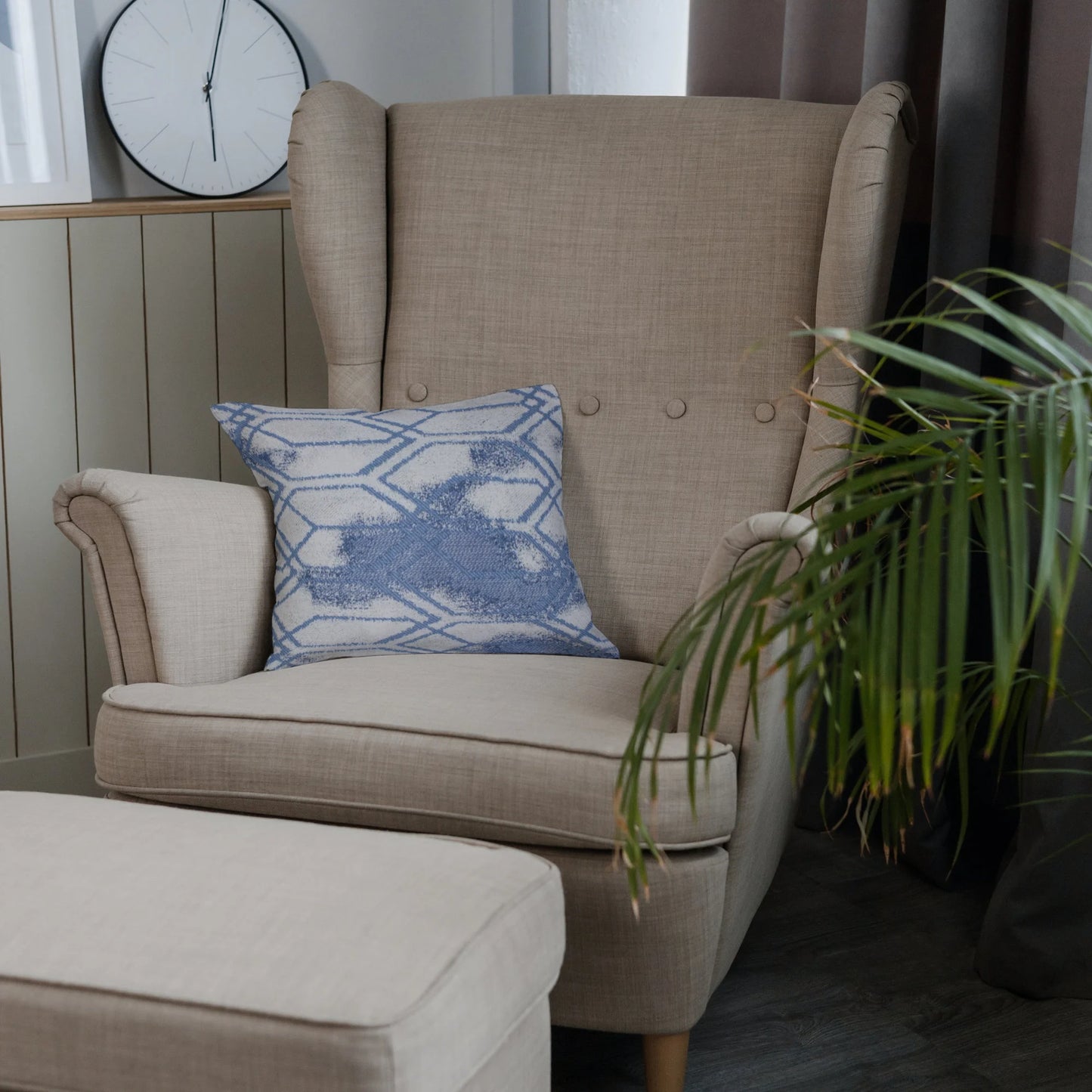 Bring a touch of modern elegance into your space with our Blue and Cream Patterned Heavy Throw Pillow Cover, designed to create a cozy and stylish atmosphere. Made from high-quality, durable upholstery fabric, this 16x16 inch decorative cushion cover is perfect for adding flair to your living room, bedroom, or office. Featuring a striking blue and cream pattern, each pillow cover is unique due to the variation in pattern placement, making it a true conversation starter.
