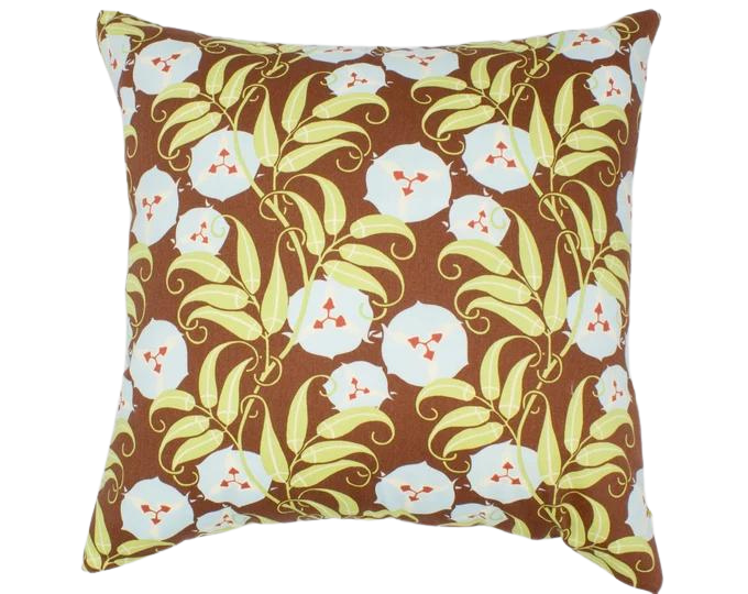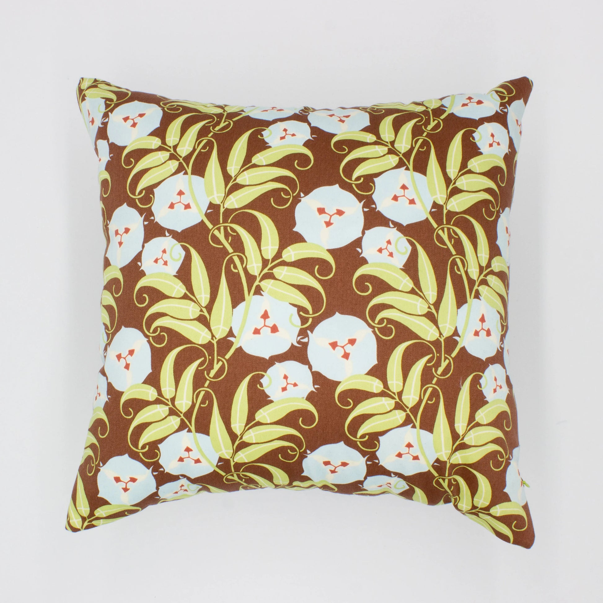 Brown Floral 16x16 Polyester Cotton Throw Pillow Cover - Modern Living Room and Bedroom Decor
