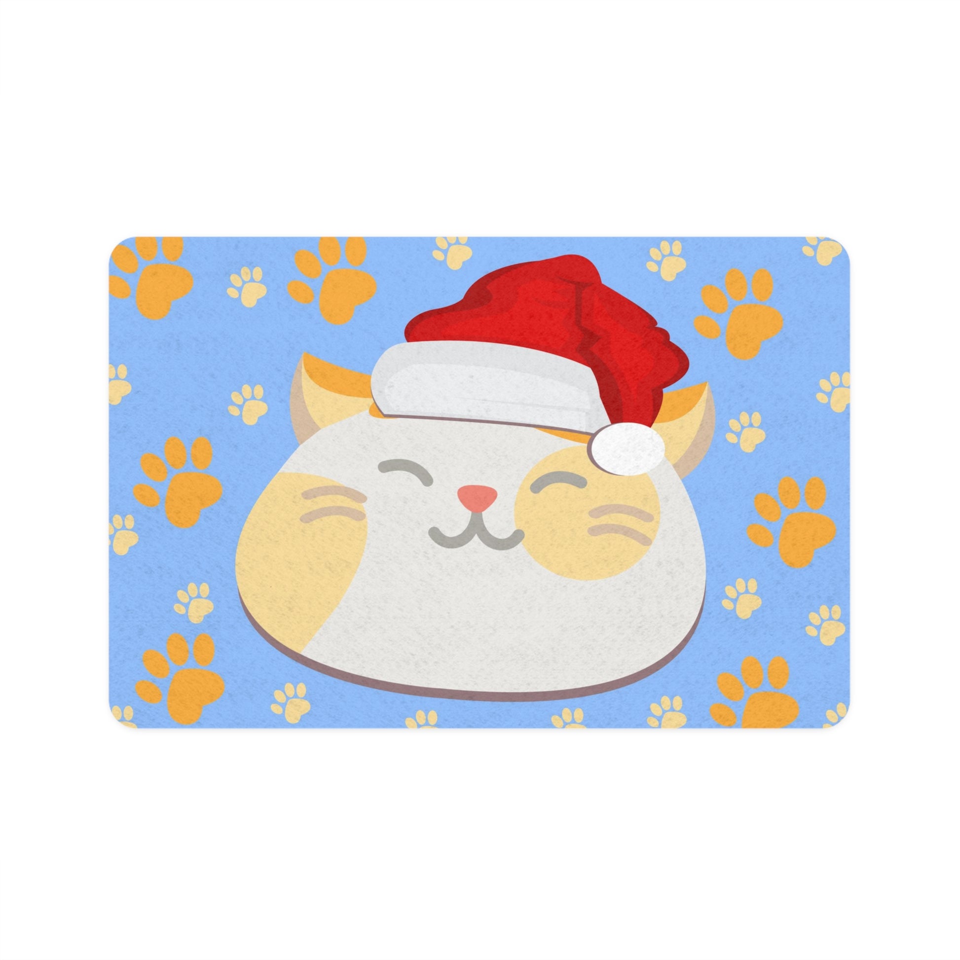 Alfombrilla para comida para mascotas con diseño de gato con gorro de Papá Noel