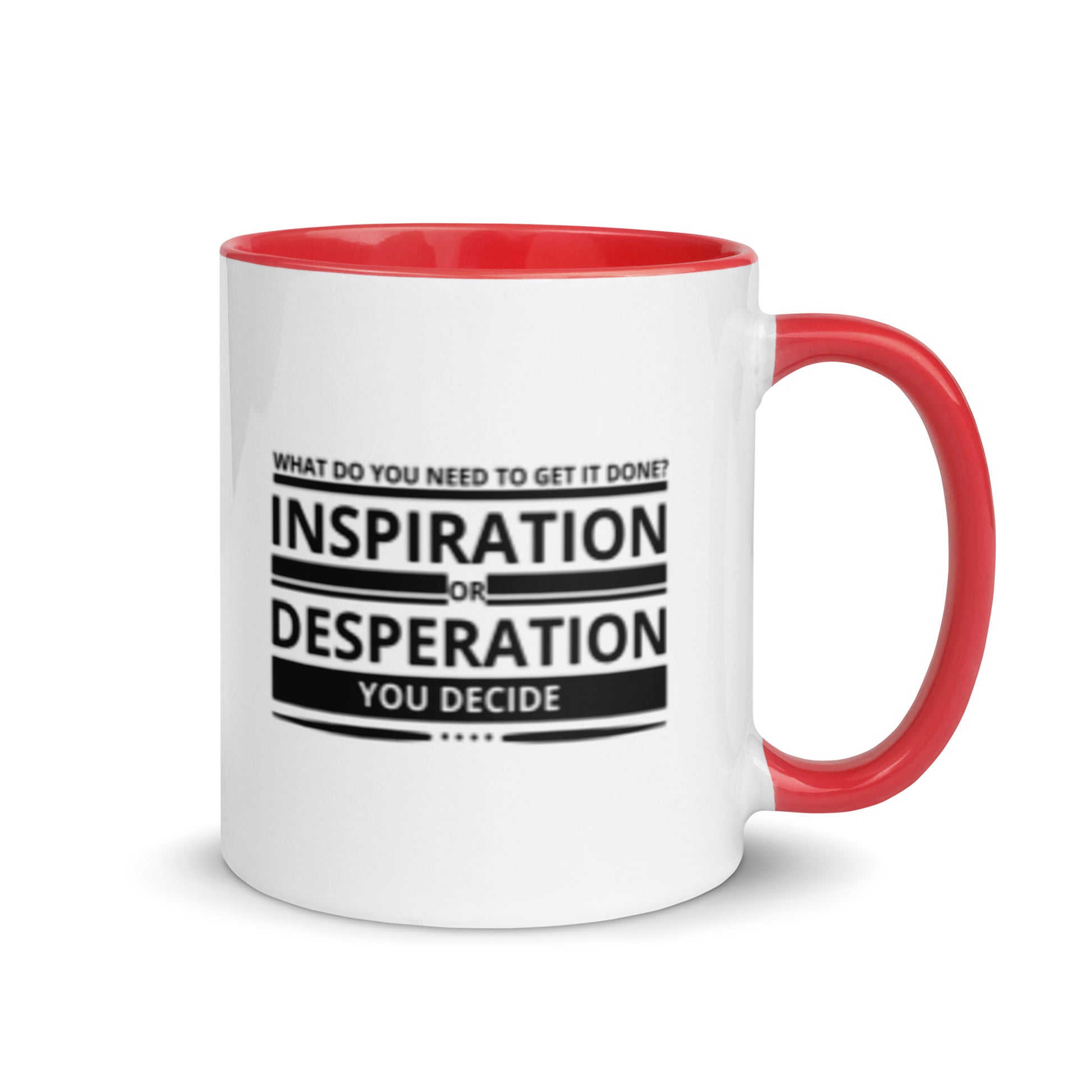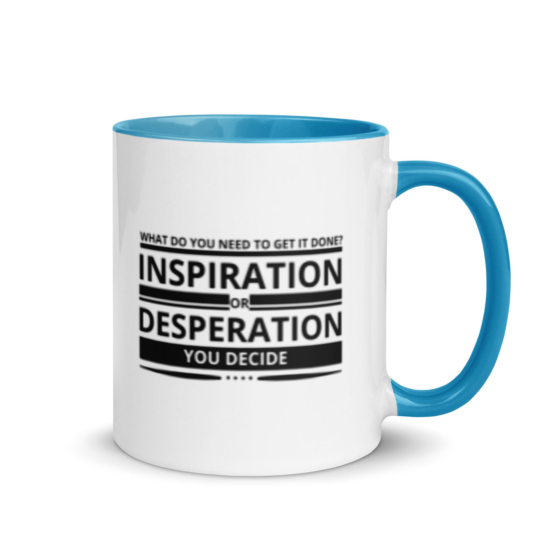 Deja que el mensaje motivador de esta taza guíe tu día: es cuestión de elegir entre dejarte llevar por la inspiración o por la necesidad. Mejora tu rutina, toma decisiones impactantes y marca el tono para el éxito.