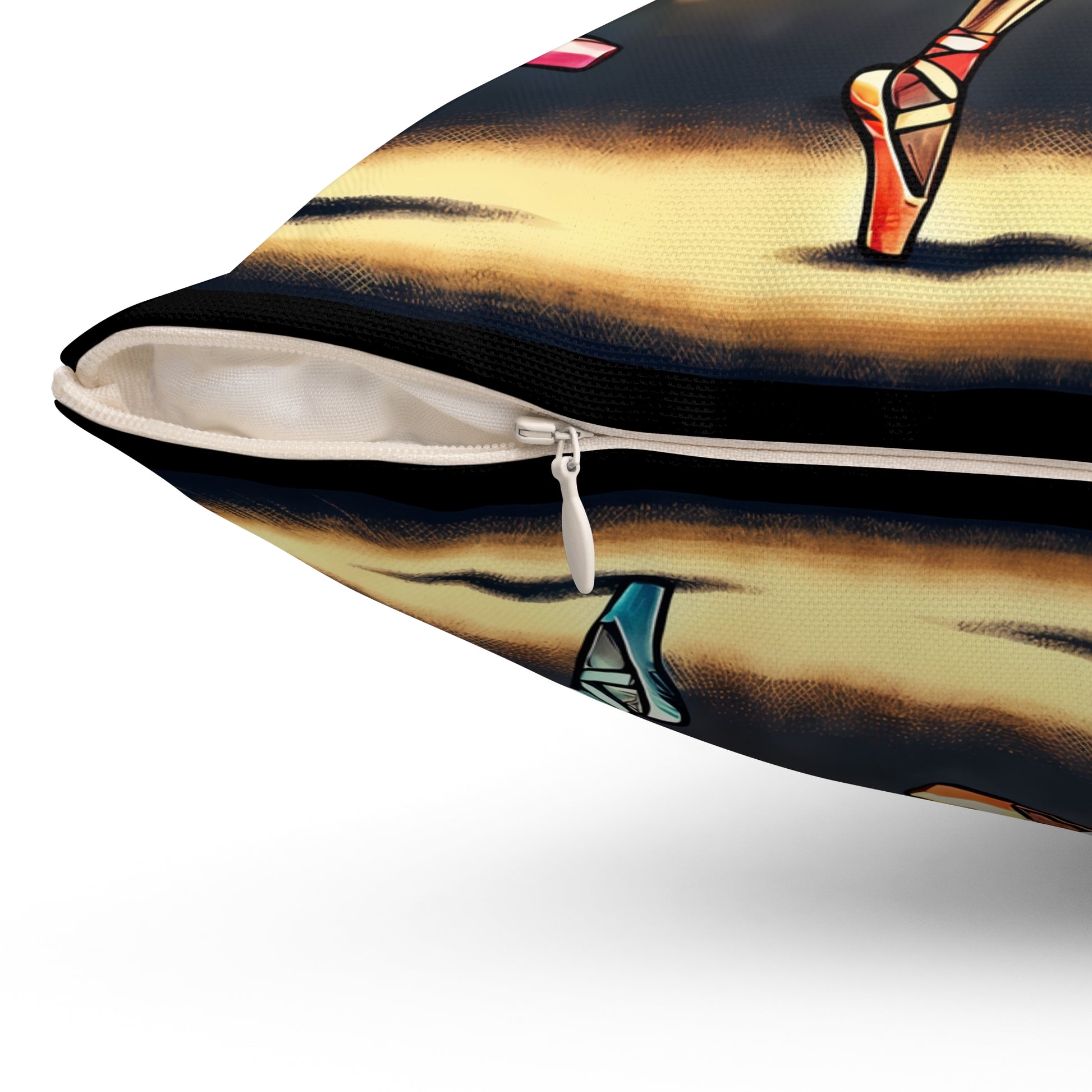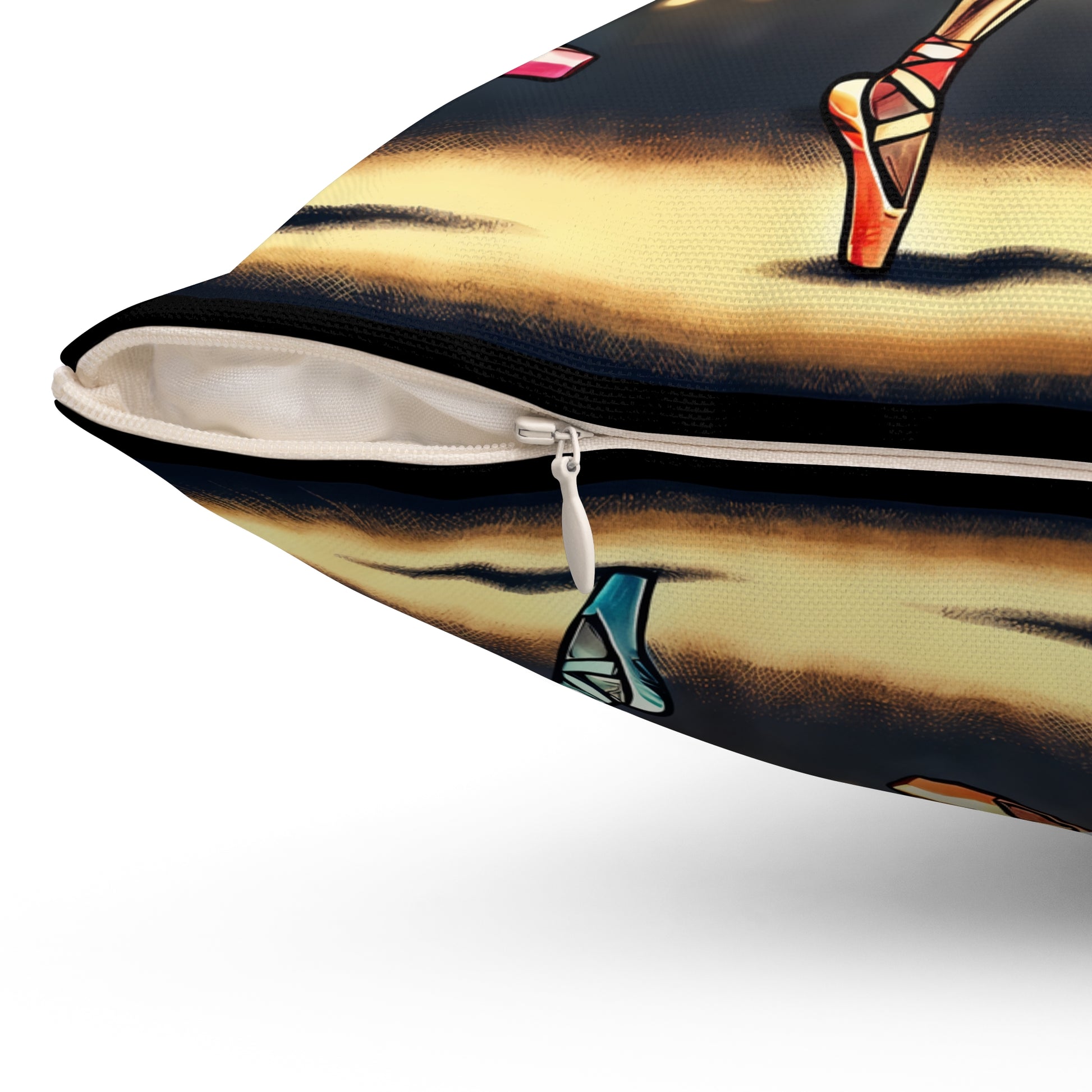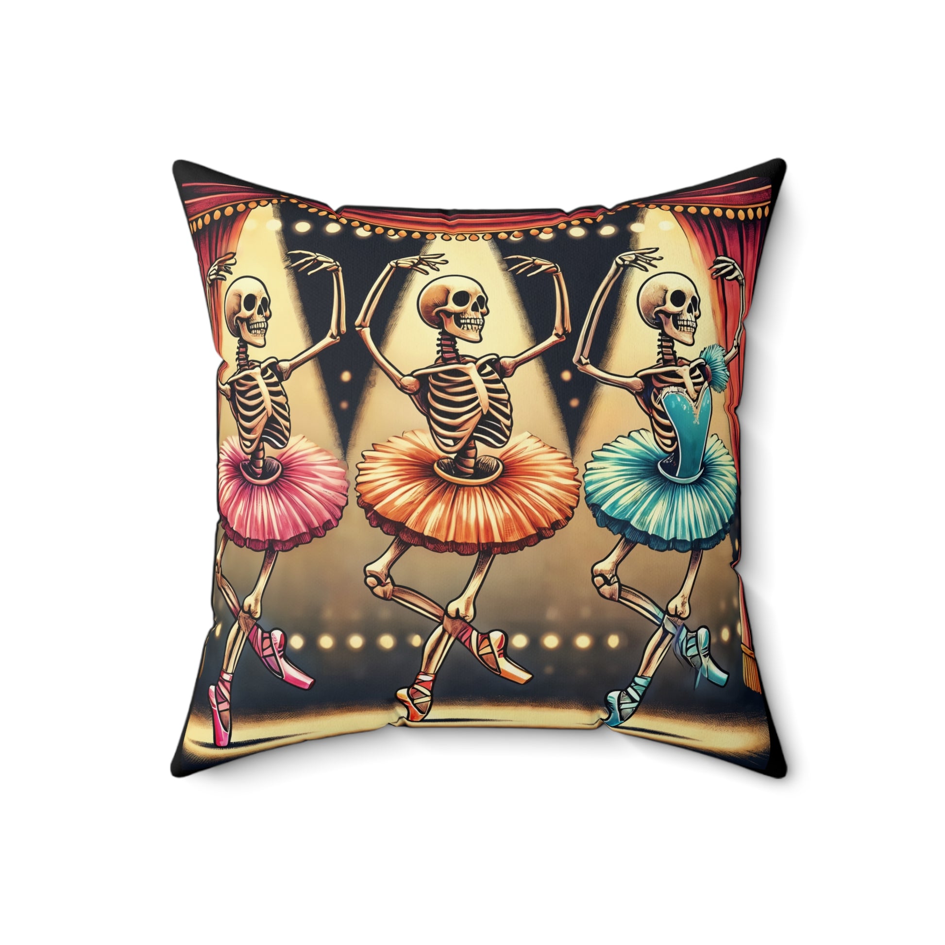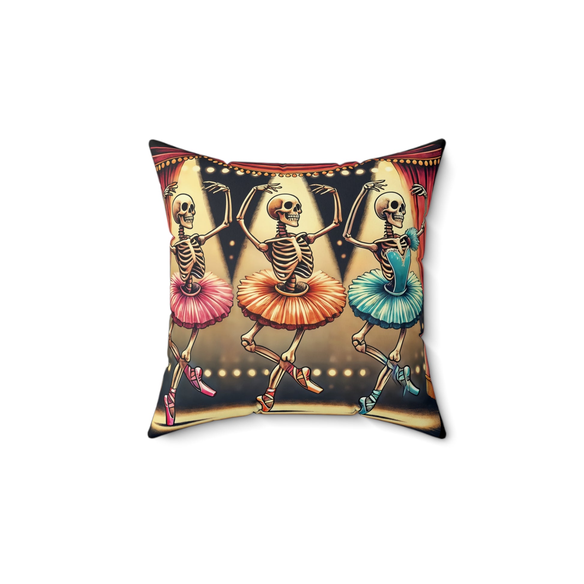 • Square-shaped throw pillow with a dancing skeleton ballerinas design