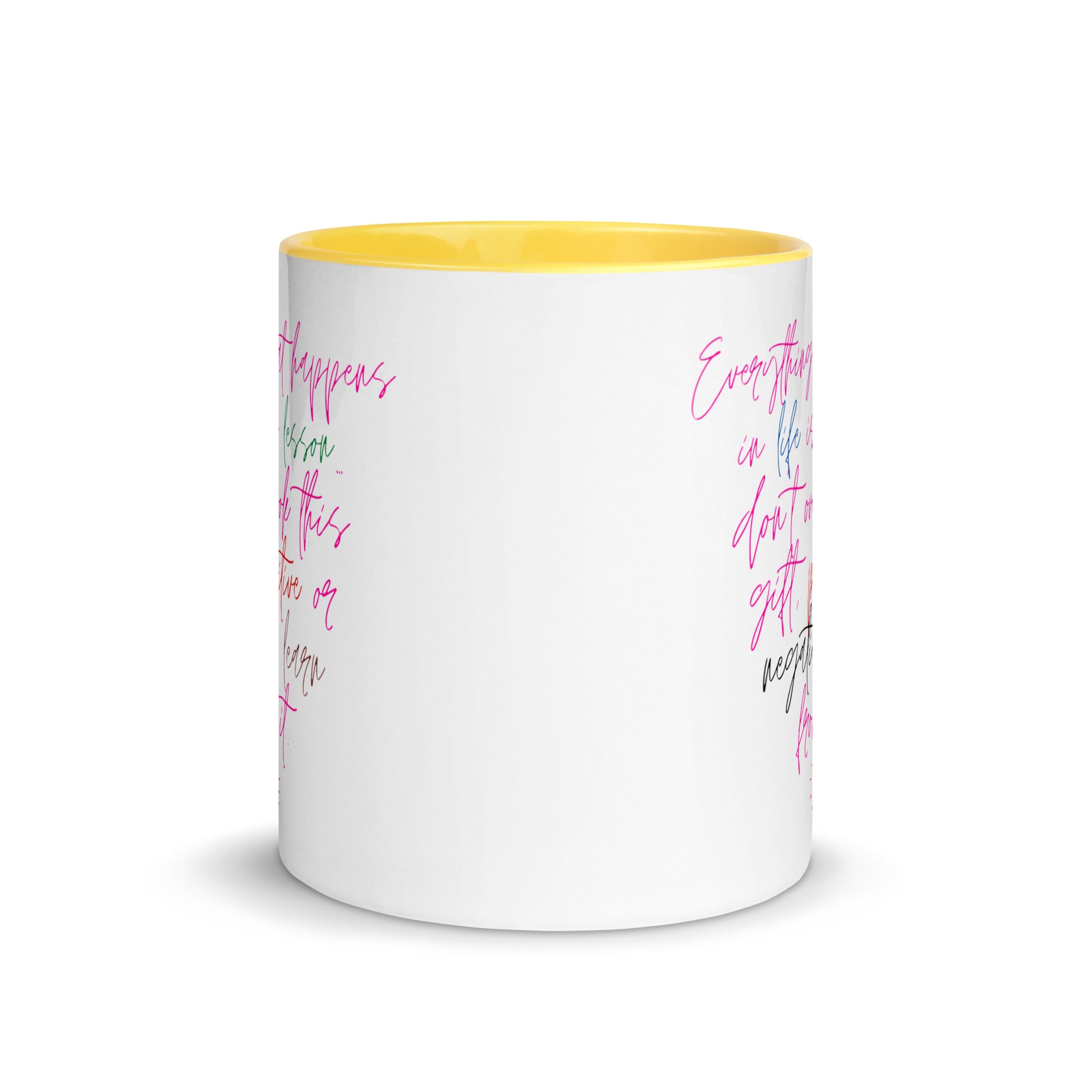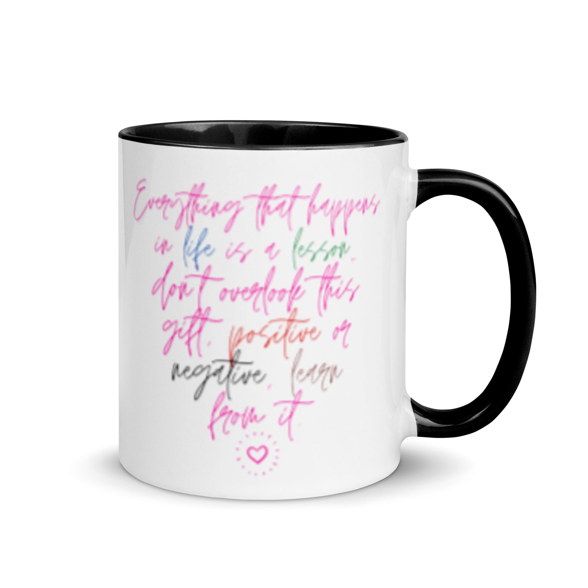 Empieza el día con una taza de sabiduría caliente en nuestra taza de café "Embrace Every Experience Life's Lessons". Elaborada con cuidado, esta taza de cerámica va más allá de su impresionante exterior: es un recordatorio diario para apreciar cada momento. Con colores vibrantes que adornan el borde, el asa y el interior, cada sorbo se convierte en una oportunidad para abrazar el viaje de la vida. El mensaje empoderador, "Todo lo que sucede en la vida es una lección, no pases por alto este regalo, positivo o negativo, aprende de él", te invita a ver el valor de cada experiencia. Ya sea que estés disfrutando de tu café matutino o relajándote con un té, esta taza ofrece inspiración con cada sorbo. Eleva tu ritual de café o té con un toque de positividad y reflexión, o regálasela a alguien especial como recordatorio de la sabiduría que imparte la vida.