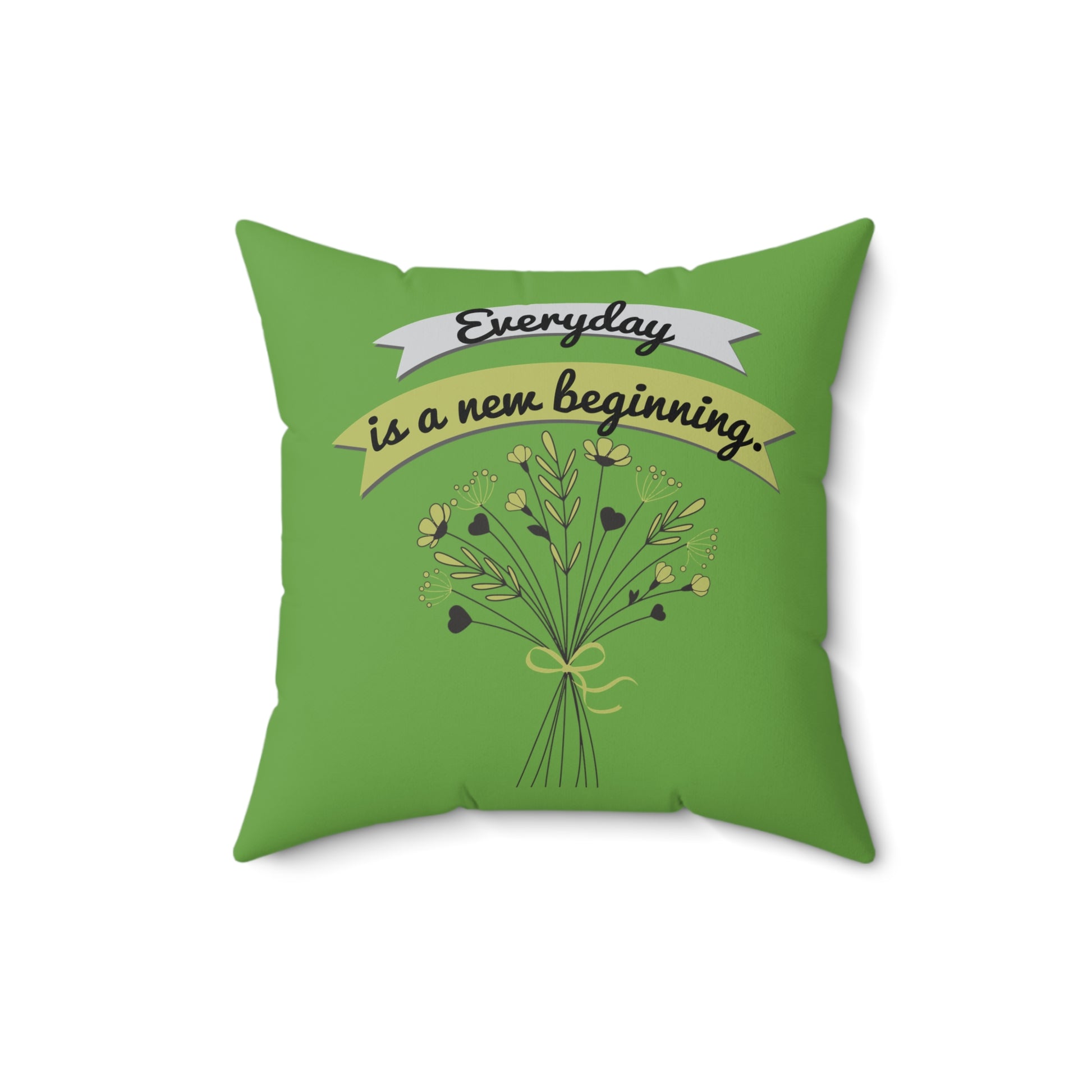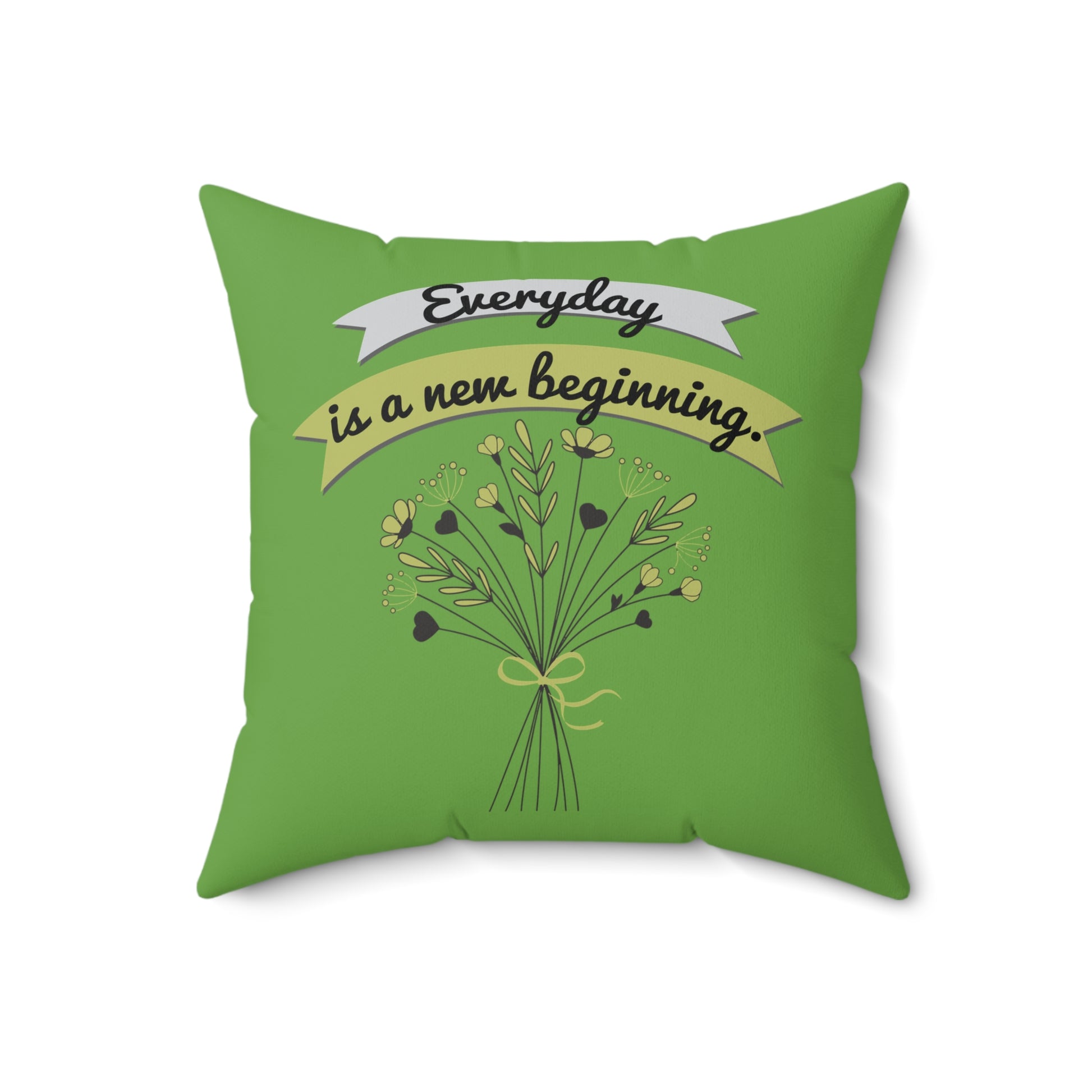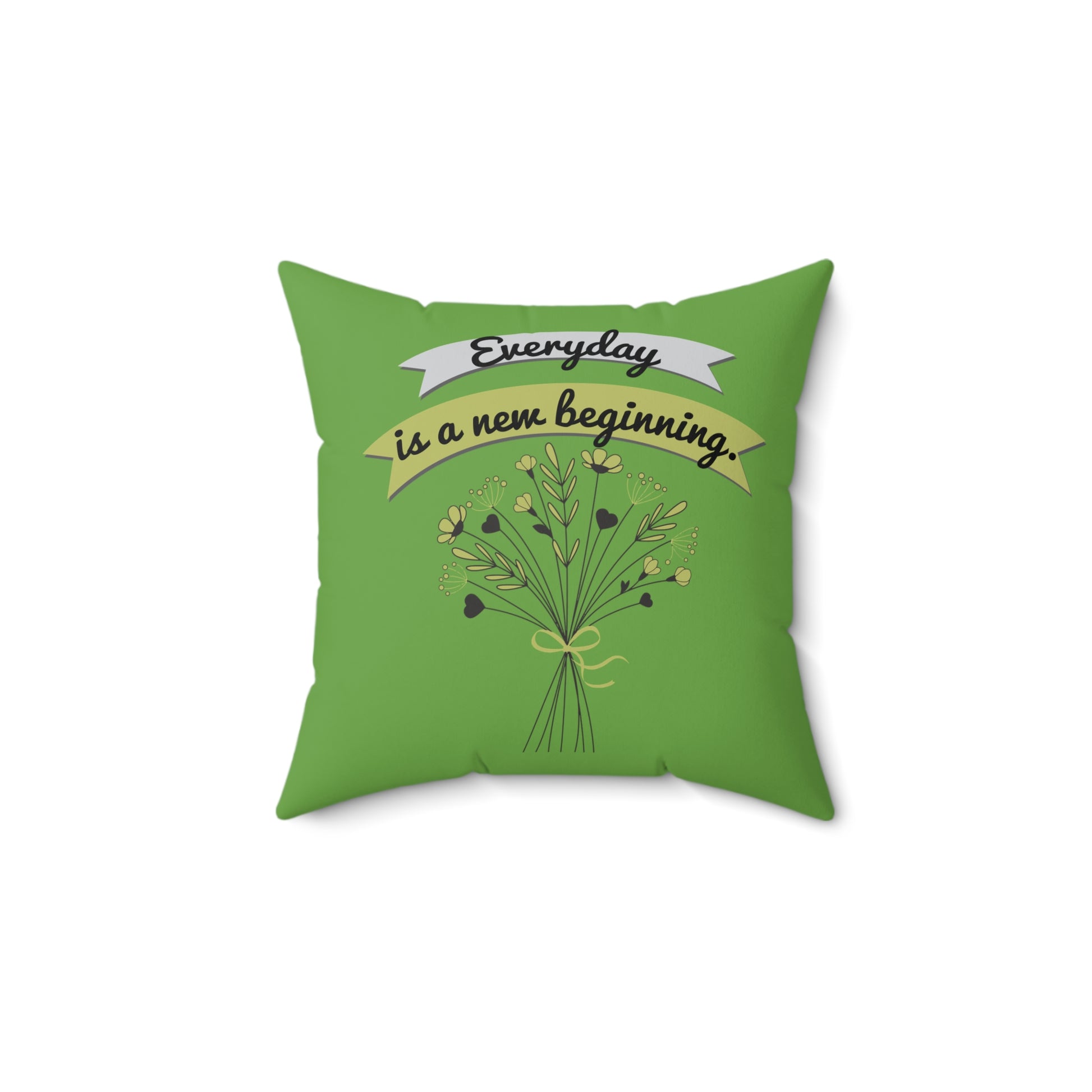Todos los días son un nuevo comienzo, elegante almohada floral verde, almohada de poliéster con funda, almohada de 18 x 18 pulgadas, decoración de habitación verde, ideas de regalo