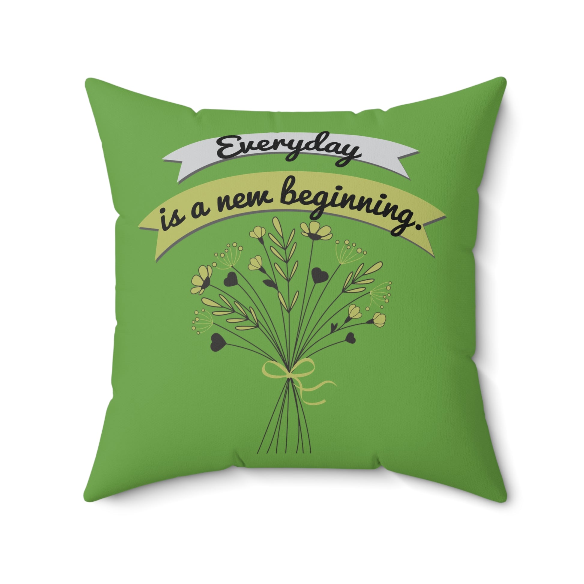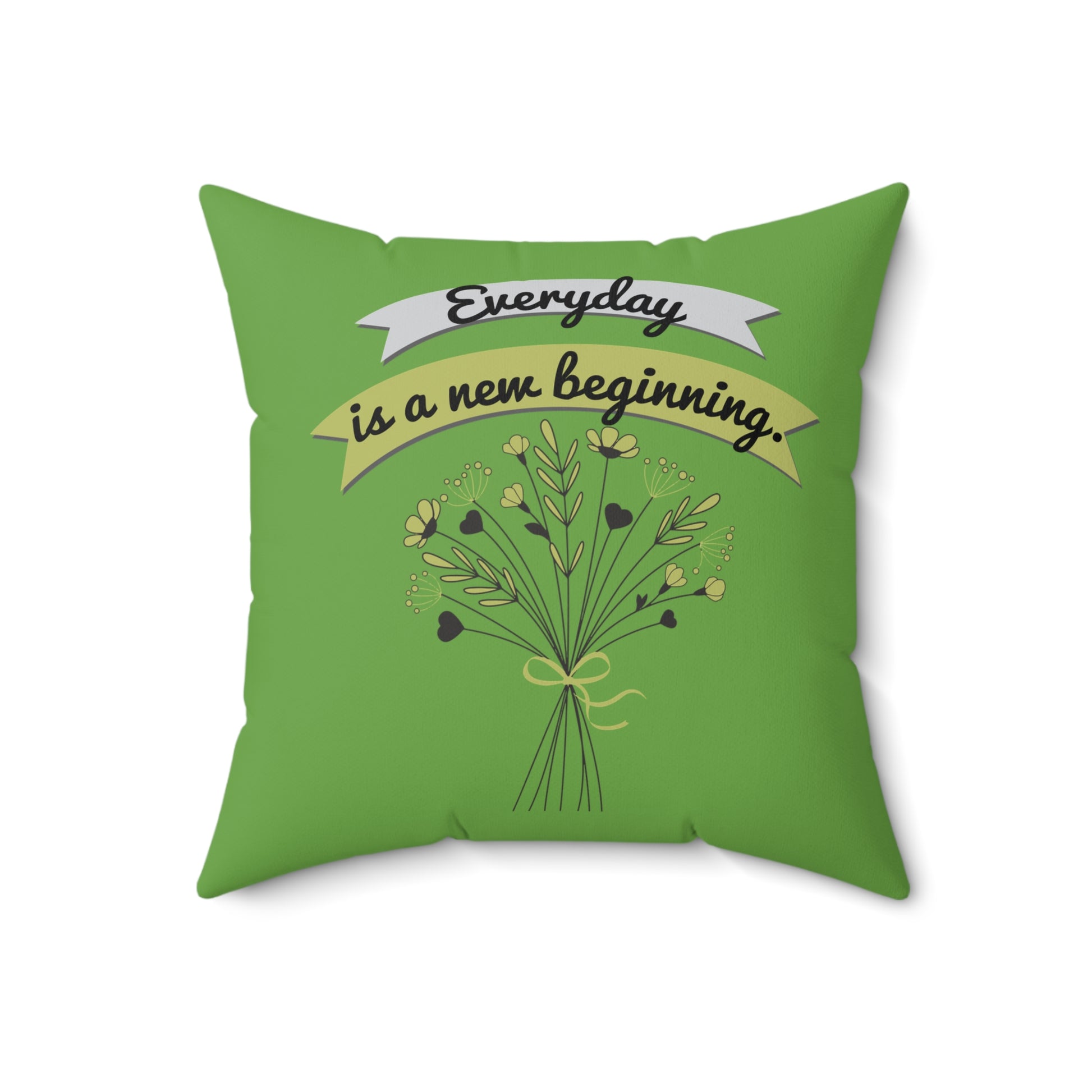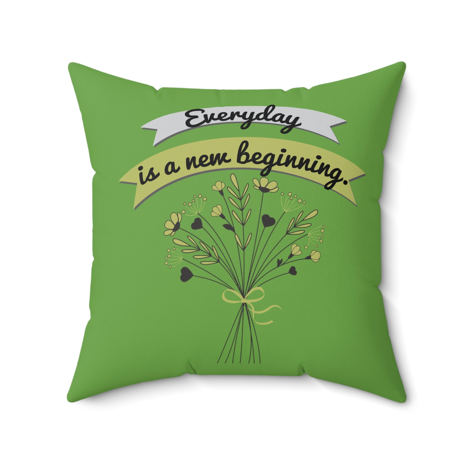 Todos los días son un nuevo comienzo, elegante almohada floral verde, almohada de poliéster con funda, almohada de 18 x 18 pulgadas, decoración de habitación verde, ideas de regalo