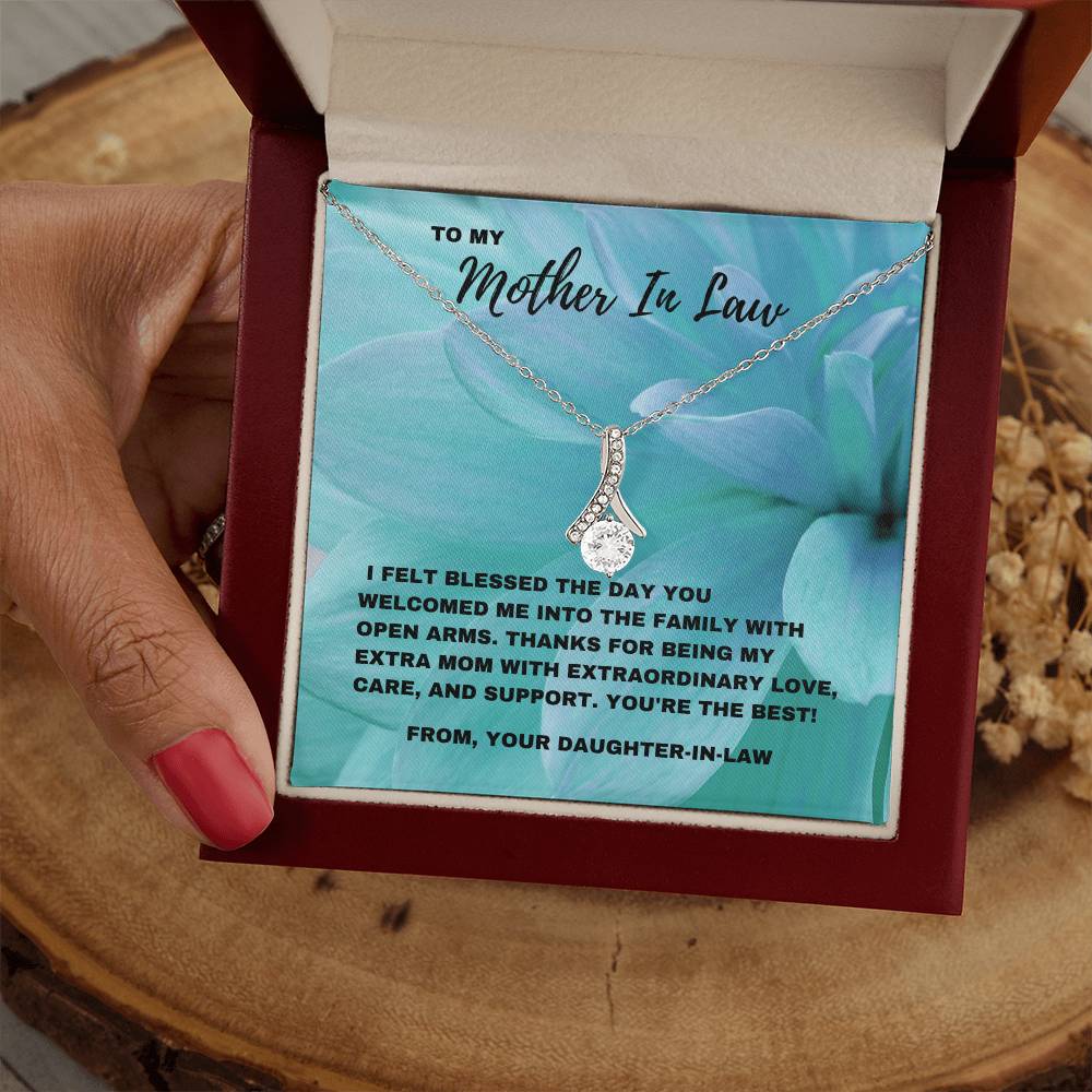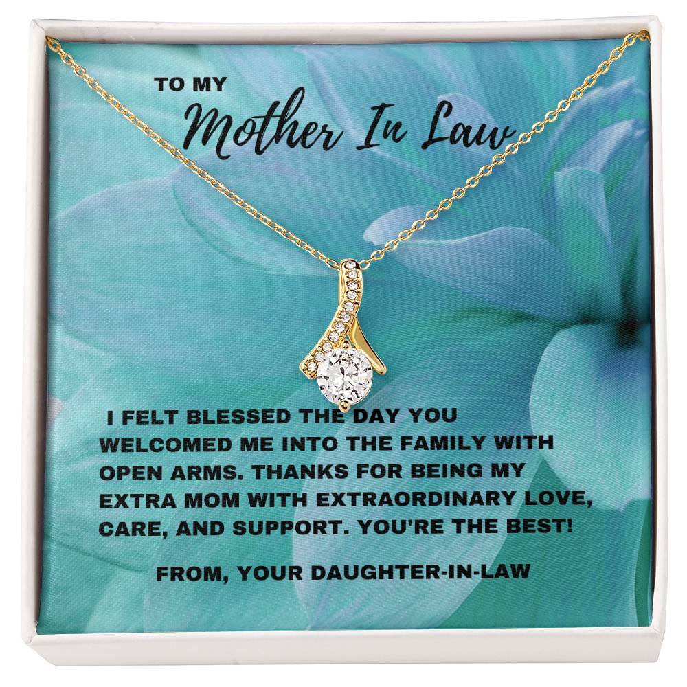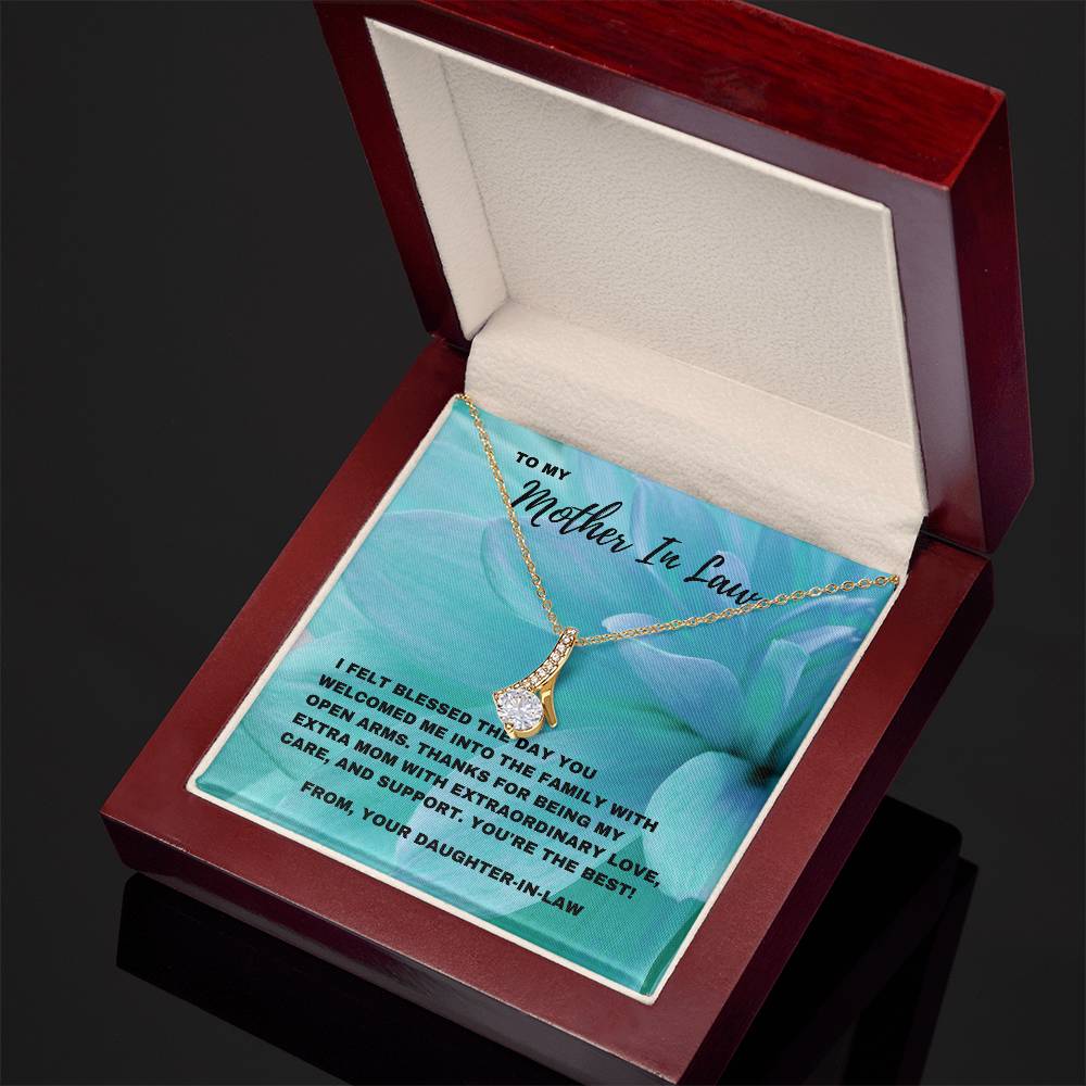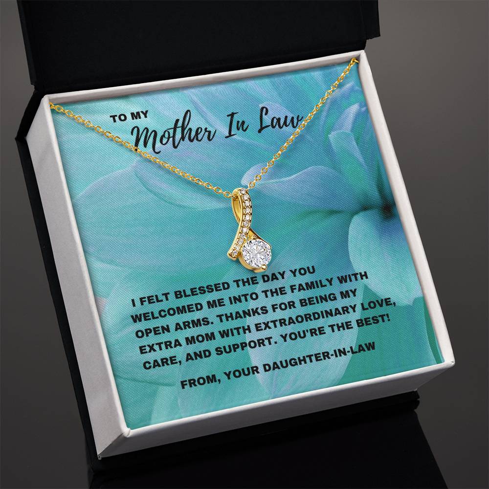 Celebre el día en que su suegra le dio la bienvenida a la familia con los brazos abiertos regalándole esta hermosa pieza de joyería. Acompañado de una tarjeta con un mensaje sincero que dice: “Me sentí bendecida el día en que me dio la bienvenida a la familia con los brazos abiertos”, este obsequio es un homenaje conmovedor al extraordinario amor, cuidado y apoyo que le ha demostrado. Muestre su agradecimiento por el vínculo especial que comparten con un recuerdo que podrá atesorar por siempre.
