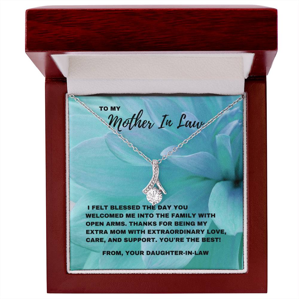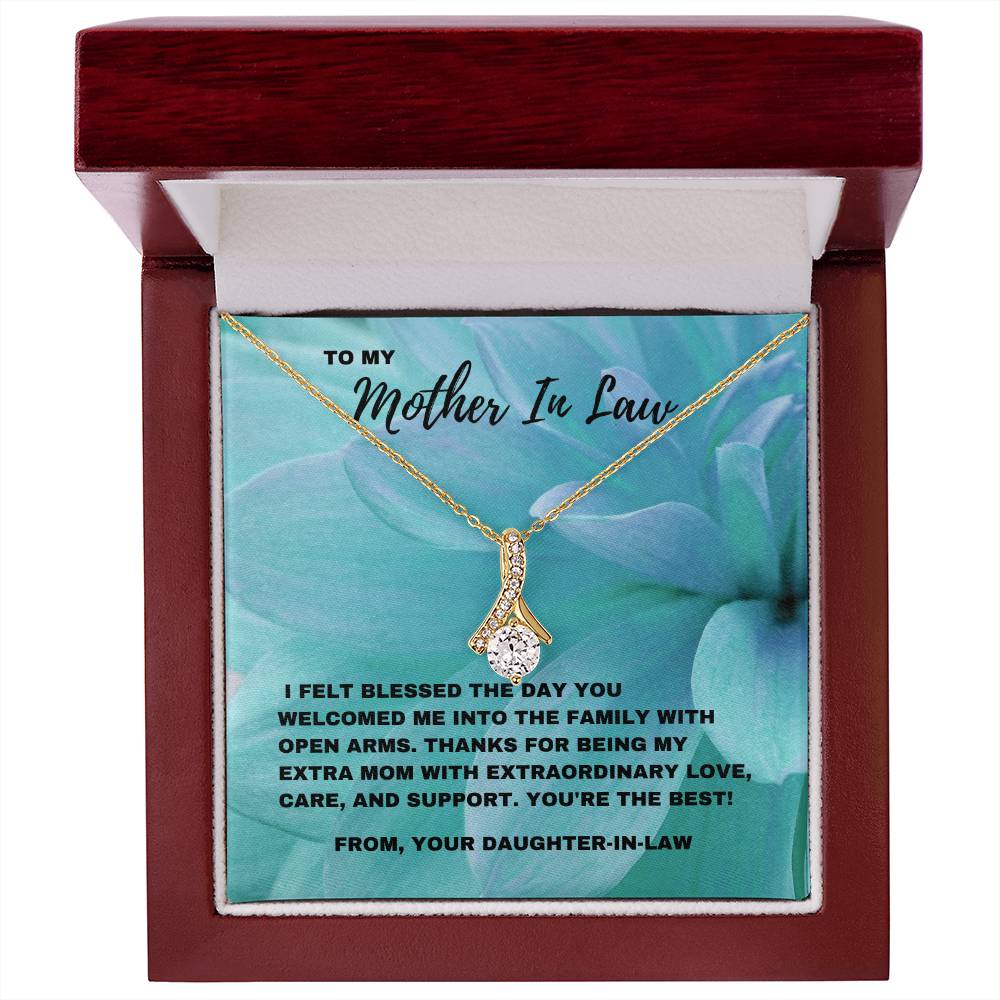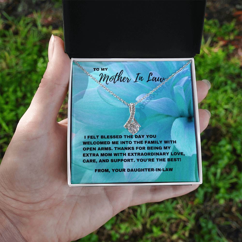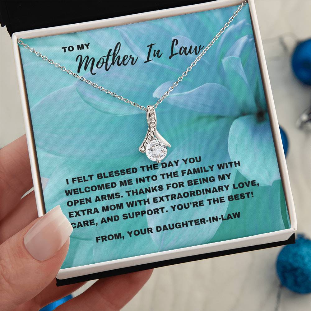 Celebre el día en que su suegra le dio la bienvenida a la familia con los brazos abiertos regalándole esta hermosa pieza de joyería. Acompañado de una tarjeta con un mensaje sincero que dice: “Me sentí bendecida el día en que me dio la bienvenida a la familia con los brazos abiertos”, este obsequio es un homenaje conmovedor al extraordinario amor, cuidado y apoyo que le ha demostrado. Muestre su agradecimiento por el vínculo especial que comparten con un recuerdo que podrá atesorar por siempre.