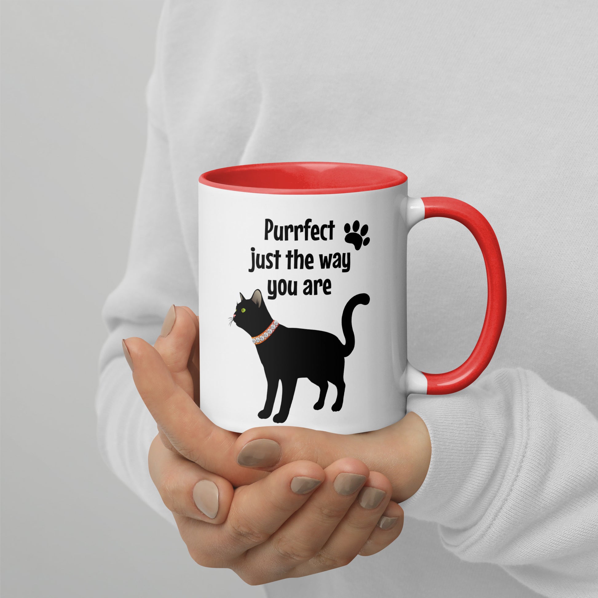 Presentamos nuestra taza de café “Feline Affirmations: Purrfect You”, una forma encantadora de alegrar tus tragos diarios. Esta taza de cerámica no solo cuenta con un diseño encantador, sino también con un borde, un asa y un interior coloridos que prometen agregar un toque divertido a tu rutina matutina.