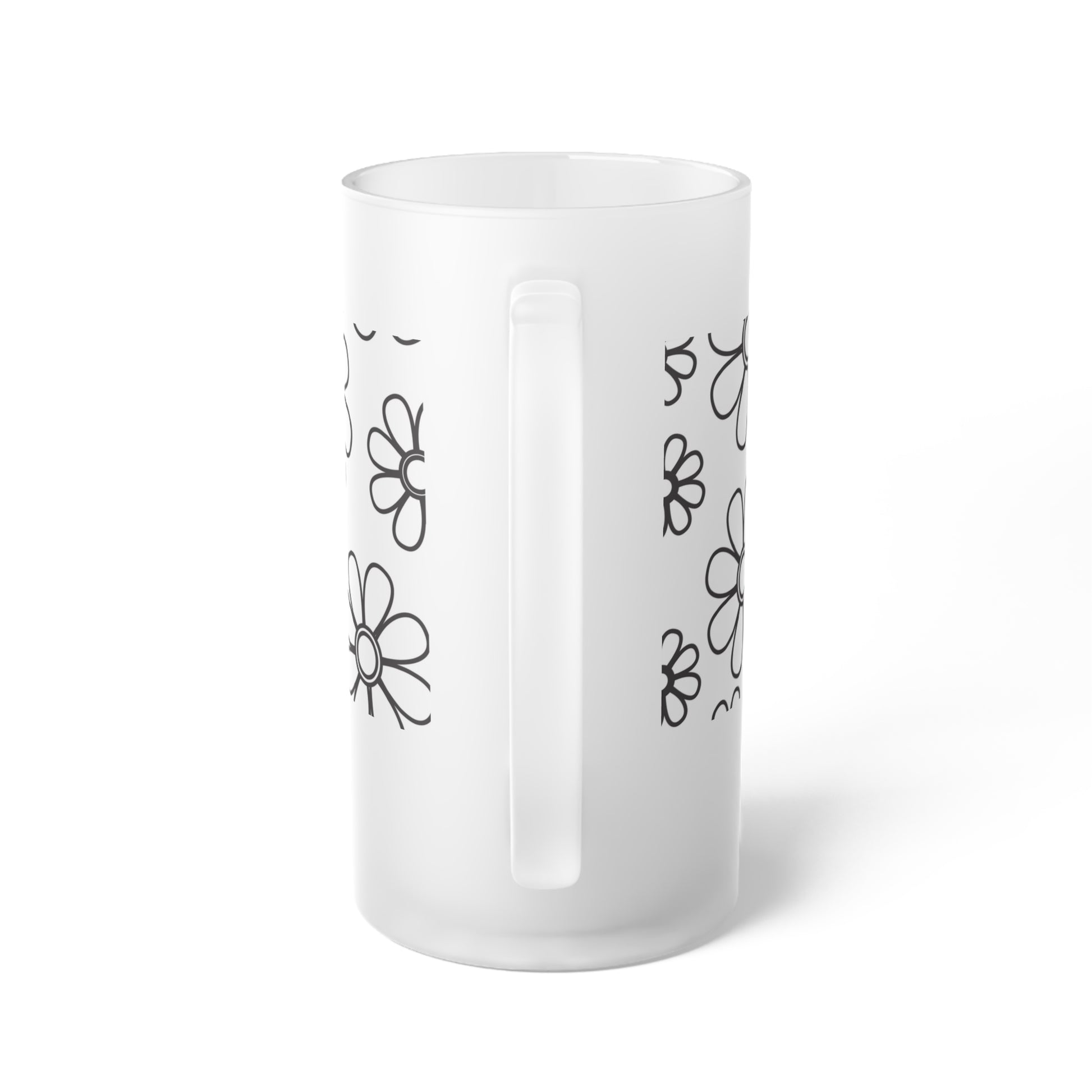Jarra de cerveza de vidrio esmerilado con diseño floral
