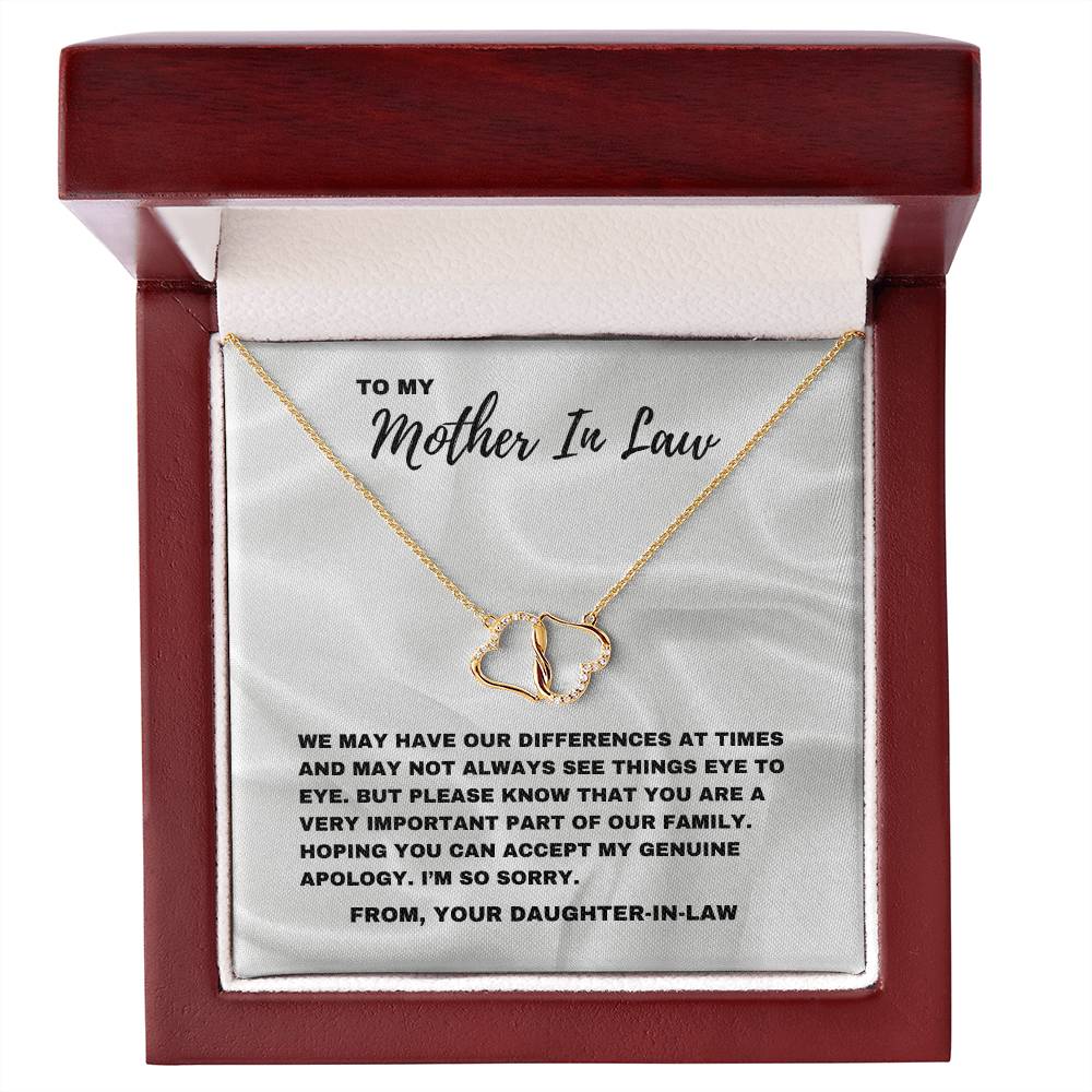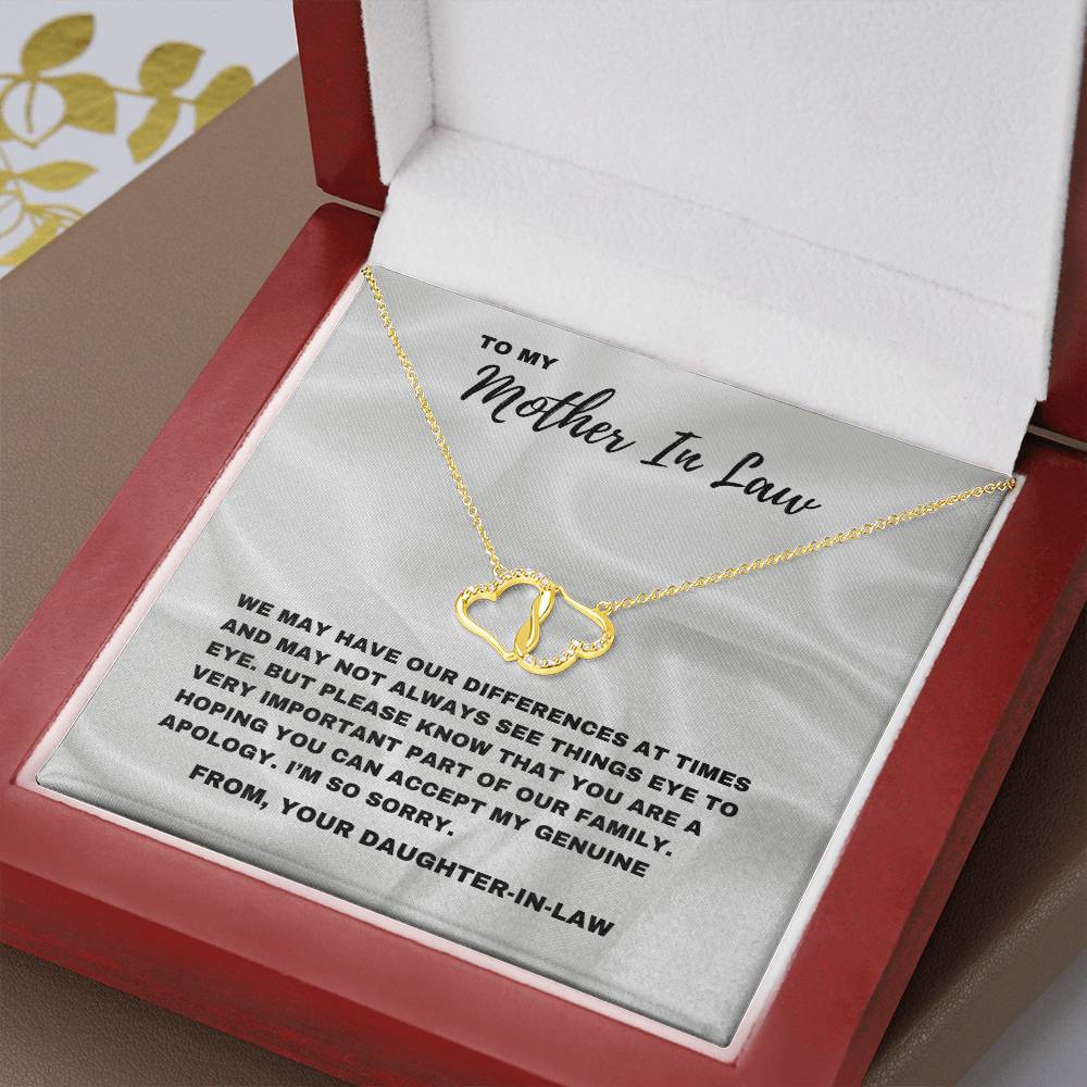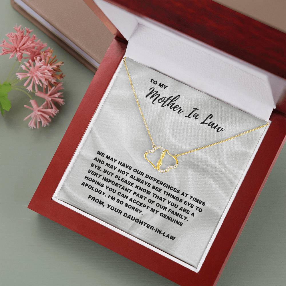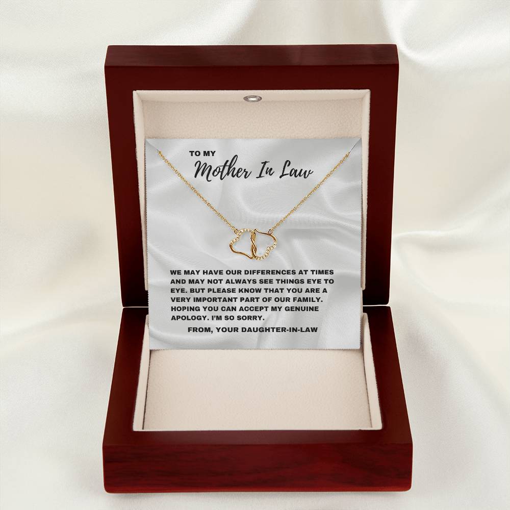 Este elegante collar de amor eterno, acompañado de una tarjeta con un mensaje sincero que dice: “A veces podemos tener nuestras diferencias”, es la manera perfecta de mostrarle a tu suegra que valoras su relación a pesar de los altibajos. Ya sea que hayan tenido desacuerdos o malentendidos, este regalo es una manera significativa de expresar tus disculpas genuinas y tu deseo de seguir adelante.