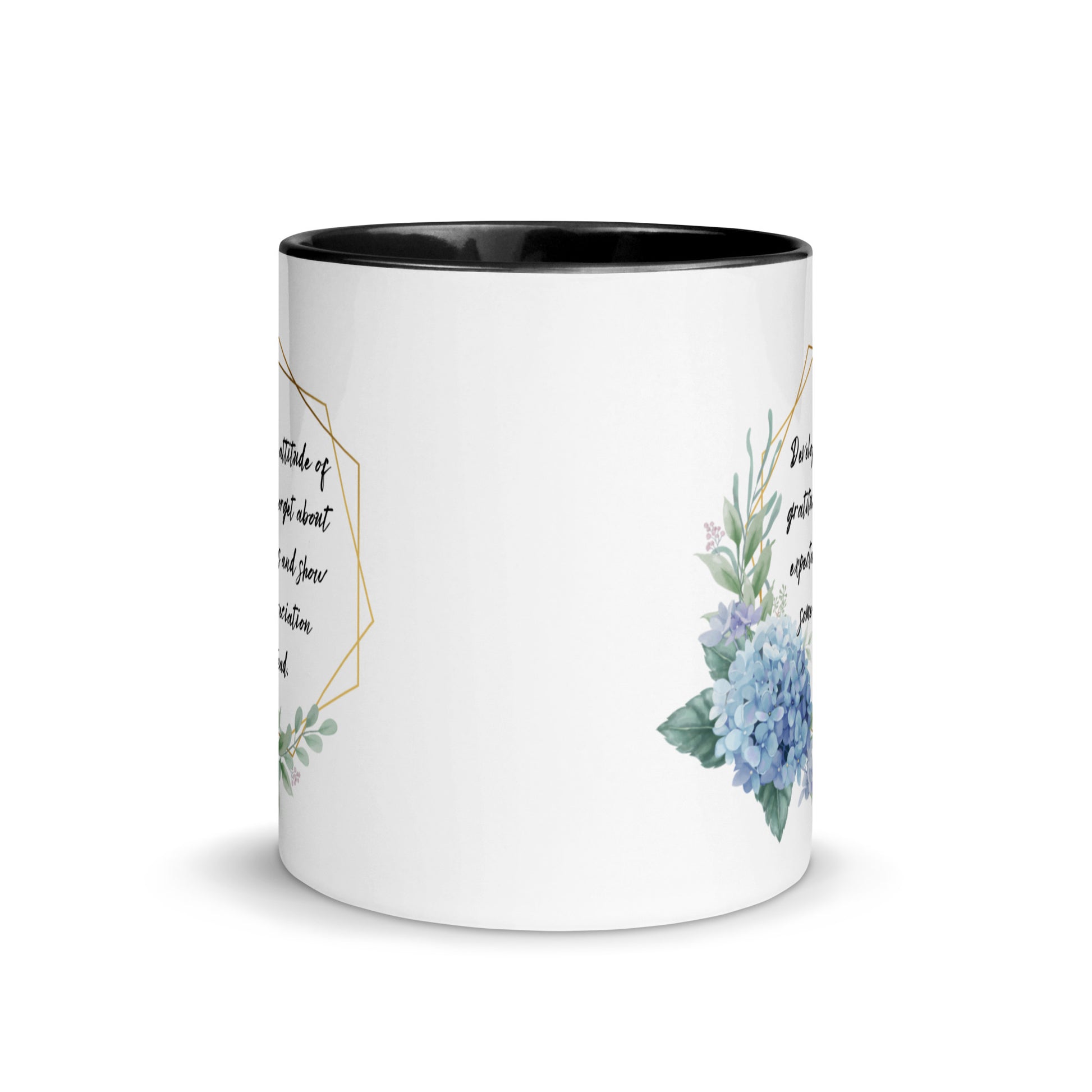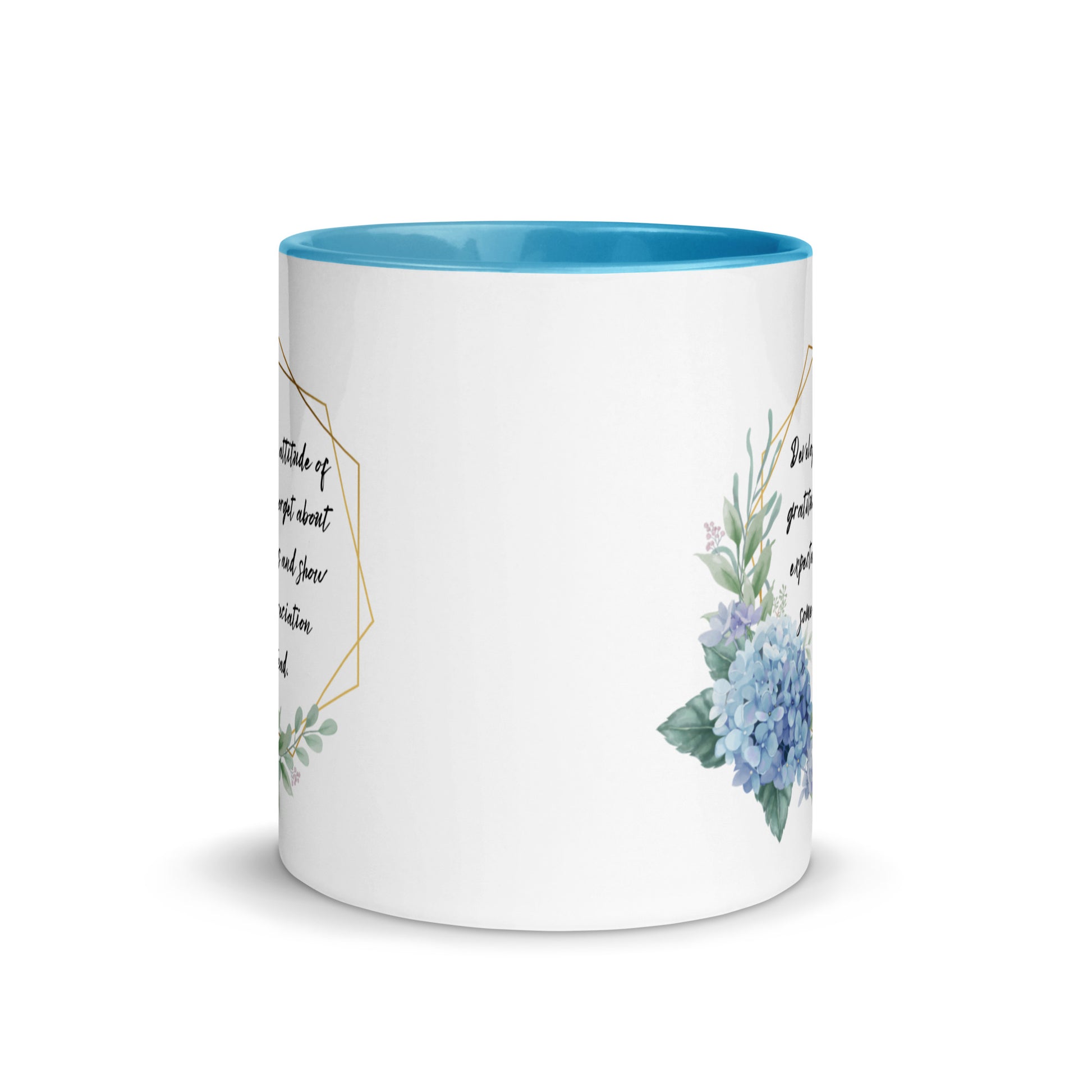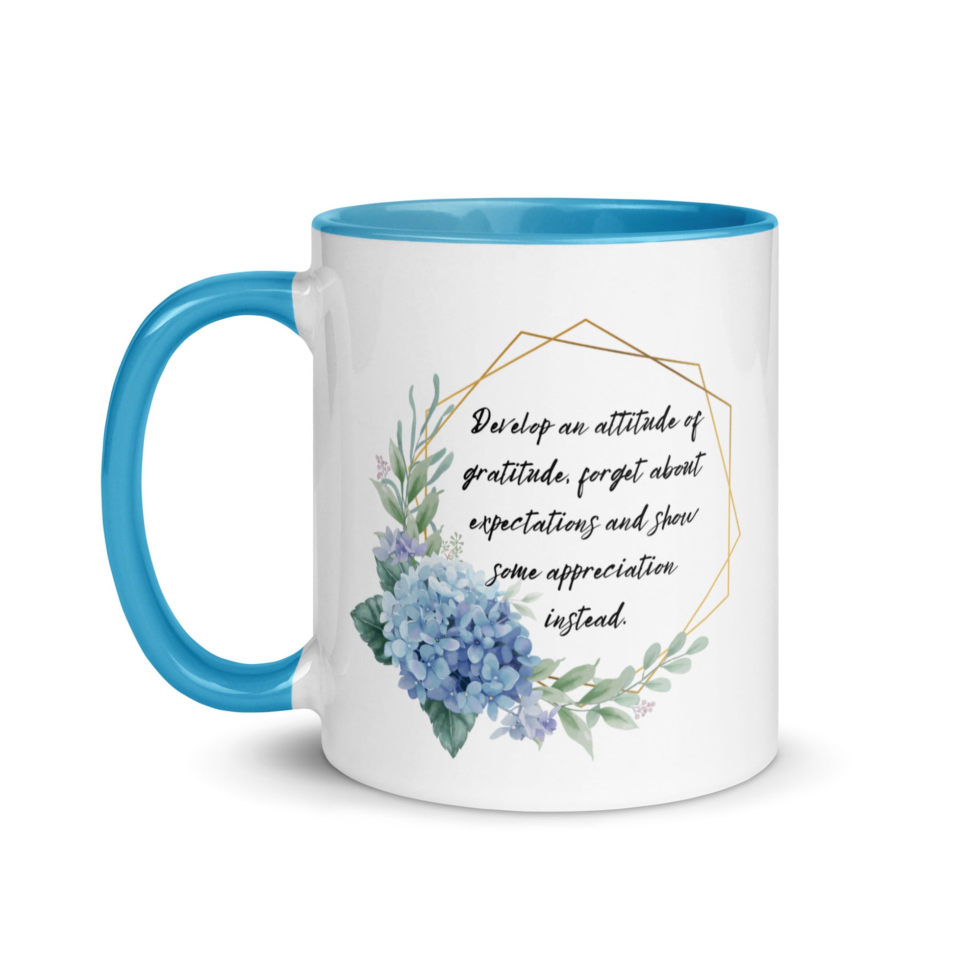 Adornada con colores vibrantes en el borde, el asa y el interior, esta taza infunde calidez y positividad a tu día. Cada sorbo es una invitación a reflexionar sobre los dones de la vida, a apreciar los pequeños y grandes momentos y a dejar de lado las expectativas poco realistas.
