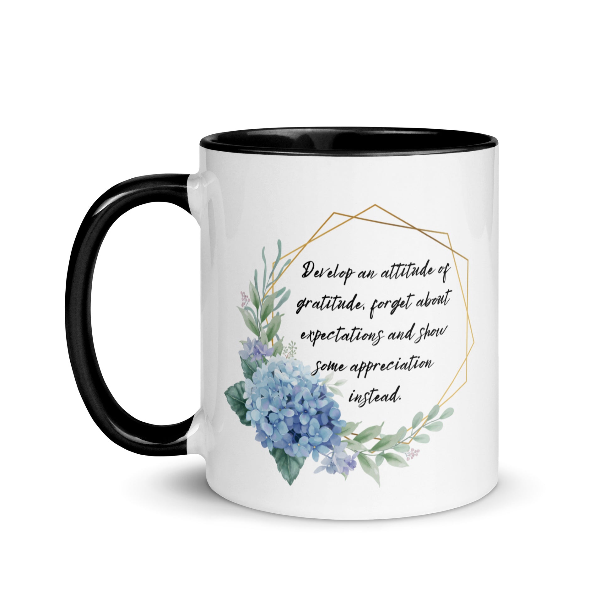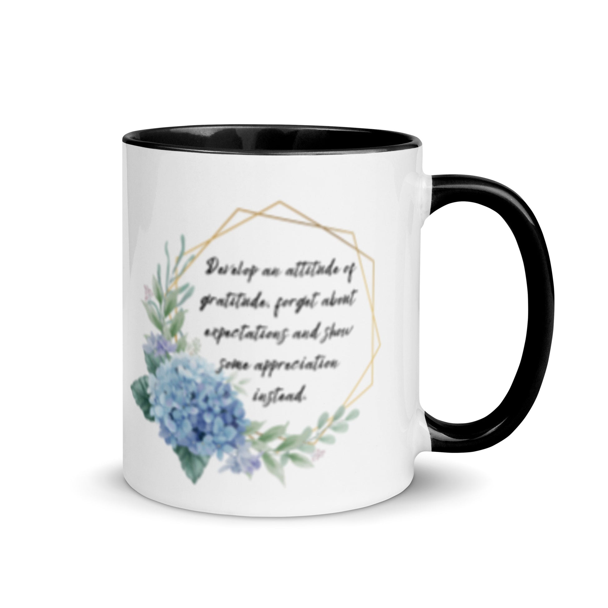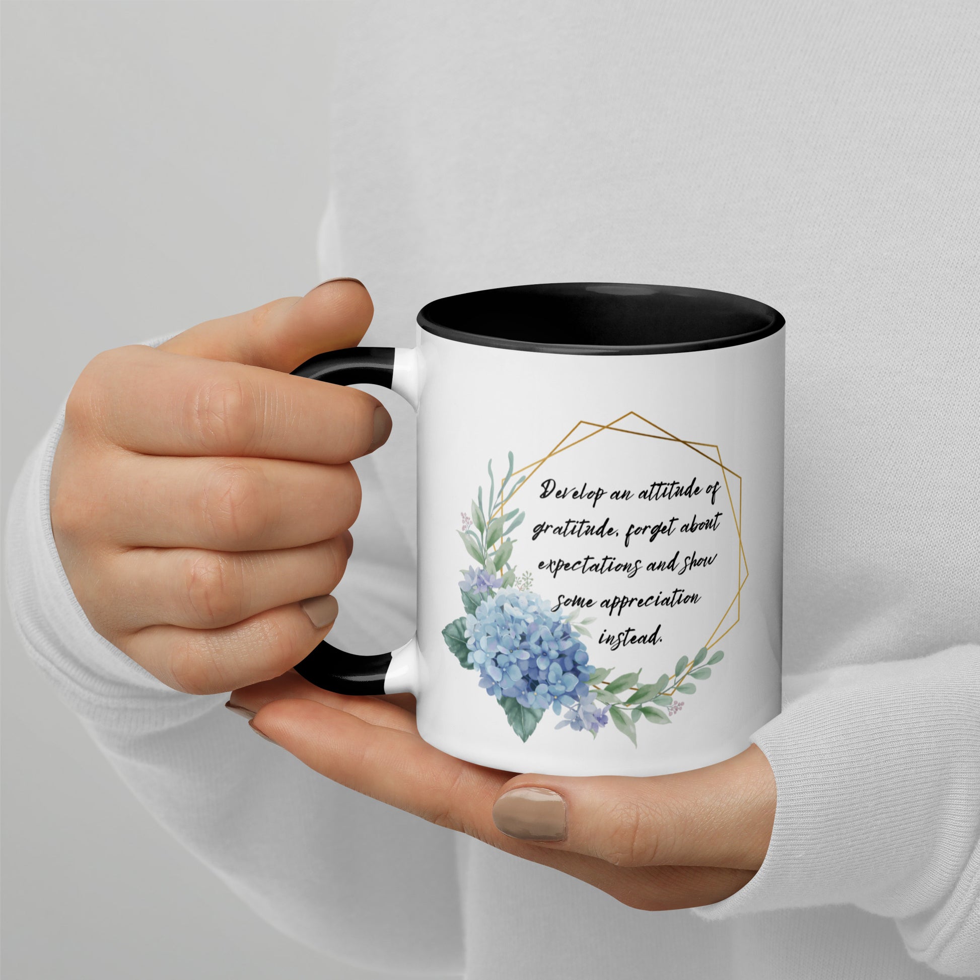 Ya sea que estés saboreando tu café o té favorito solo, compartiendo una conversación con un amigo o simplemente agregando un toque de atención plena a tu rutina diaria, esta taza se convierte en un símbolo de gratitud. Comienza tu día con una explosión de color y un sorbo de agradecimiento, o regálasela a alguien como recordatorio para apreciar la belleza de cada momento. Mejora tu experiencia diaria con la taza de café con mensaje "Gratitude Over Expectations".