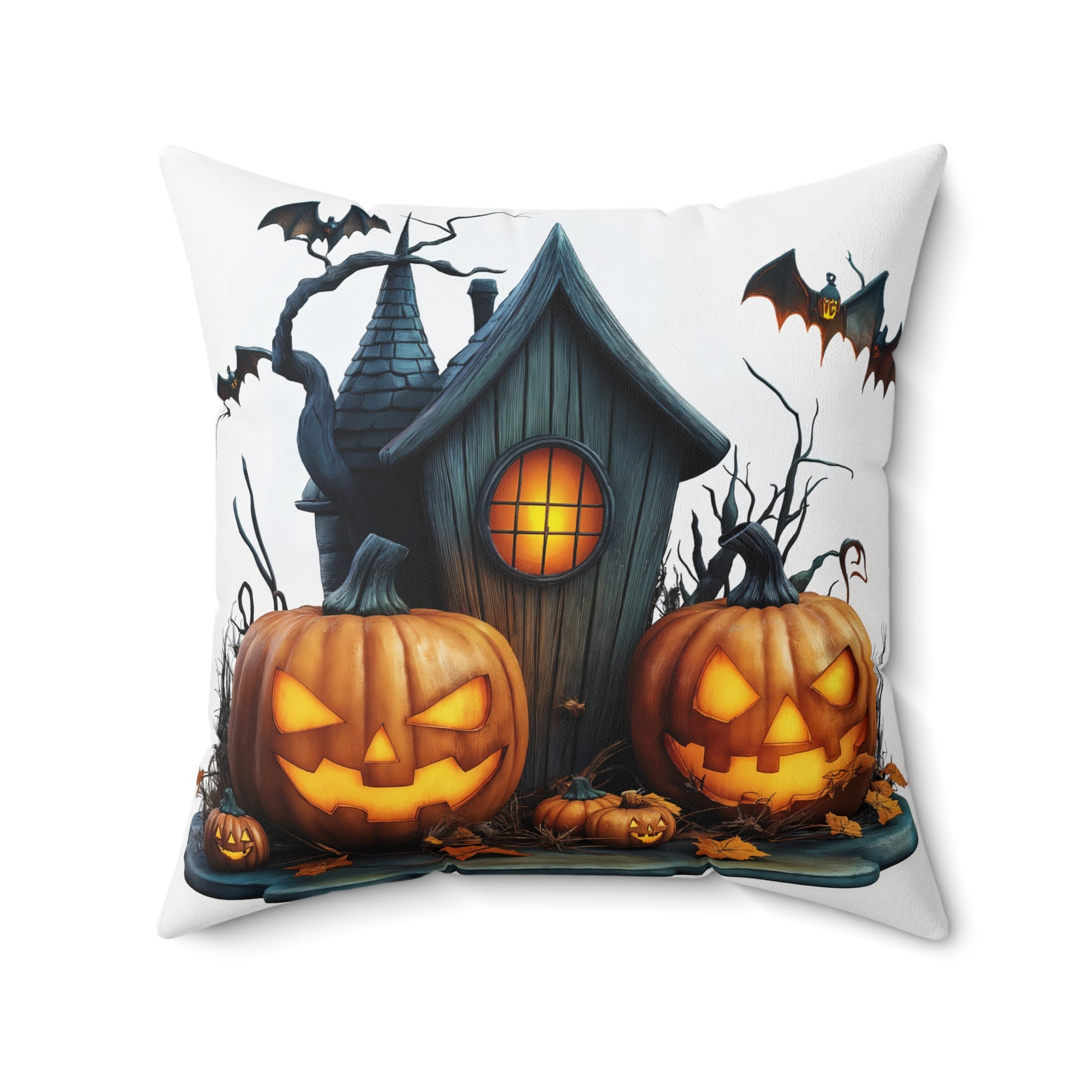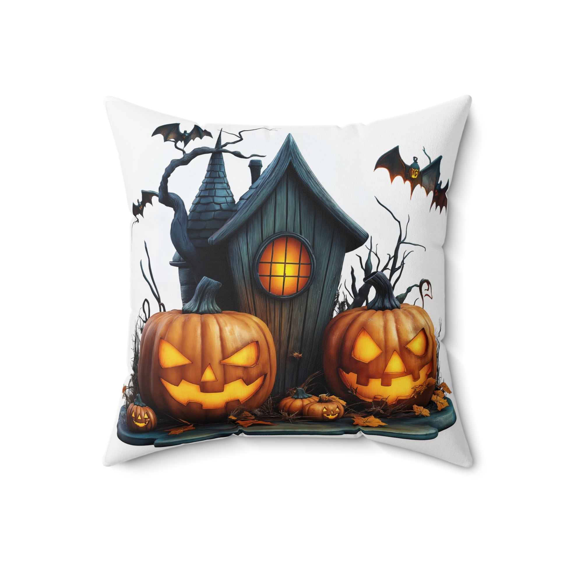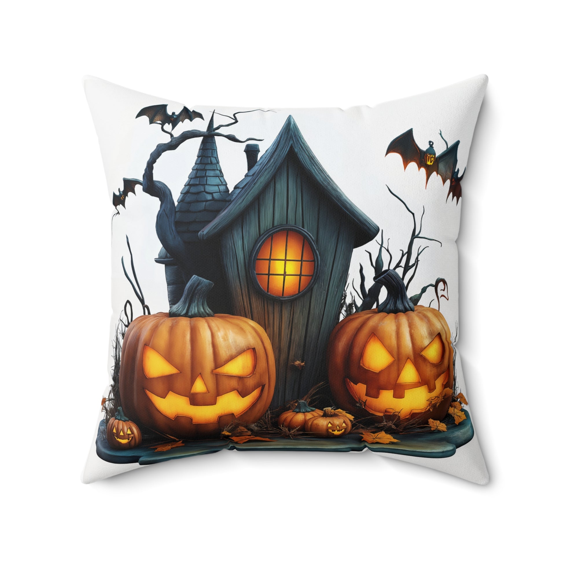Haunted House & Pumpkin Halloween Throw Pillow – Spooky Home Decor
