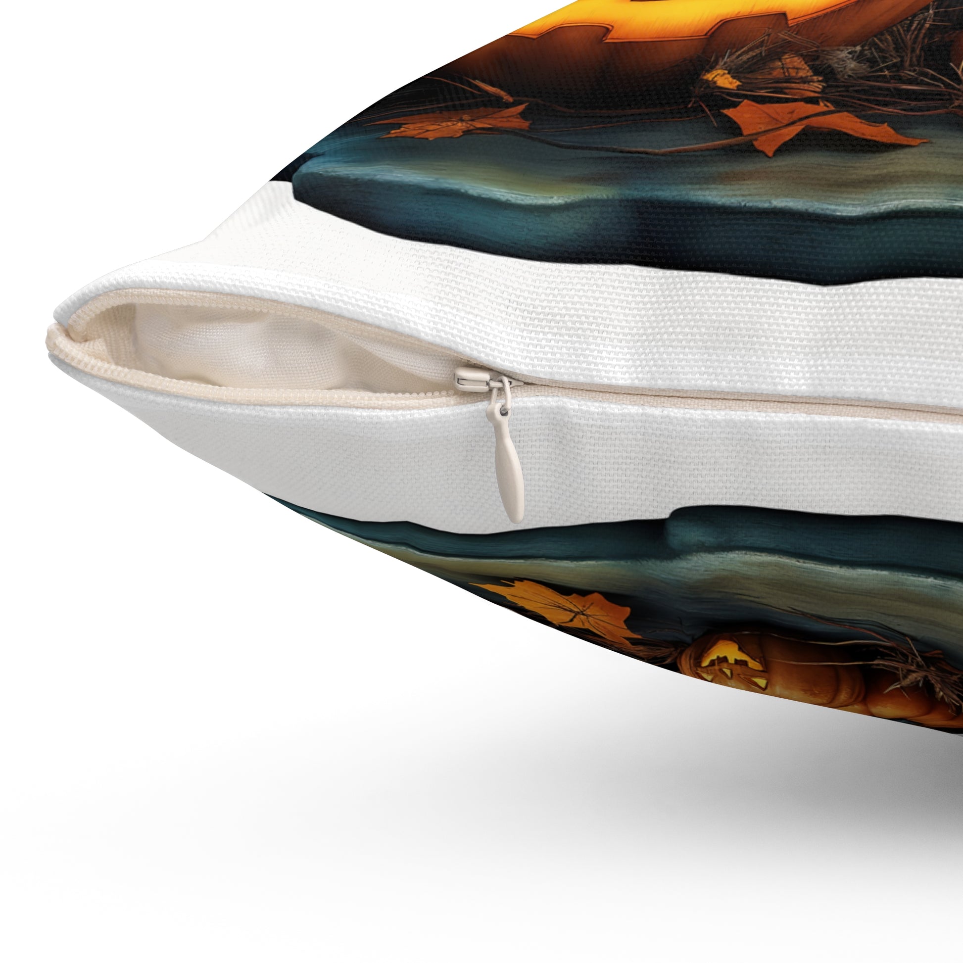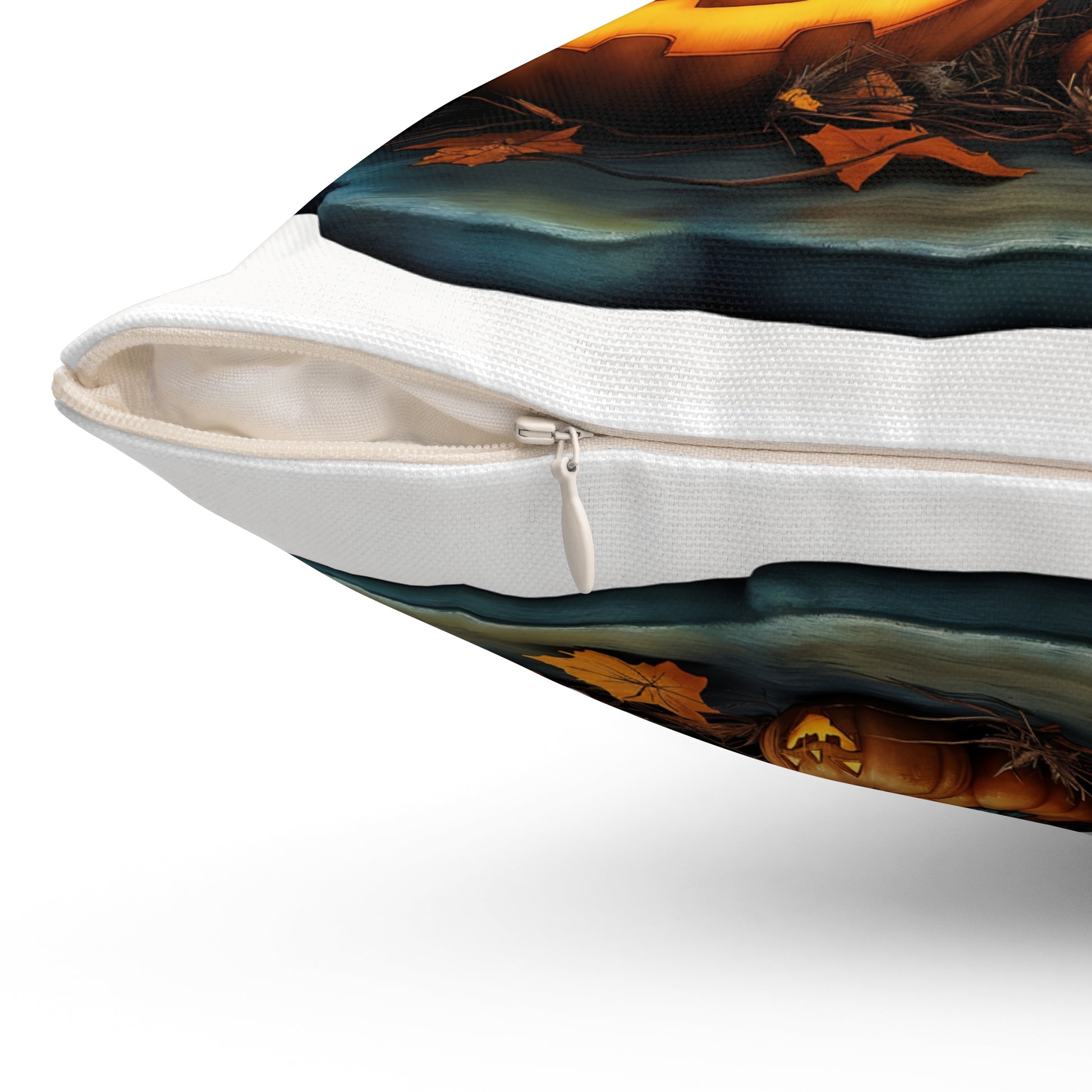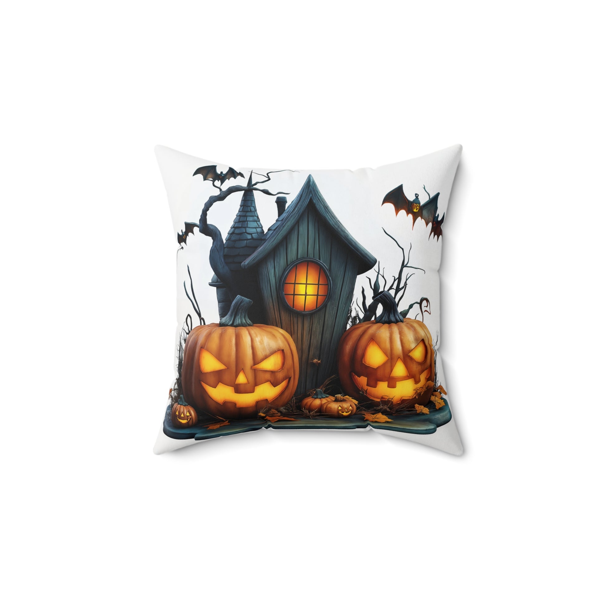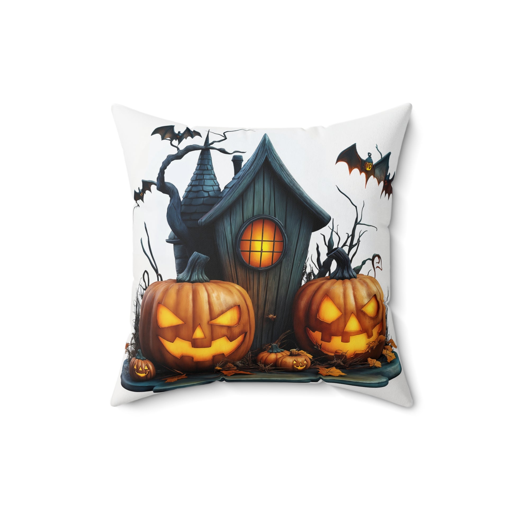 Haunted House & Pumpkin Halloween Throw Pillow – Spooky Home Decor