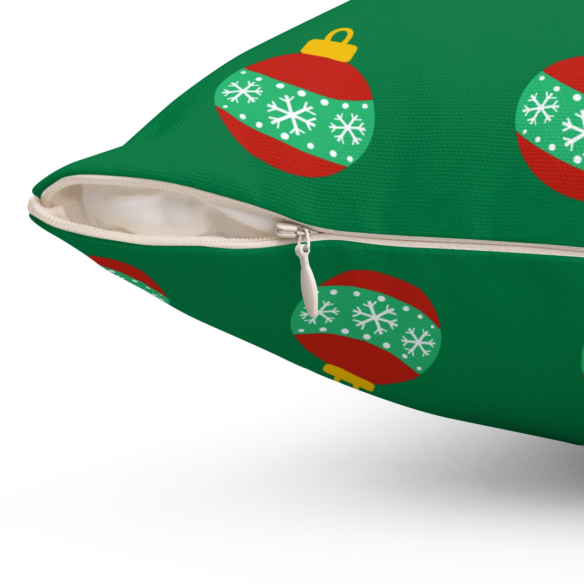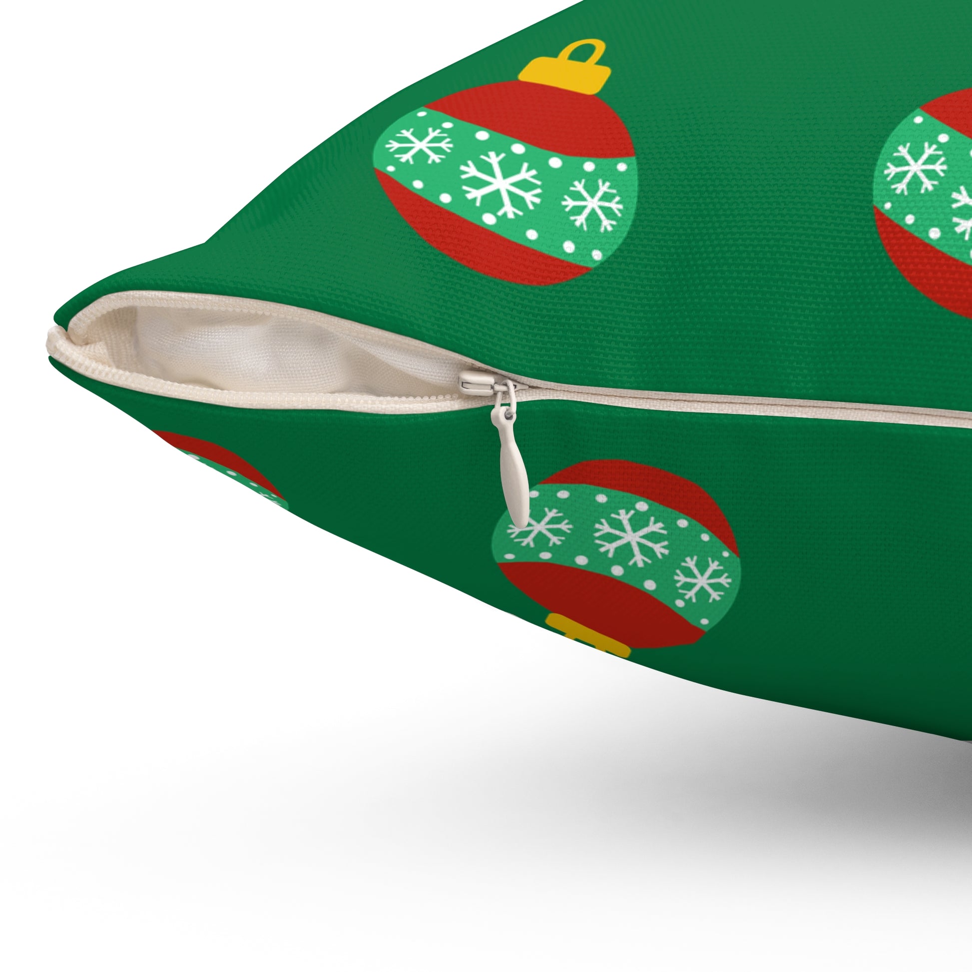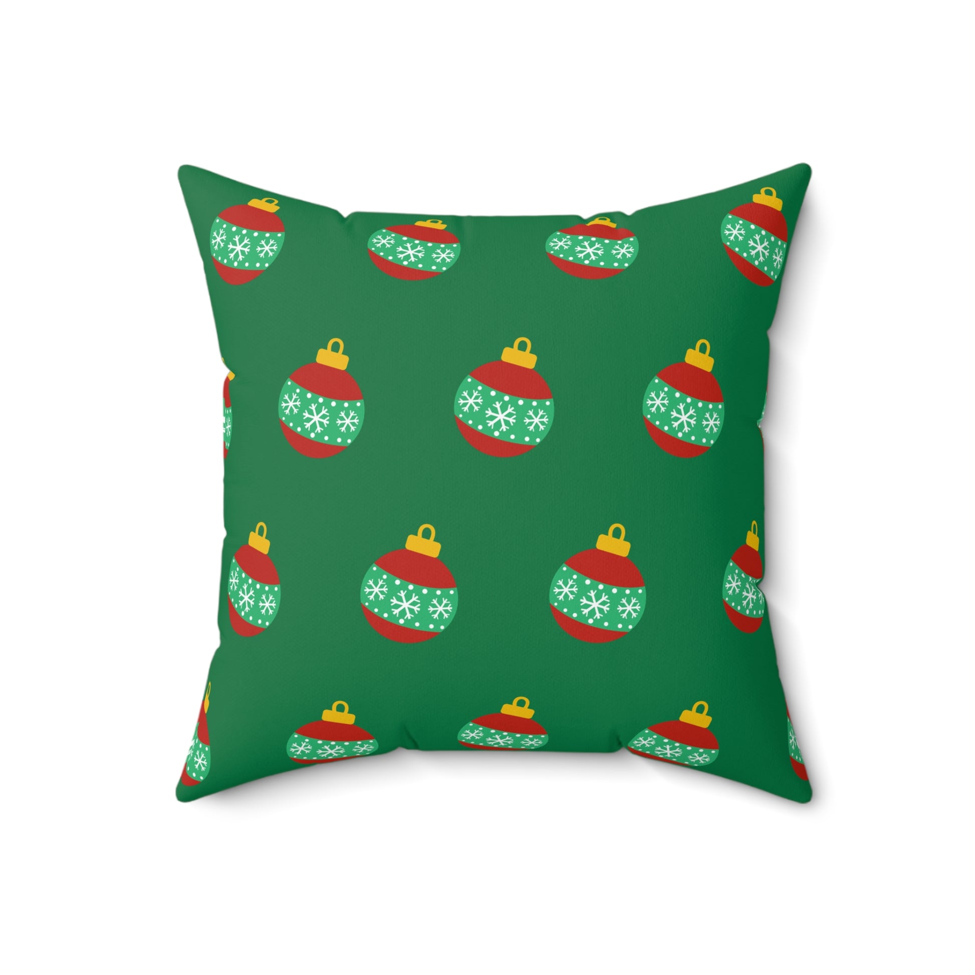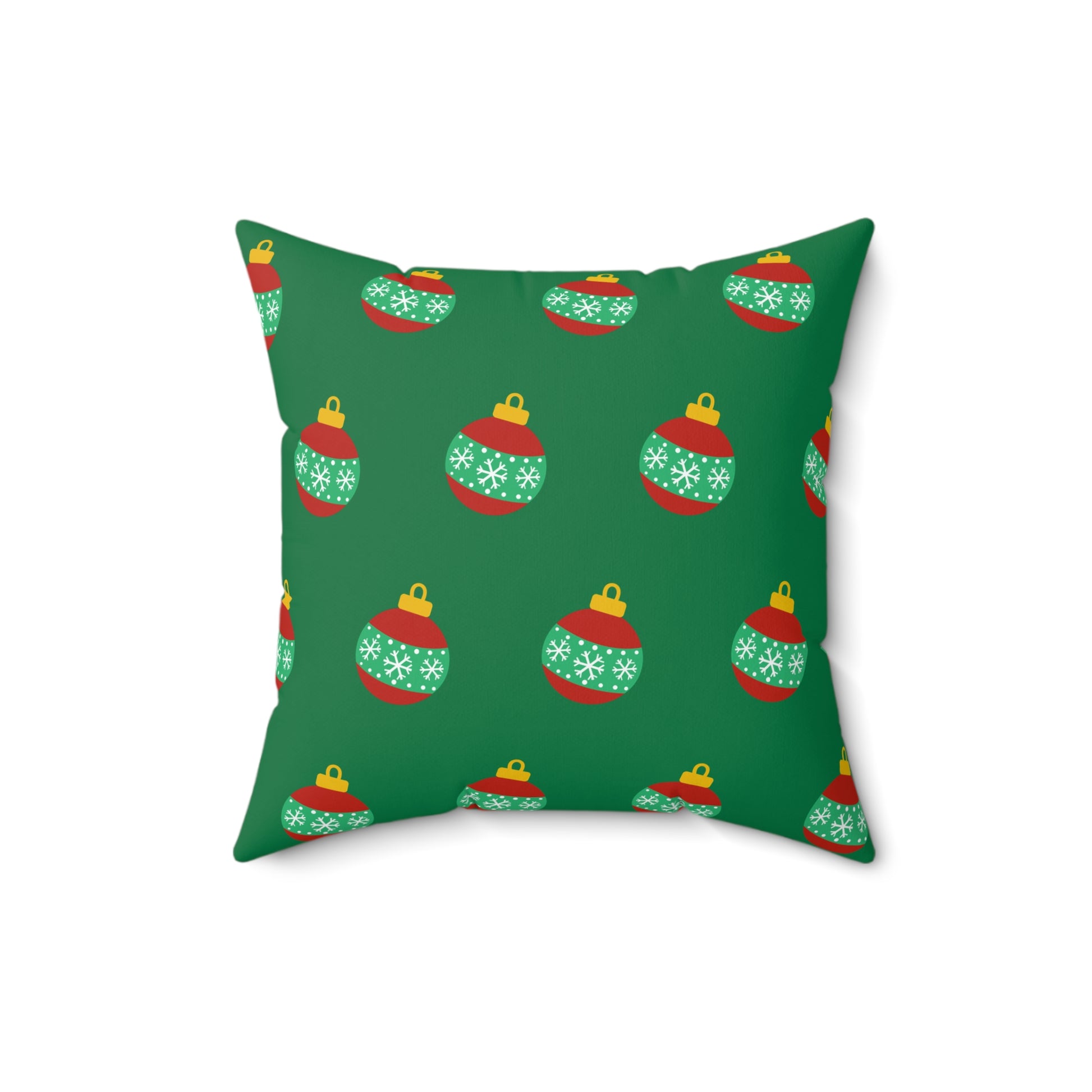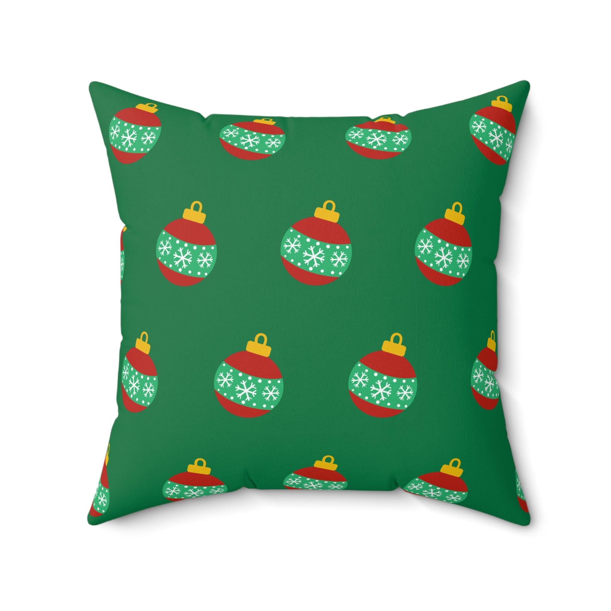 Cojín con diseño de bolas navideñas y alegría navideña: decoración festiva en rojo y verde para el hogar o la oficina