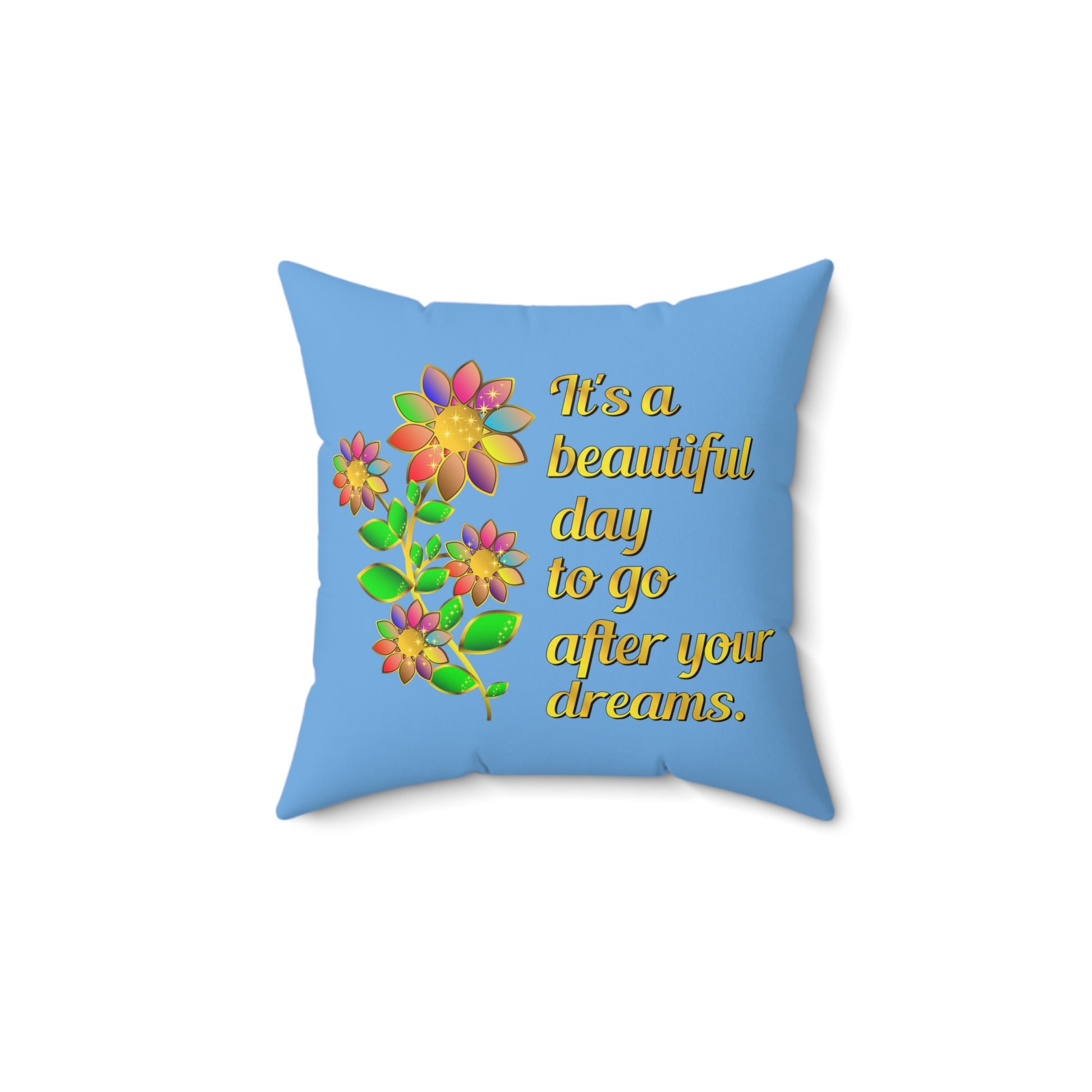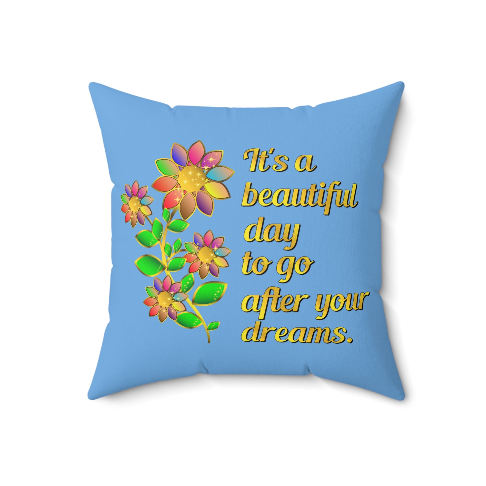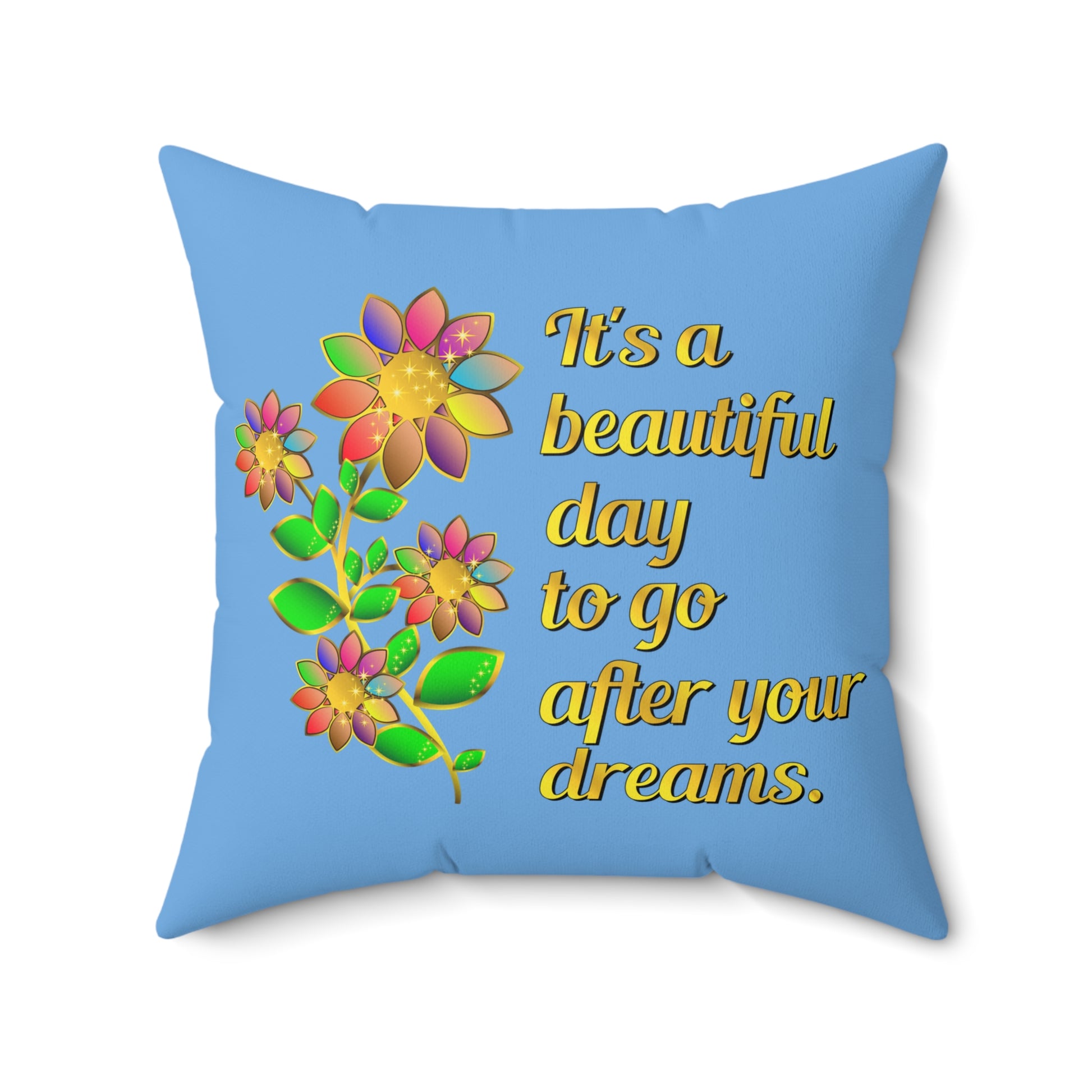 Abraza la belleza de cada día con nuestro cojín decorativo cuadrado “It's A Beautiful Day”. Este encantador cojín con estampado floral azul no solo añade un toque de elegancia inspirada en la naturaleza a tu espacio vital, sino que también transmite un mensaje conmovedor que sirve como recordatorio diario para apreciar los momentos. El diseño vibrante y la frase inspiradora lo convierten en un detalle ideal para cualquier habitación, infundiendo positividad y encanto a la decoración de tu hogar.