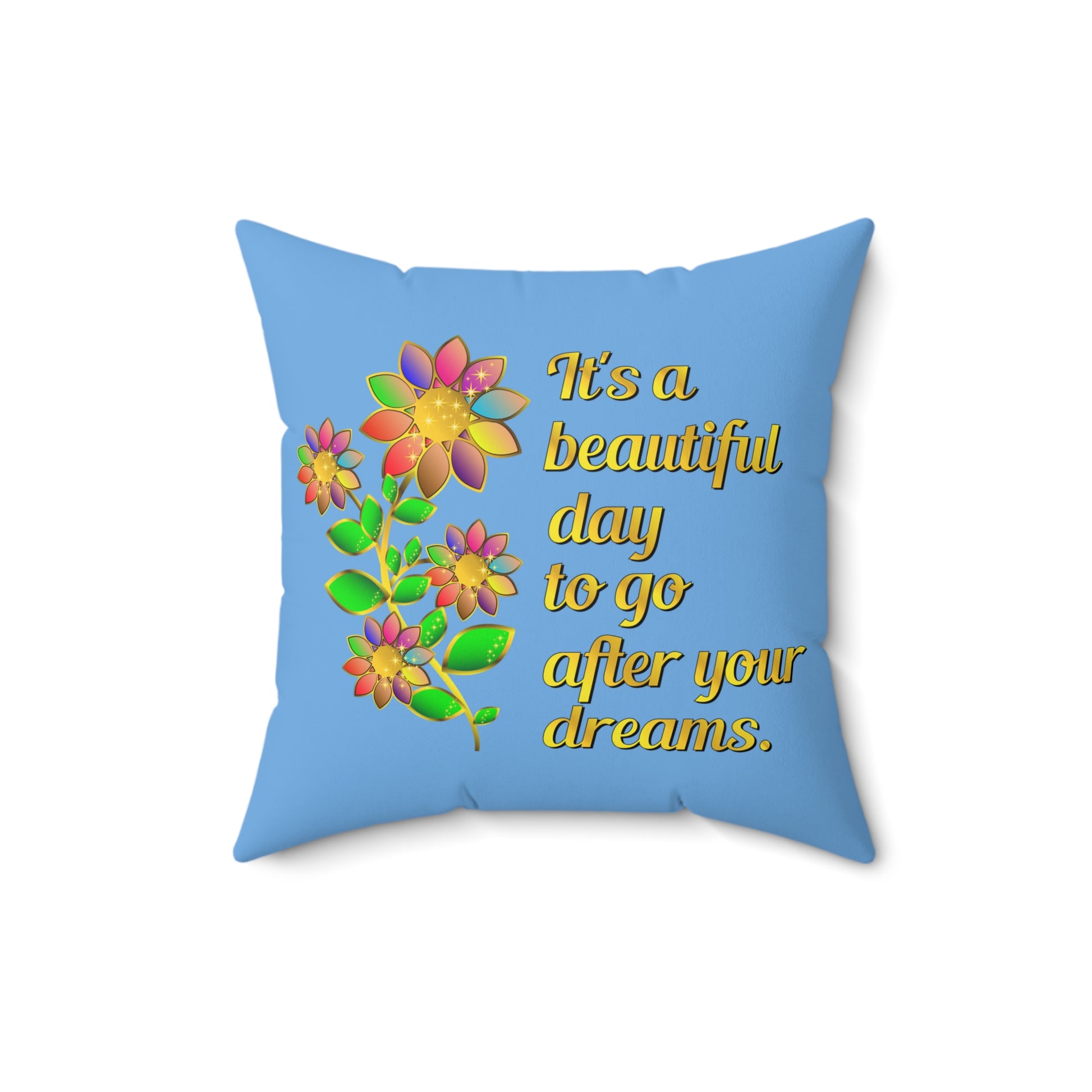 Cojín cuadrado con diseño "It's A Beautiful Day", cojín con estampado floral azul, cojines con frase, decoración floral inspiradora para habitación