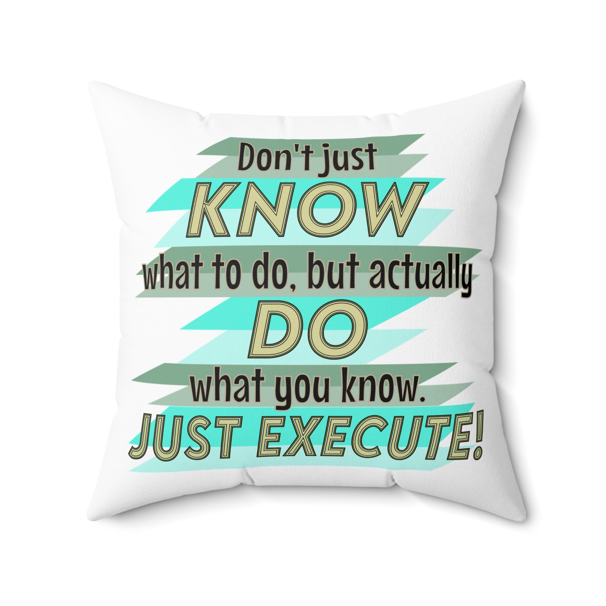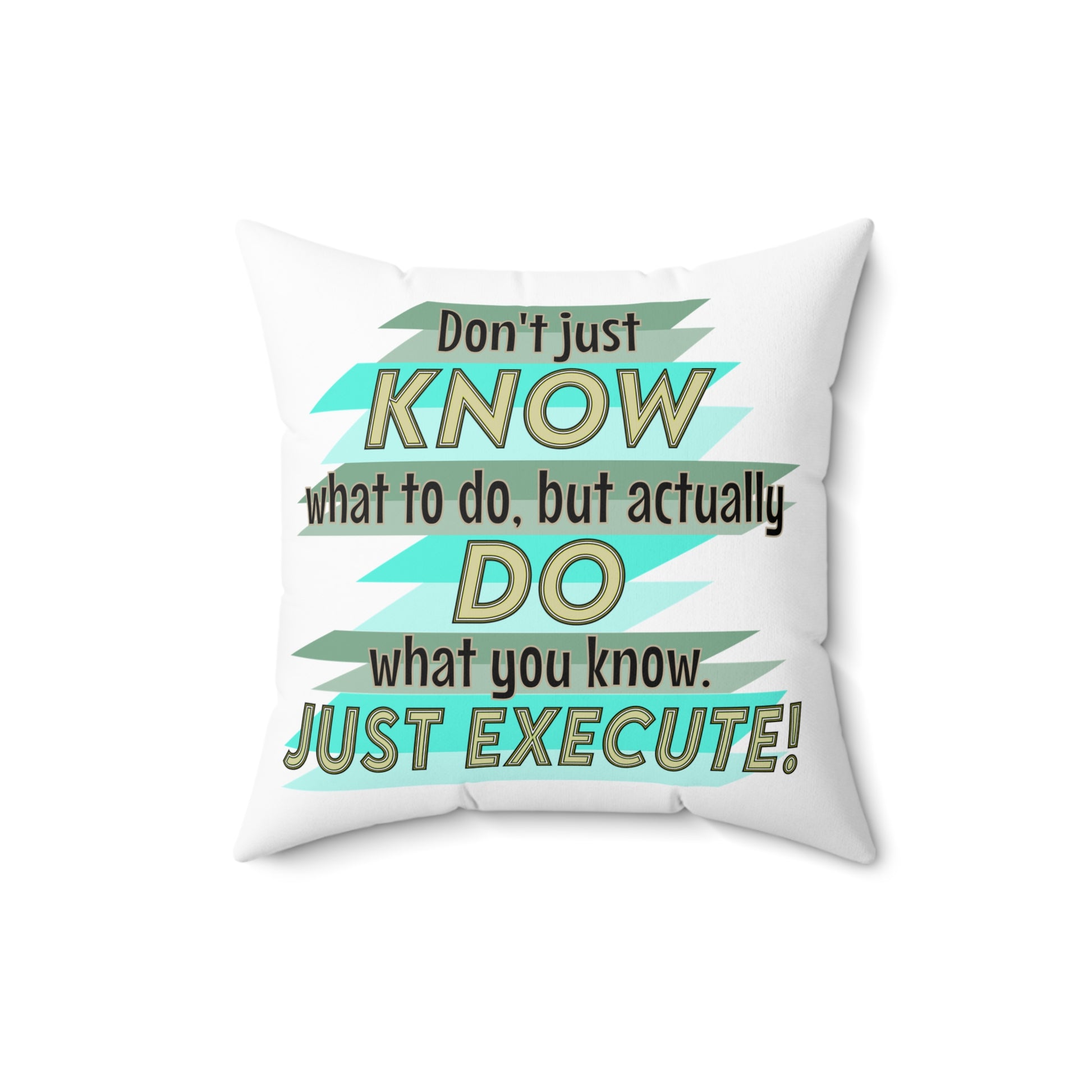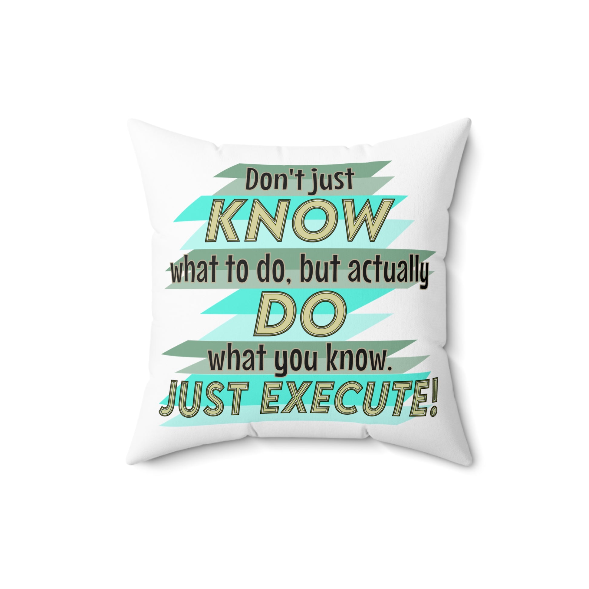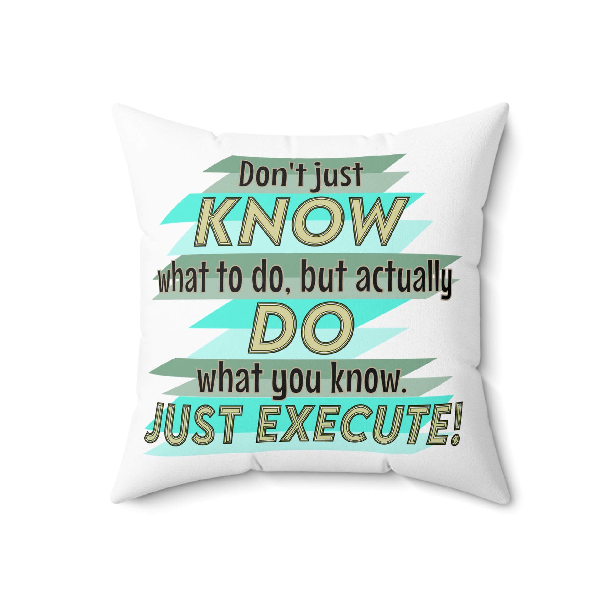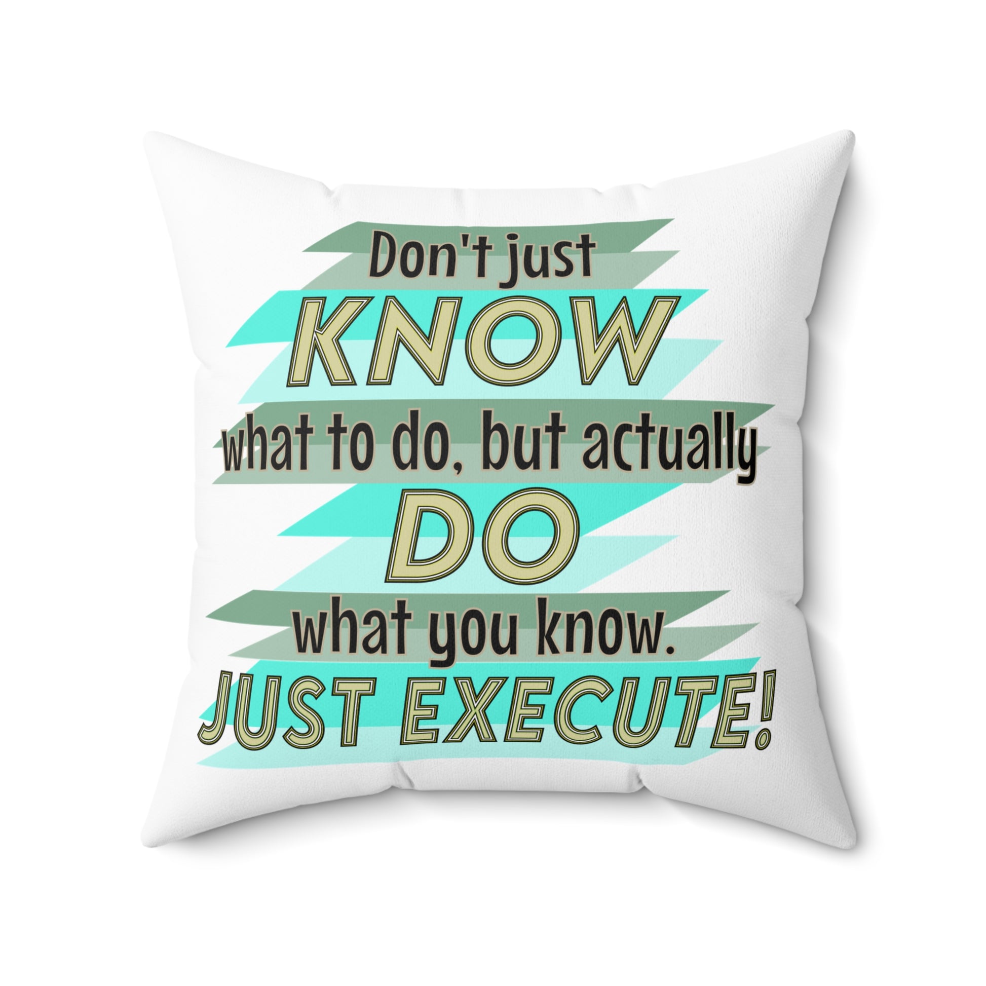 Almohada decorativa Just Execute, almohada motivacional blanca, decoración de dormitorio, almohadas cuadradas para sala de estar, dormitorio o espacios al aire libre