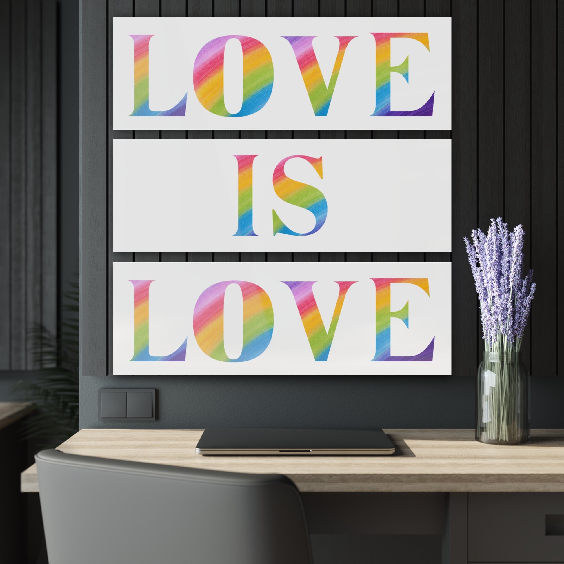 Presentamos el juego de impresiones acrílicas de 3 piezas “Lively Love is Love”: convierte tu arte en una decoración vibrante para el hogar. Este juego incluye tres piezas de 36″ x 12″ con un sistema de colgado con grapas francesas fácil de instalar. Estas impresiones, fabricadas con acrílico duradero de grado A de 0,25″ de espesor, ofrecen una belleza duradera y se incluyen tornillos para colgar.