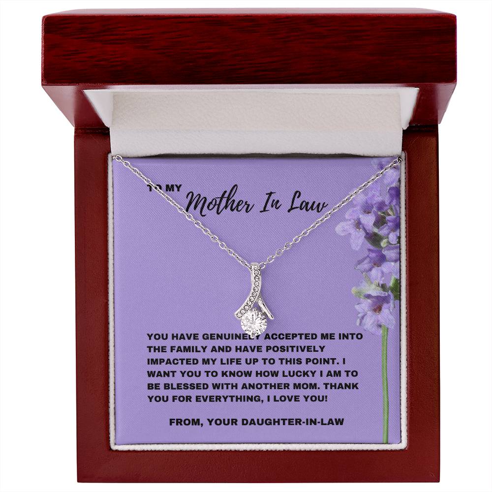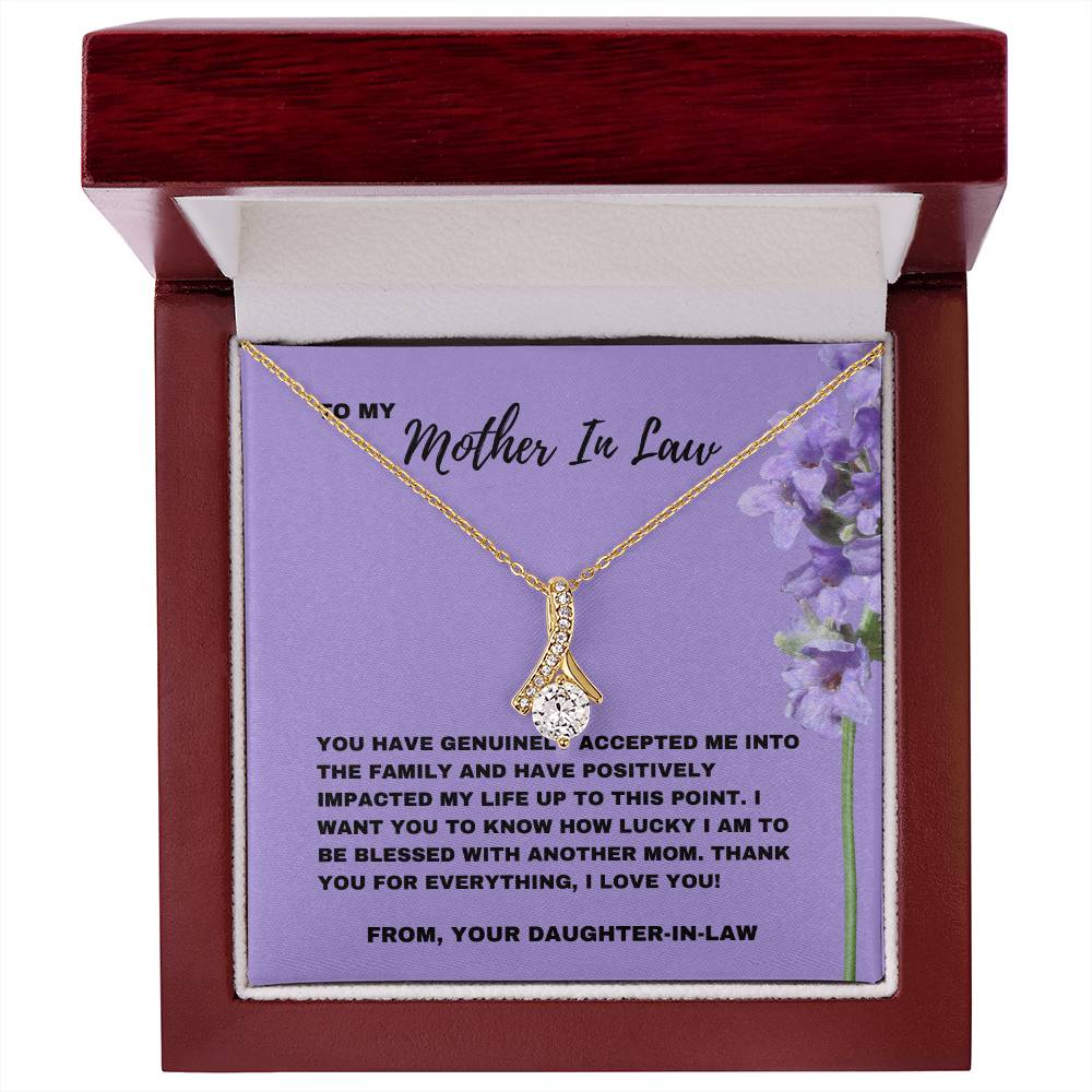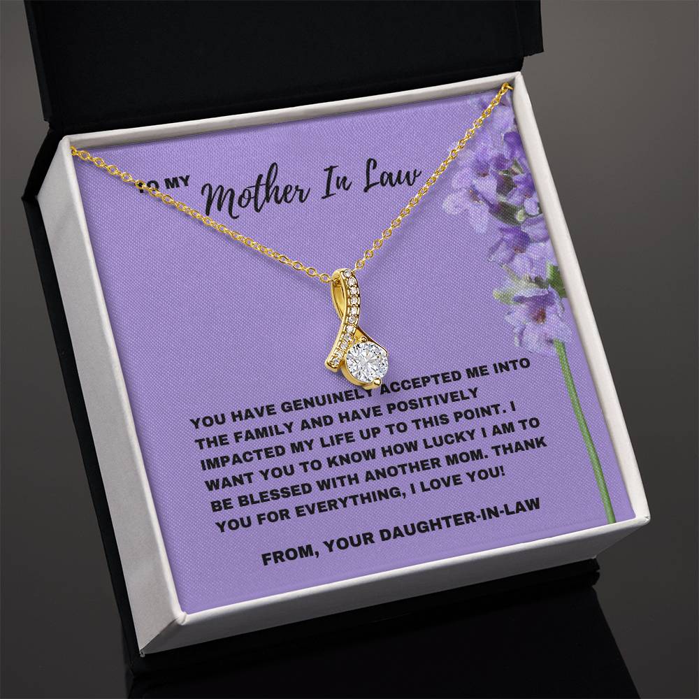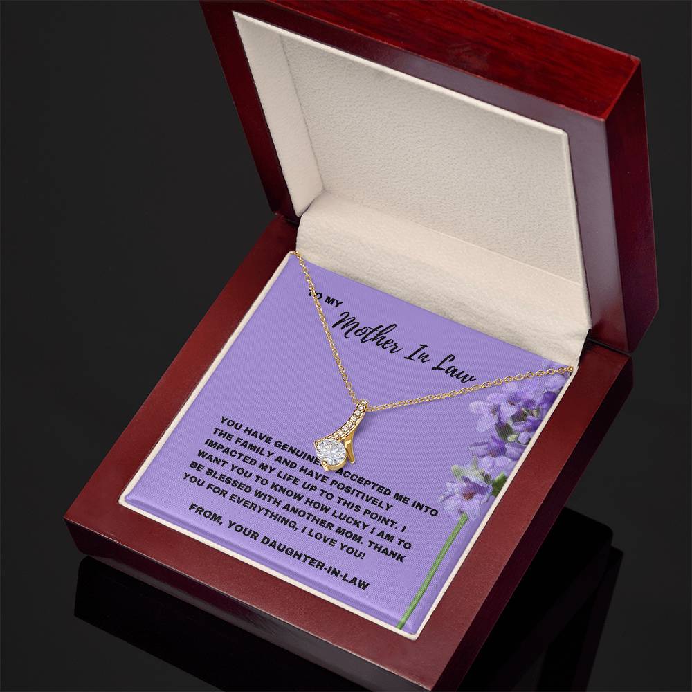 Celebre el día en que su suegra le dio la bienvenida a la familia con este elegante collar Alluring Beauty. Este regalo, acompañado de una tarjeta con un mensaje sincero que dice: “Me has aceptado genuinamente en la familia”, es una hermosa manera de demostrarle su agradecimiento por el impacto positivo que ha tenido en su vida.