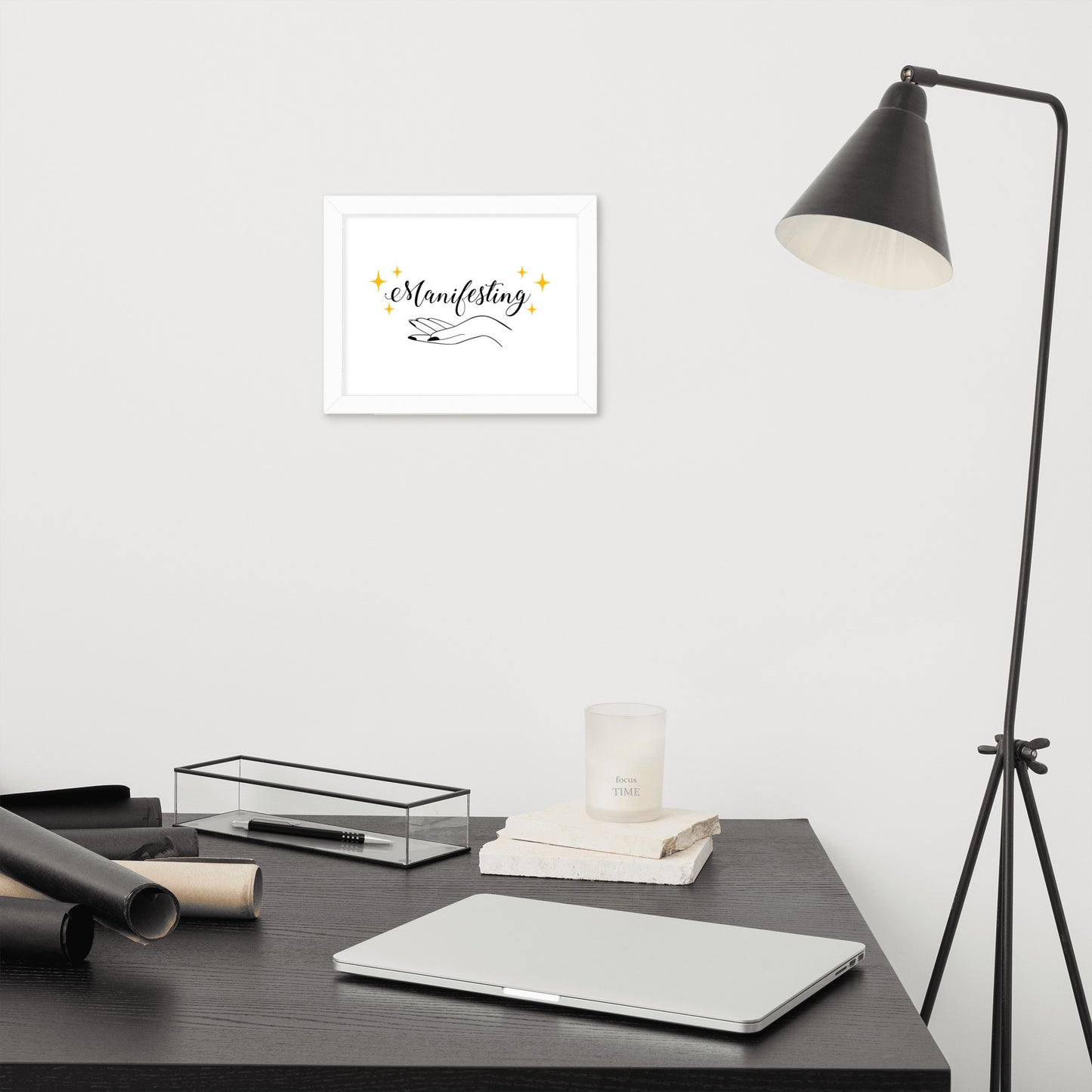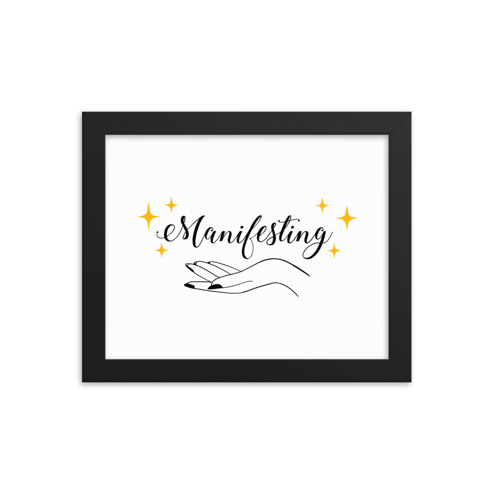 Realza tu espacio con nuestro póster enmarcado “Manos de manifestación”. Esta llamativa pieza combina un mensaje inspirador de “Manifestación” con una elegante imagen de una mano, que transmite una poderosa afirmación. Impresa en papel mate duradero y enmarcada en madera negra mate ecológica, combina estilo y sustancia.