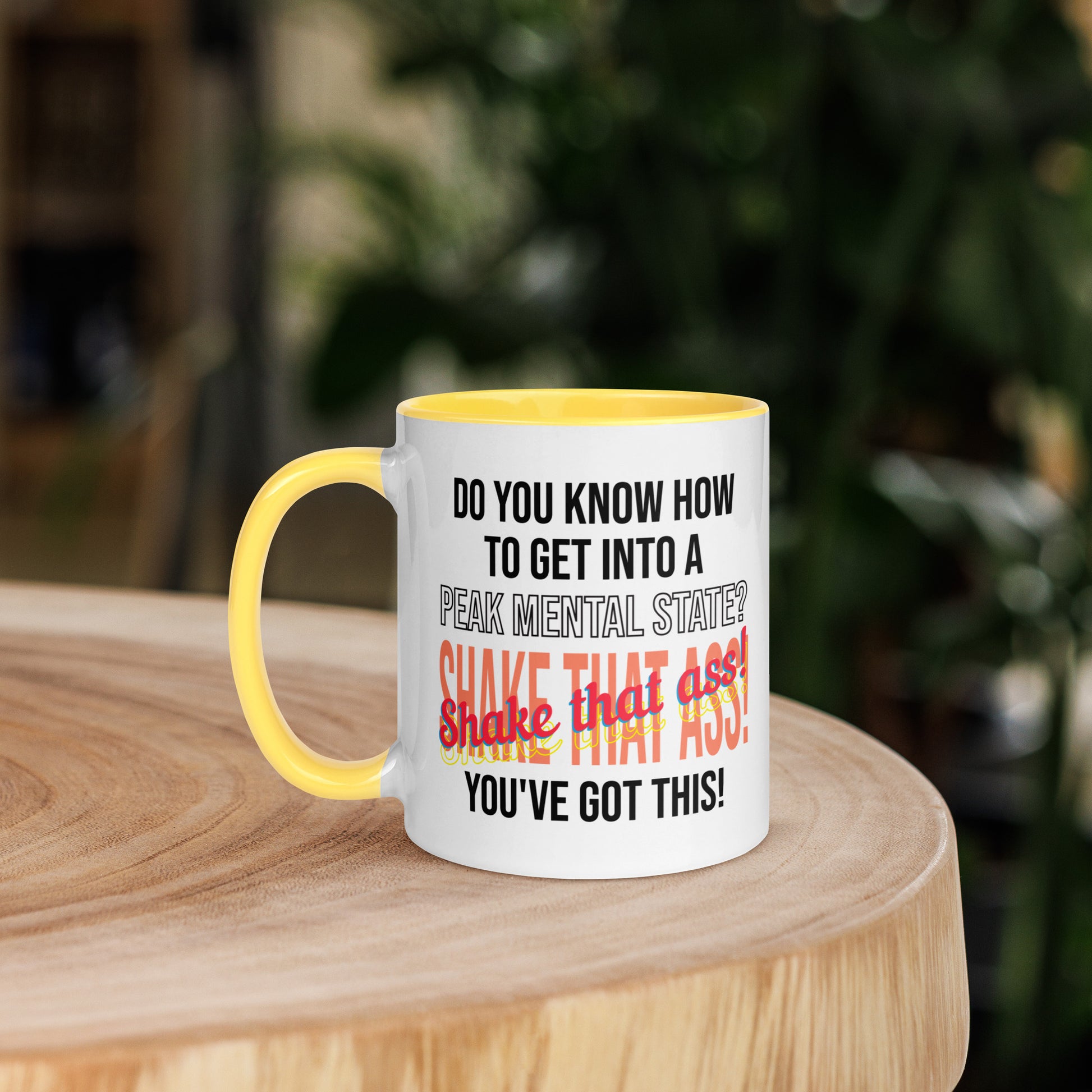 Mejora tu rutina diaria de café o té con nuestra taza de café “Mental State Motivator: Shake, Believe, Succeed”. Esta obra maestra de cerámica no solo agrega una explosión vibrante de color a tus mañanas, sino que también sirve como un poderoso recordatorio para alcanzar tu estado mental óptimo. Con el mensaje inspirador “¿Sabes cómo alcanzar un estado mental óptimo? ¡Mueve ese trasero! ¡Tú puedes!” impreso en negrita en la taza, comenzarás tu día con una dosis de motivación y un toque de humor. Deja que esta taza sea tu compañera diaria mientras emprendes el camino hacia el éxito, un sorbo a la vez. No es solo una taza; es una mentalidad. ¡Prepárate para agitar, creer y triunfar!