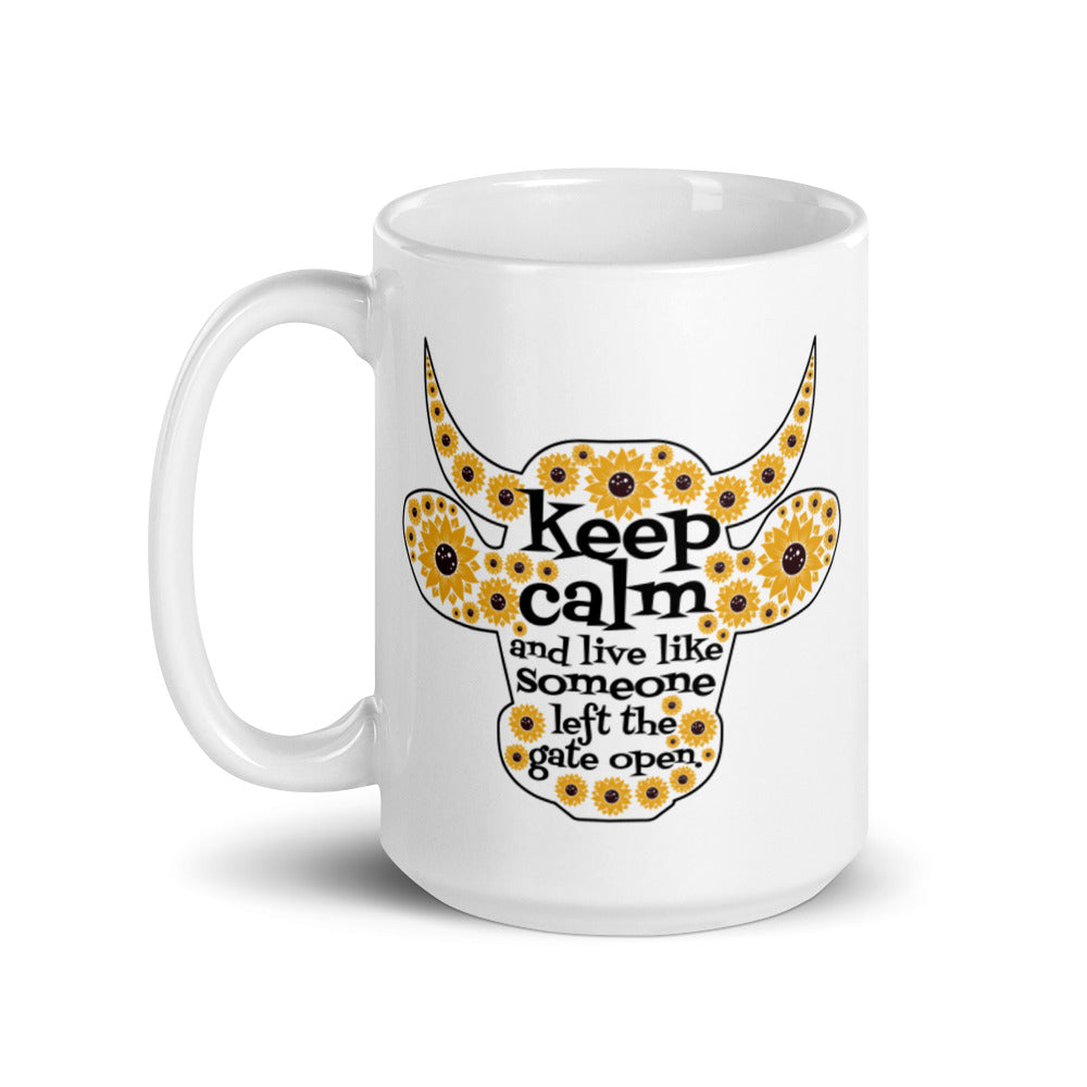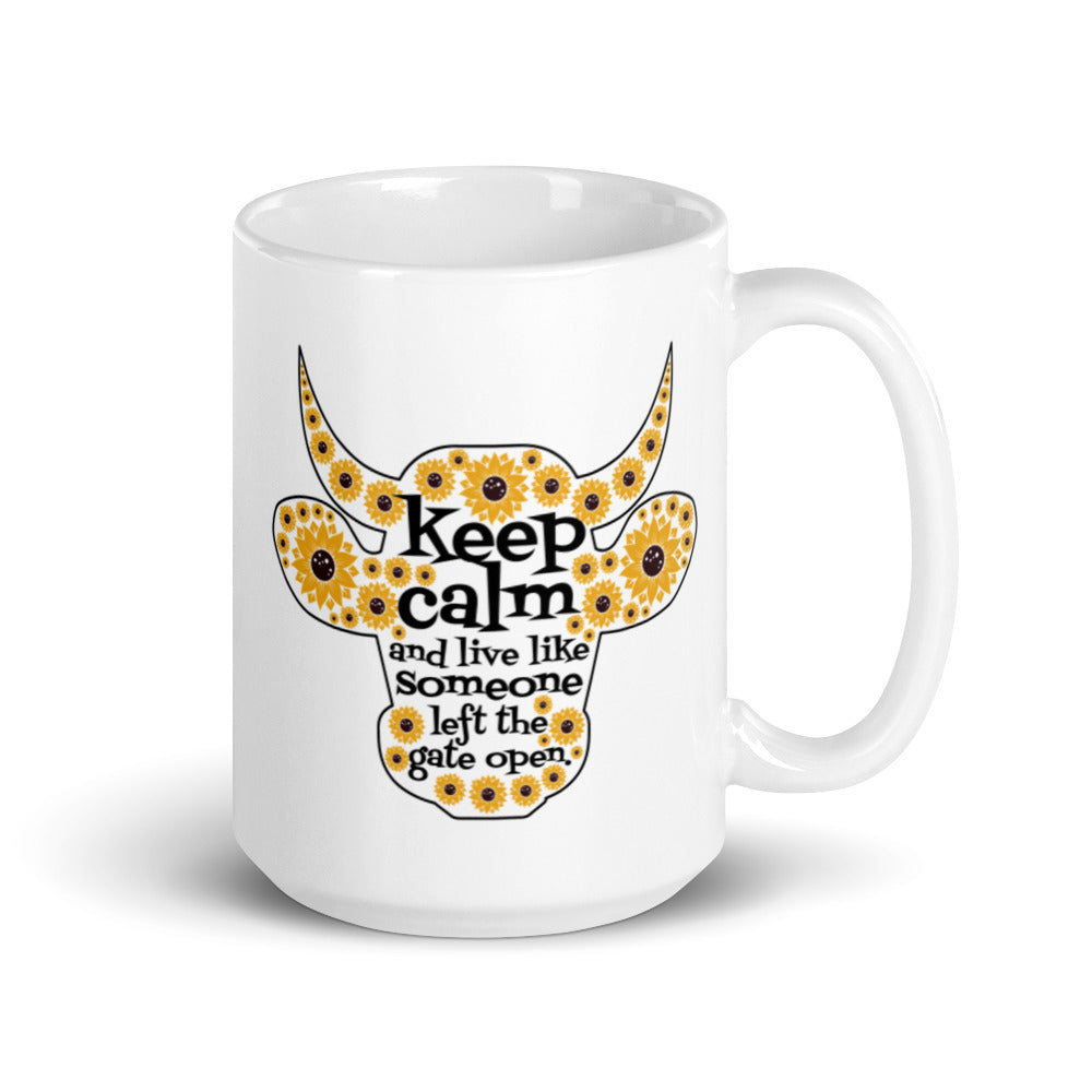 Presentamos la taza de café “Moo-tivational Gatekeeper”, una conmovedora compañera diaria. Con su diseño de cabeza de vaca y el mensaje oculto “Keep calm and live like someone left the gate open” (Mantén la calma y vive como si alguien hubiera dejado la puerta abierta), esta taza agrega fantasía e inspiración a tu café o té matutino. Es una taza atemporal y versátil que calienta corazones e inspira sonrisas.