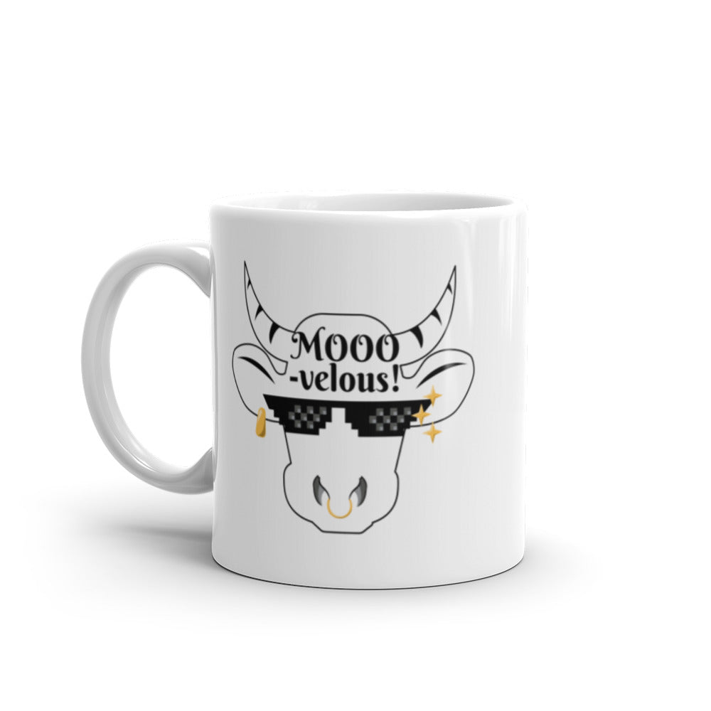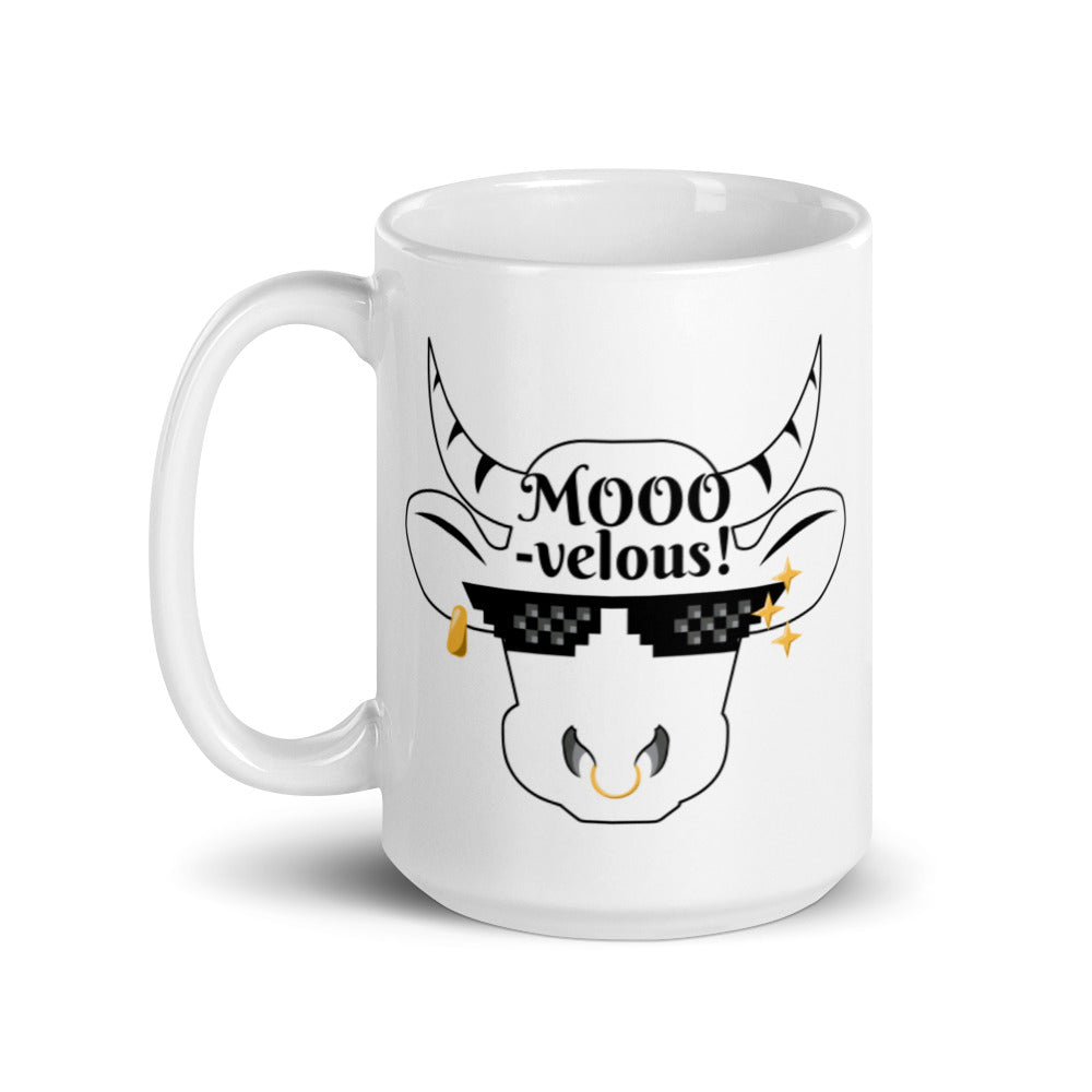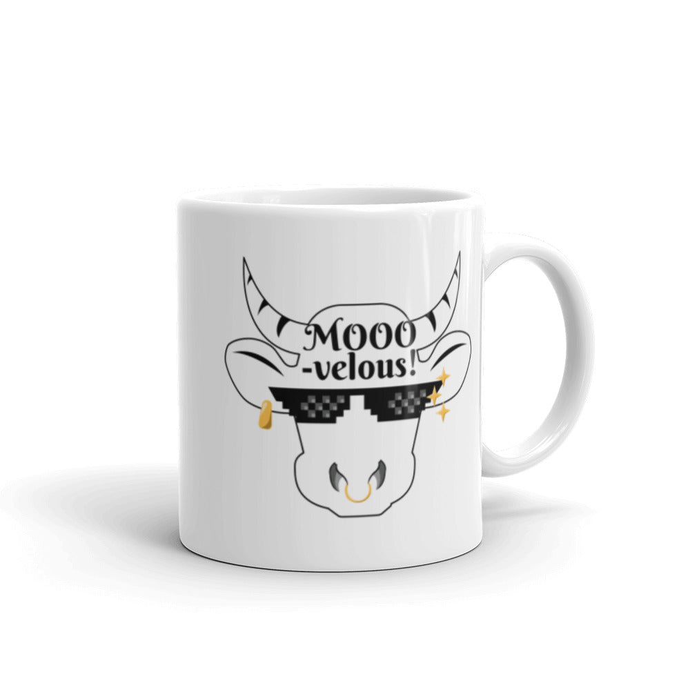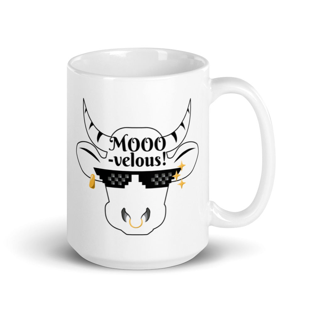 Eleve el nivel de sus bebidas con nuestra taza de café blanca con cabeza de vaca MooVelous. Perfecta para cualquier bebida, es apta para microondas y lavavajillas.