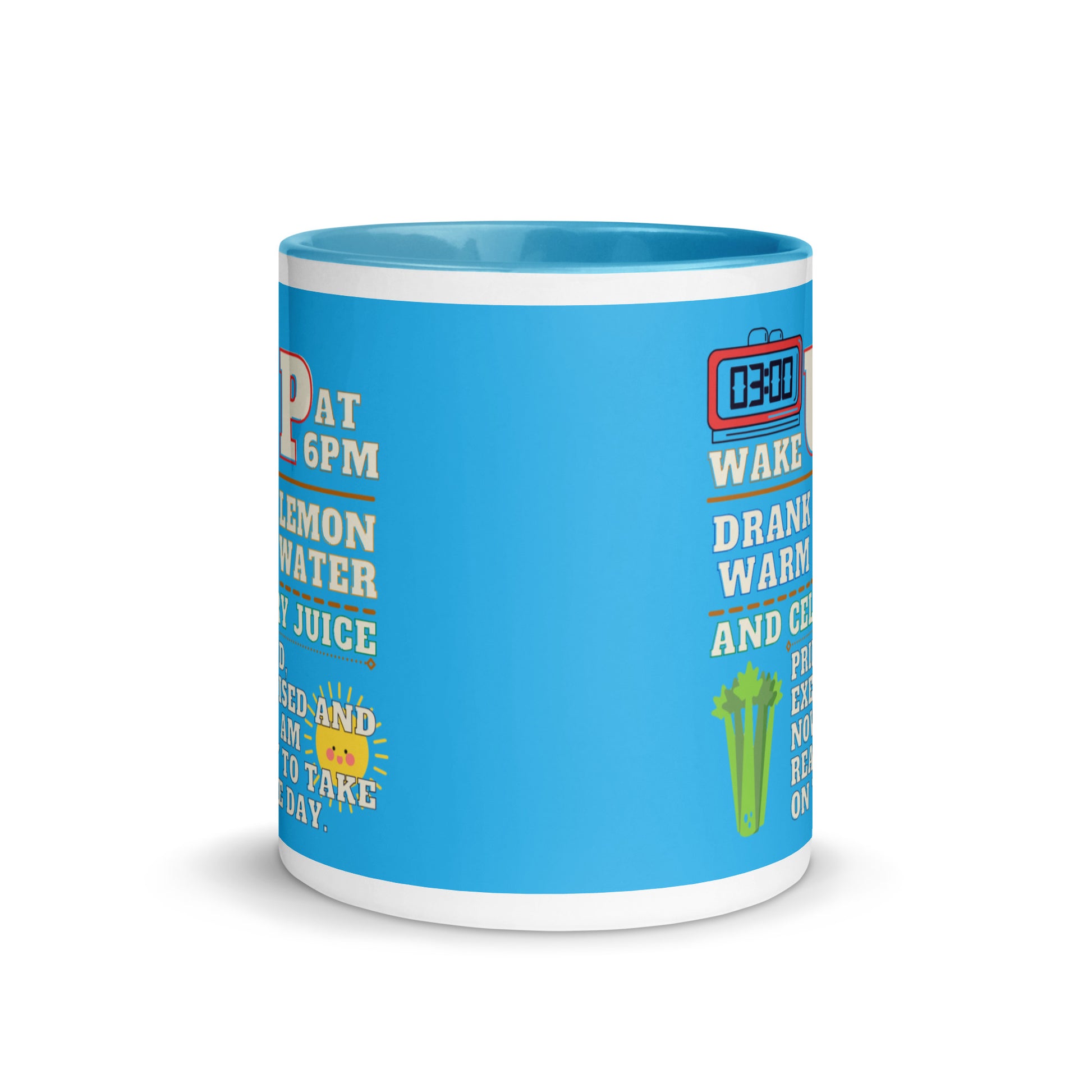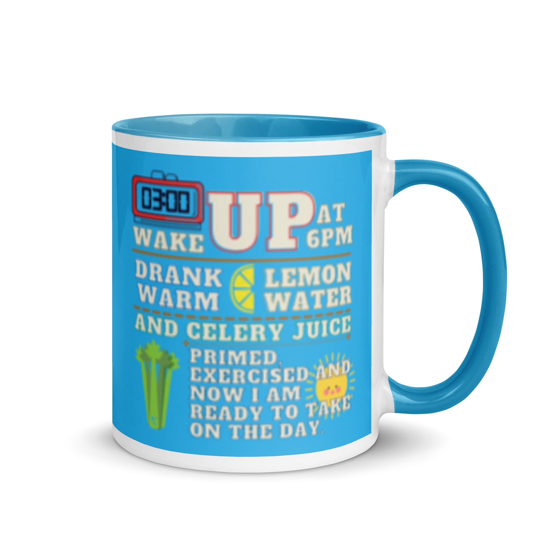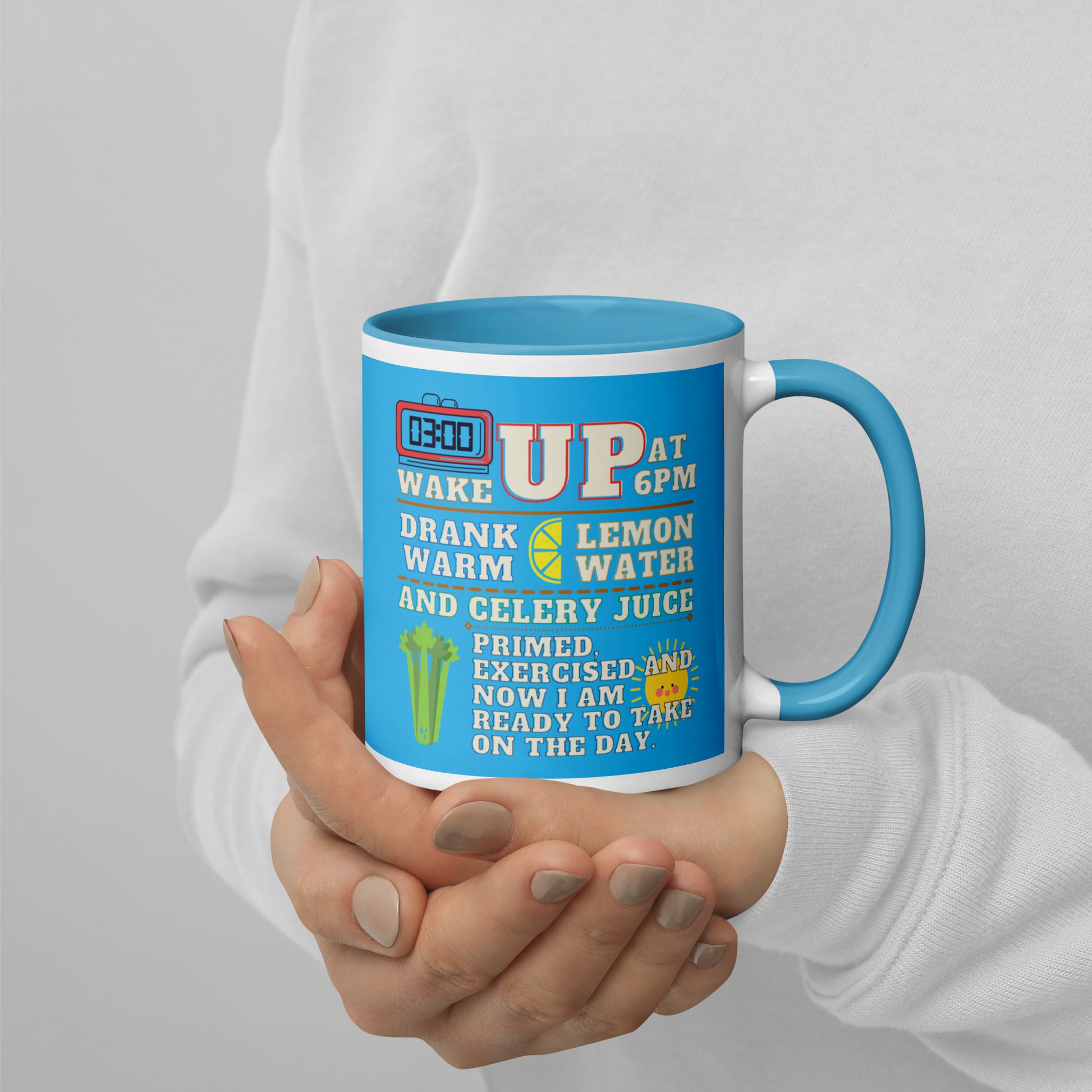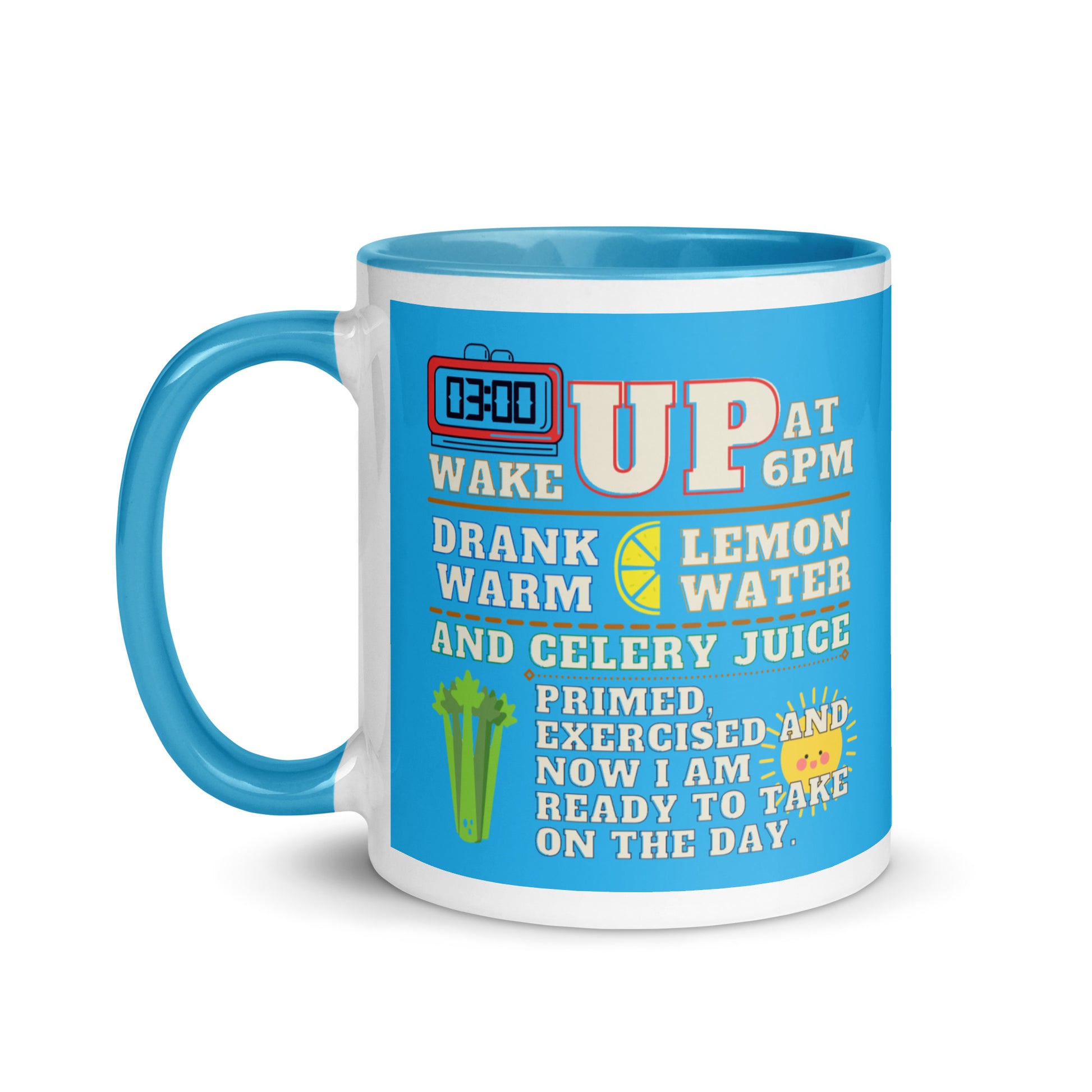 Taza de café azul con motivación matutina para el búho nocturno: listo para conquistar
