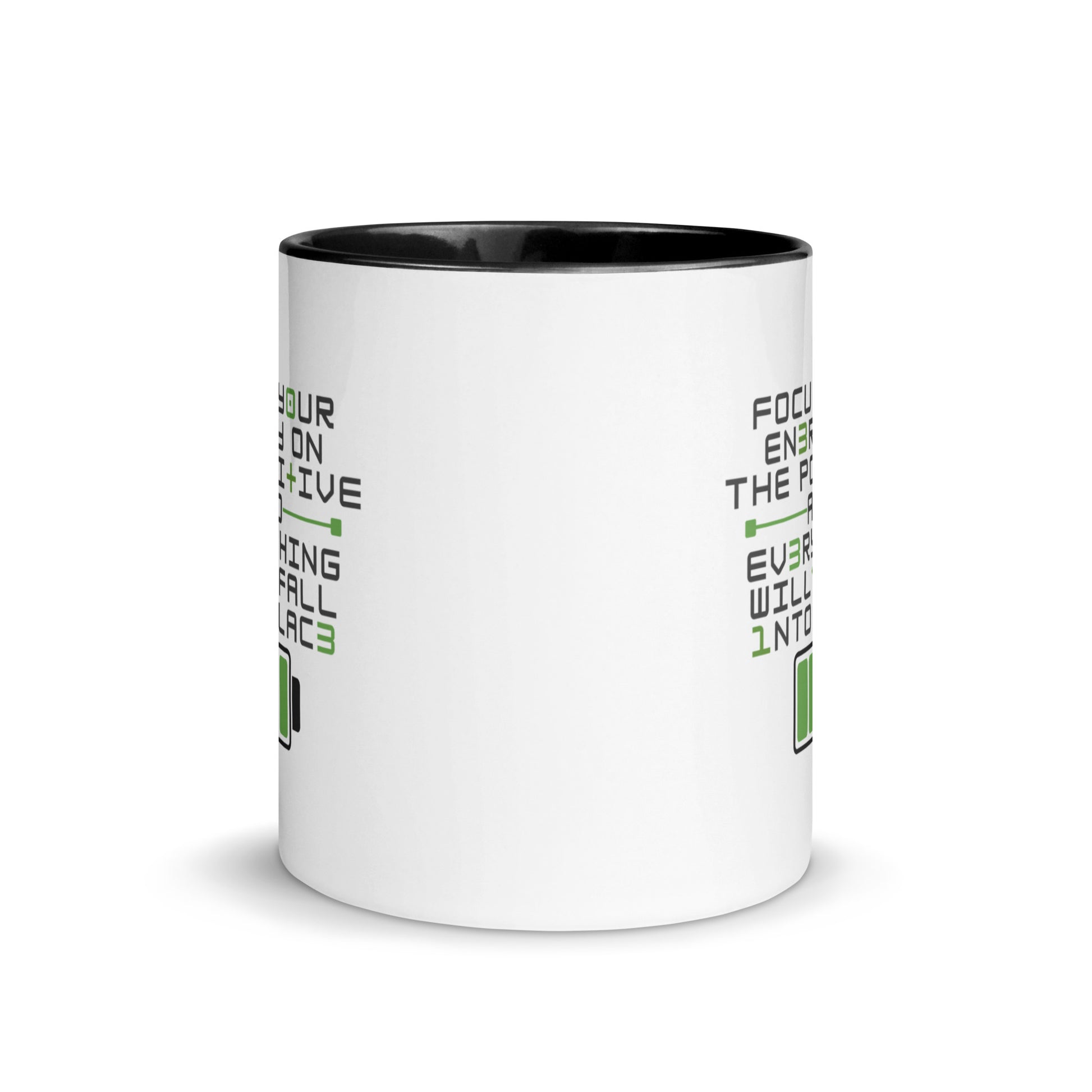 Mejora tus mañanas con la taza de café Optimistic Energy. Esta vibrante taza de cerámica tiene un mensaje simple pero poderoso: “Concéntrate en lo positivo”. Sus detalles coloridos agregan un toque alegre a tu rutina diaria.