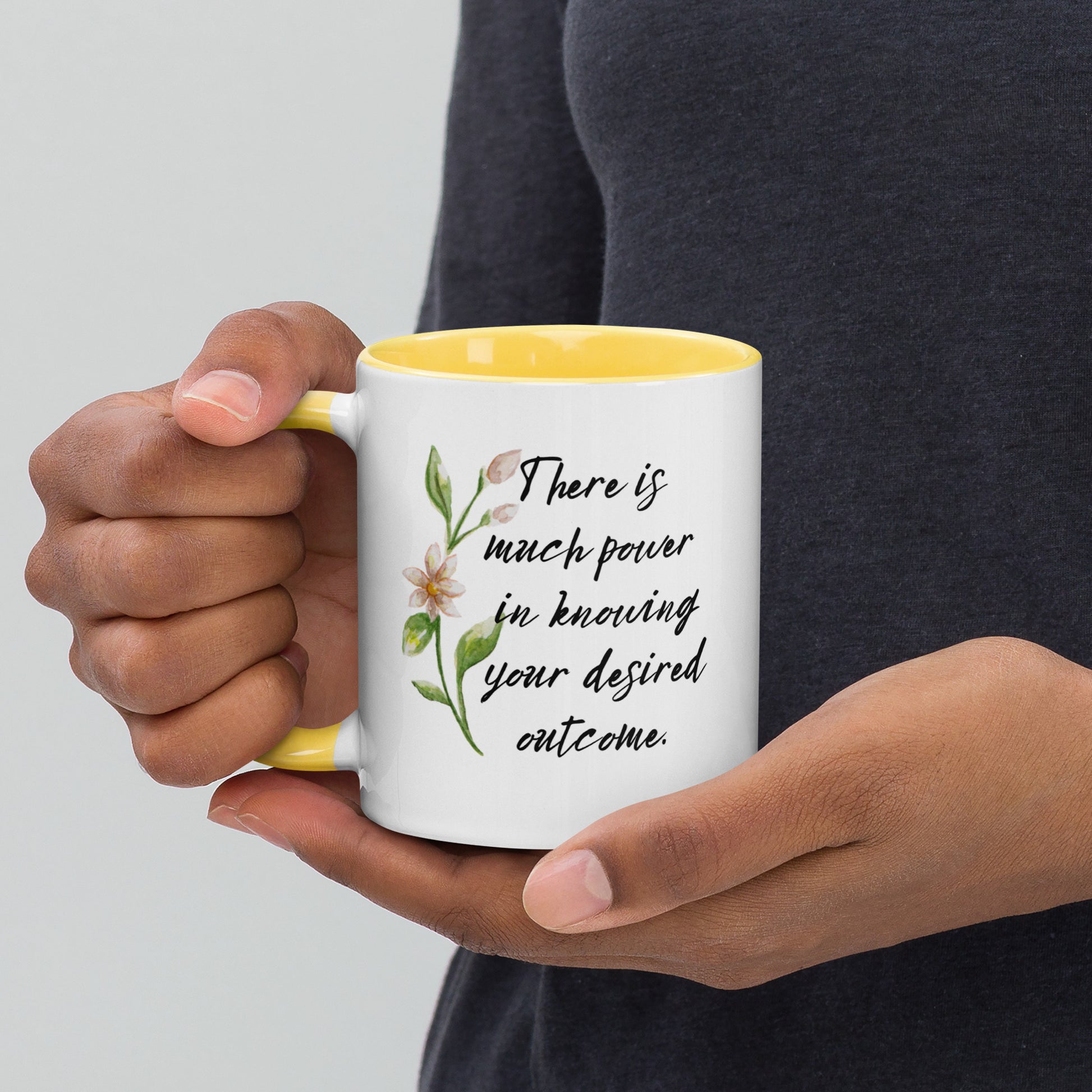Mejora tu rutina diaria de café o té con la taza de café Outcome Insight Brew. Mientras saboreas tu bebida favorita, deja que el mensaje motivador, “Hay mucho poder en saber cuál es el resultado que deseas”, te sirva como recordatorio diario para mantenerte concentrado en tus metas y sueños. Esta taza de cerámica no solo cuenta con un diseño llamativo, sino que también presenta detalles vibrantes en el borde, el asa y el interior, lo que la convierte en una elegante incorporación a tu colección de tazas. Comienza cada día con una taza de inspiración y deja que la taza de café Outcome Insight Brew infunda propósito y positividad a tus mañanas.