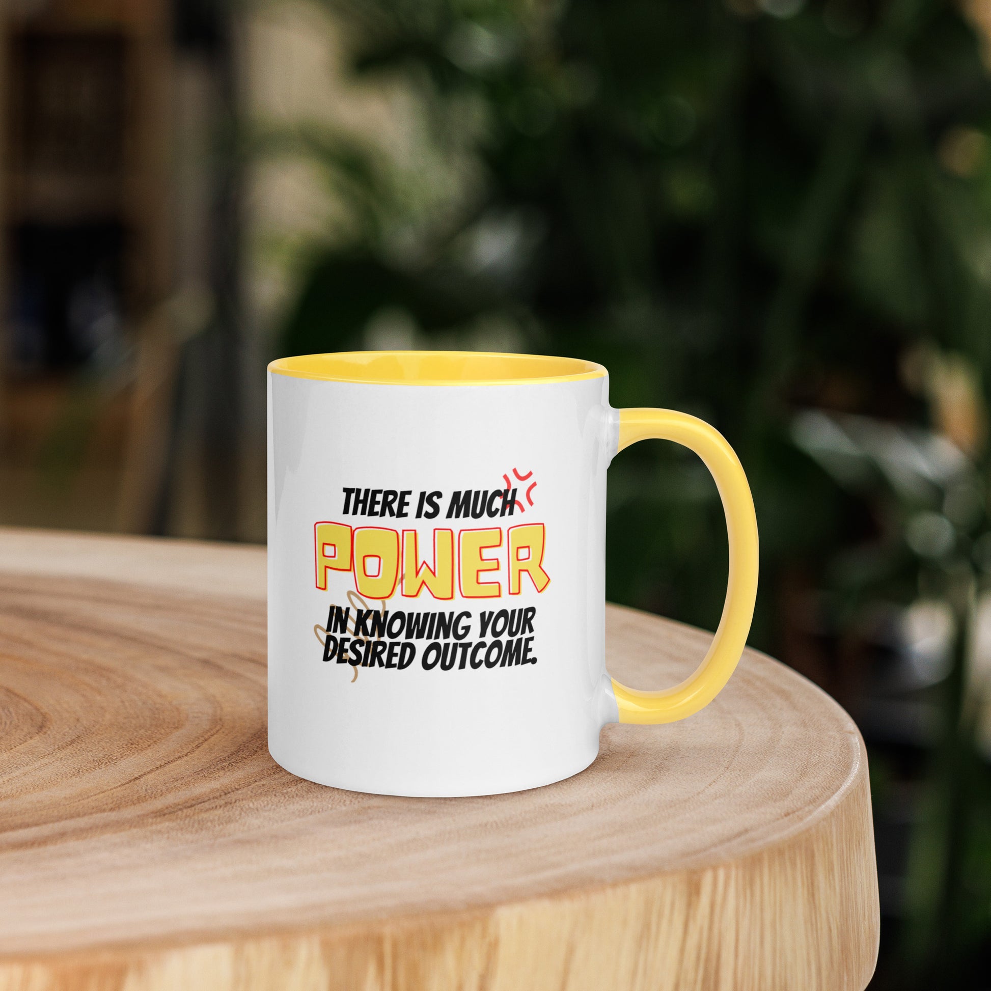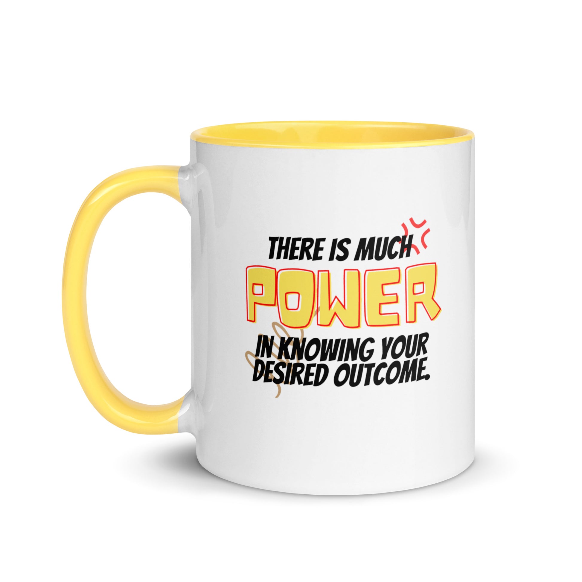 Presentamos nuestra taza de café “Outcome Visionary”, ¡un complemento motivador para tu rutina diaria! Esta taza de cerámica no solo cuenta con un diseño impresionante, sino también con un borde, un asa y un interior coloridos que le dan vitalidad a tu colección.