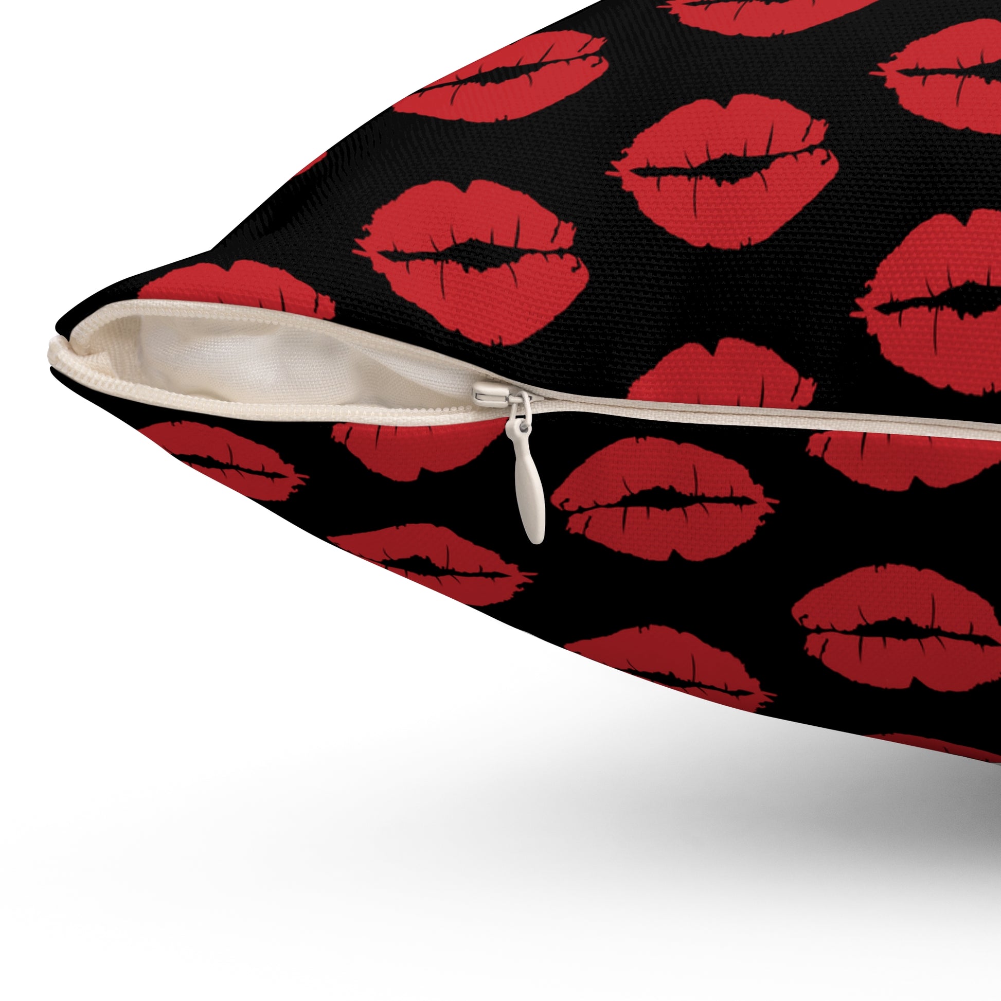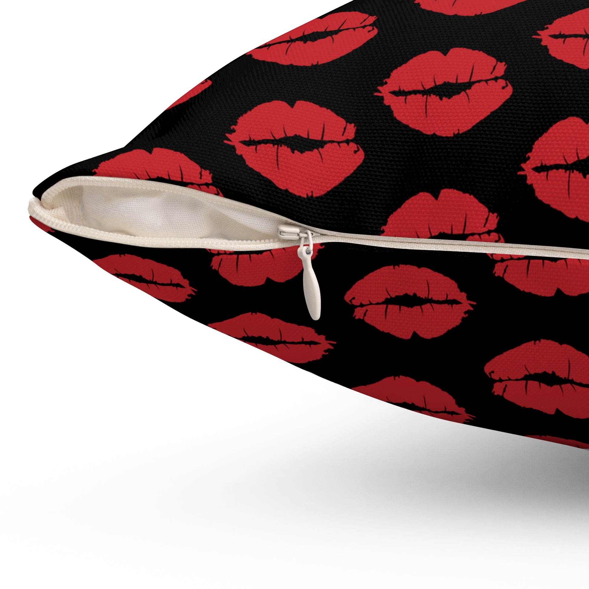 Presentamos nuestra almohada decorativa negra “Besos apasionados”, una combinación de elegancia y emoción. Estas almohadas de interior, en varios tamaños, ofrecen comodidad y se convierten en la pieza central de su habitación. Con marcas de besos rojos sobre fondo negro, agregan romance y encanto.