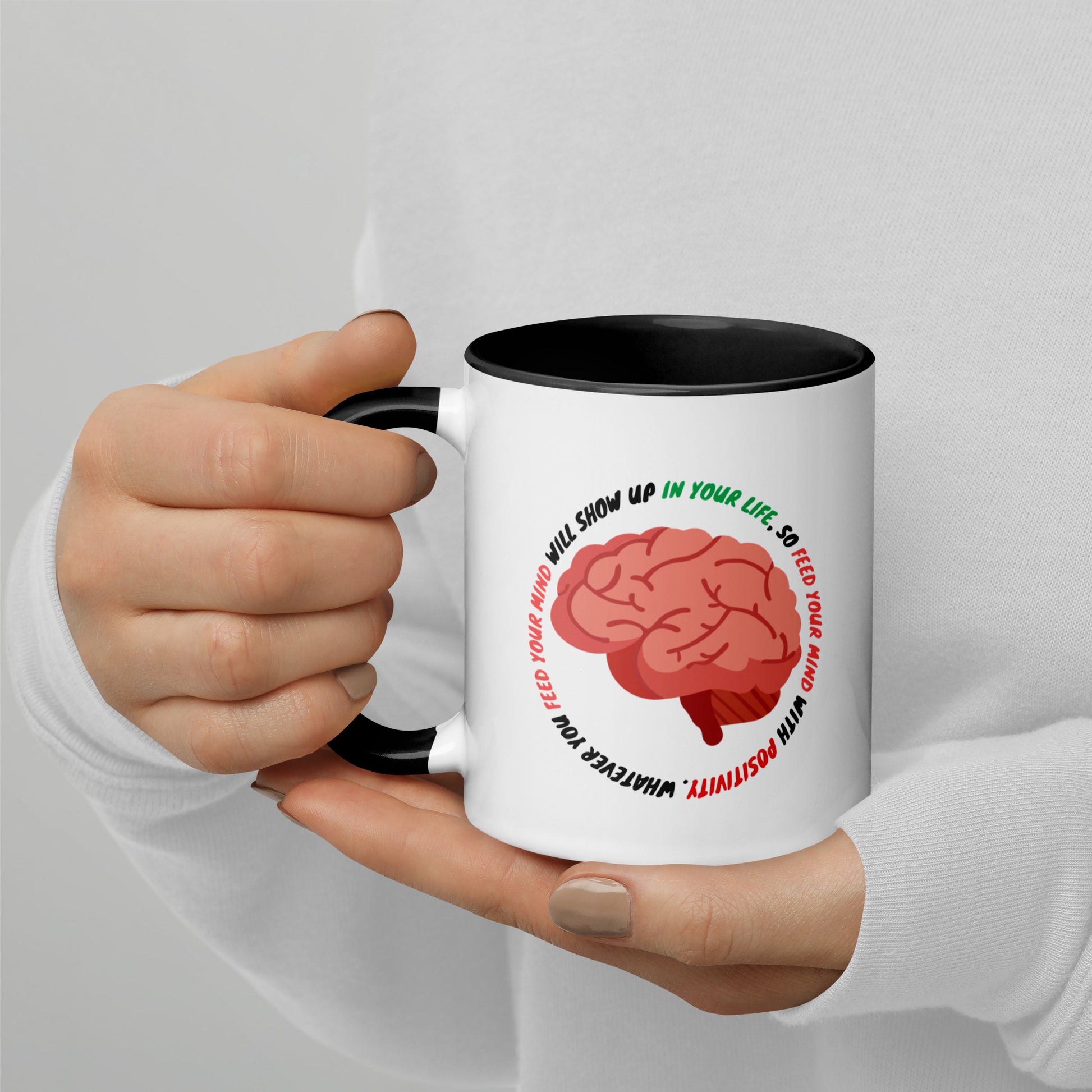 Mejora tu día con nuestra taza de café “Positivity Mindset”. Además de ser tu bebida diaria, es un recordatorio visual del poder de la positividad. Con un mensaje inspirador y una imagen del centro del cerebro, fomenta una mentalidad positiva.
