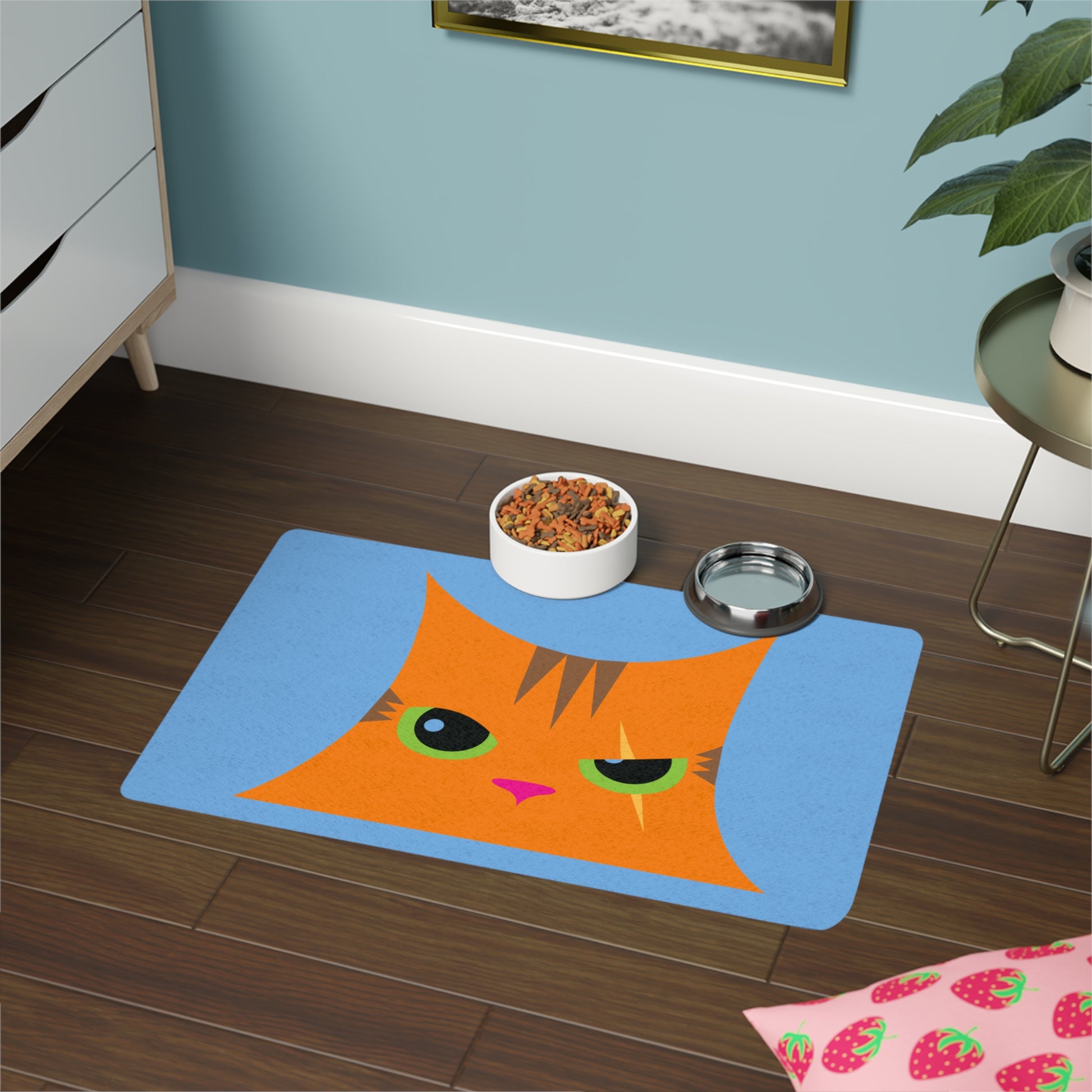 Con su adorable cara de gato grande de color naranja sobre un fondo azul vibrante, nuestra alfombrilla para comida para mascotas agrega encanto al área de alimentación de su mascota. Mantenga la hora de la comida agradable y la limpieza sin problemas con esta alfombrilla única.